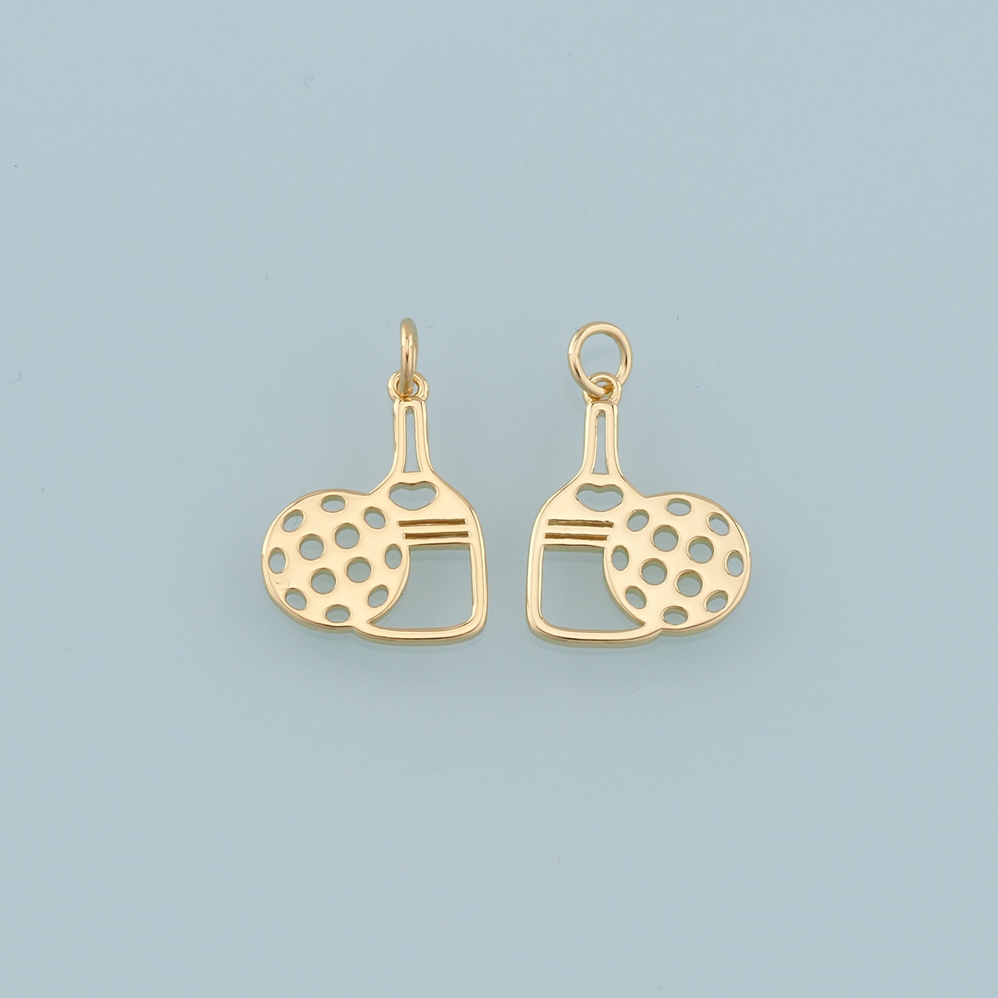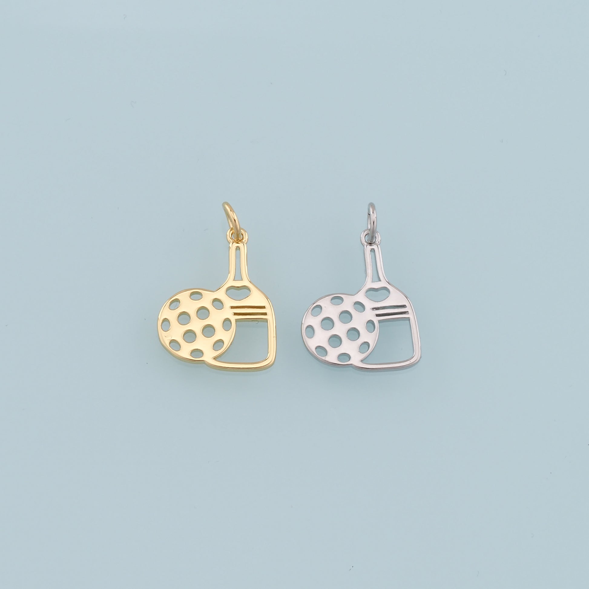 Gold Pickle Ball Charms,18K Gold Filled pickle ball Pendant,Sports Racket Charm Bracelet Necklace for DIY Jewelry Making Supply