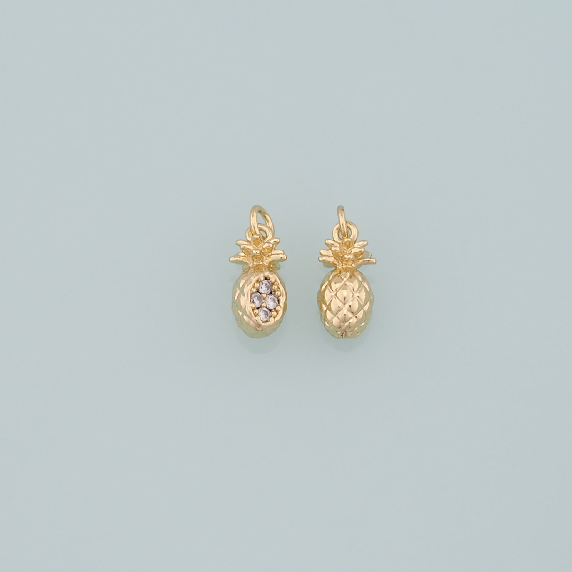 Gold Pineapple Charms,18K Gold Filled Pineapple Pendant,CZ Micro Pave Fruit Charm Bracelet Necklace for DIY Jewelry Making Supply