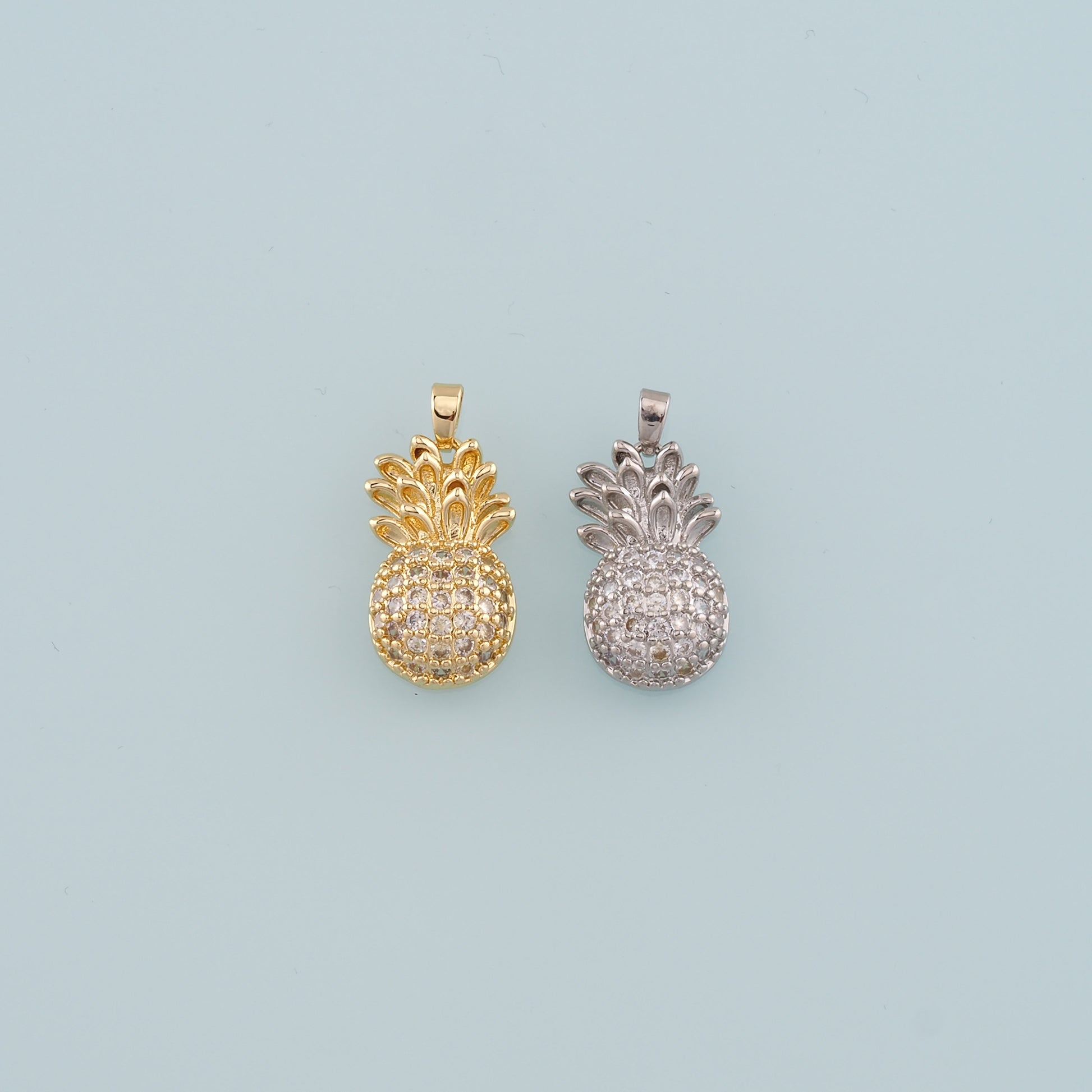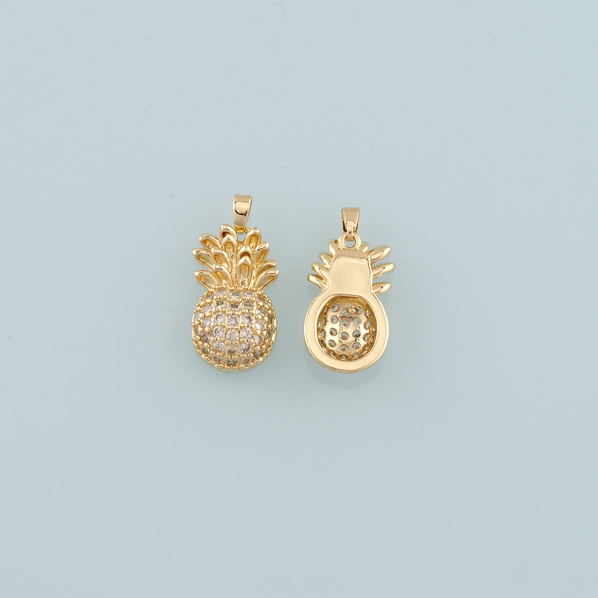 Gold Pineapple Charms,18K Gold Filled Pineapple Pendant,CZ Micro PaveFruit Charm Bracelet Necklace for DIY Jewelry Making Supply