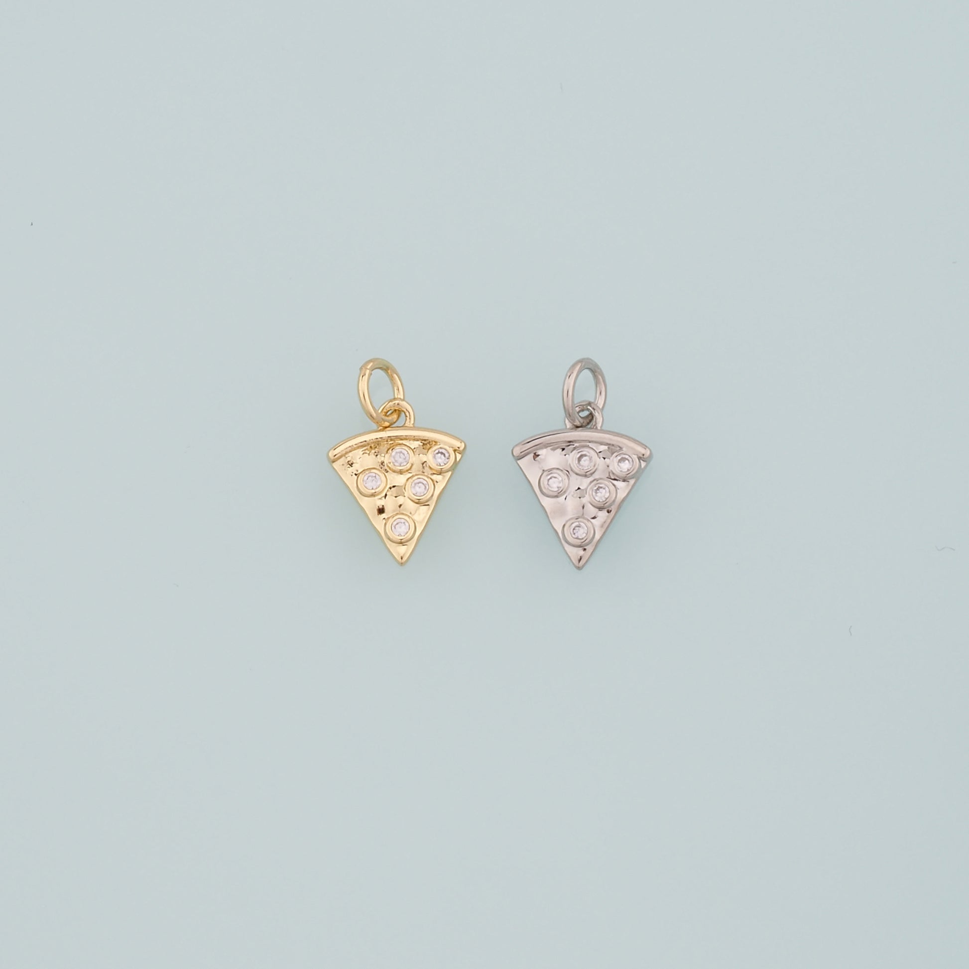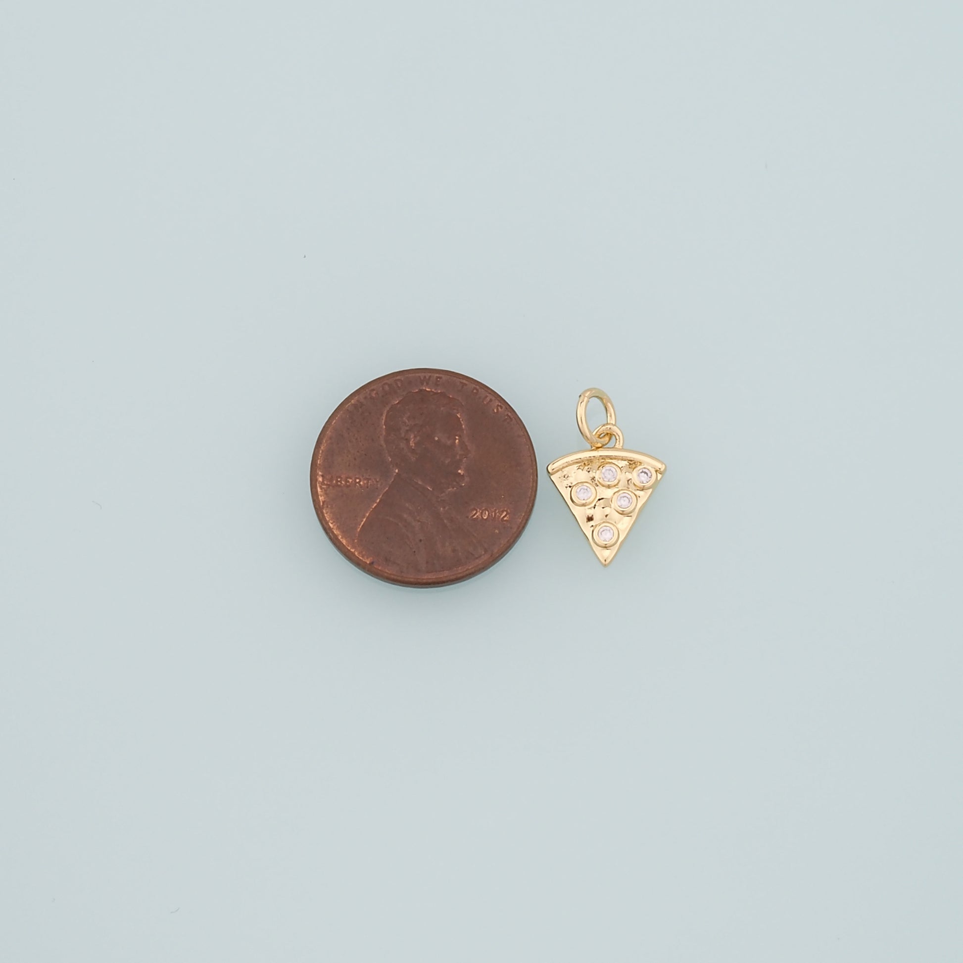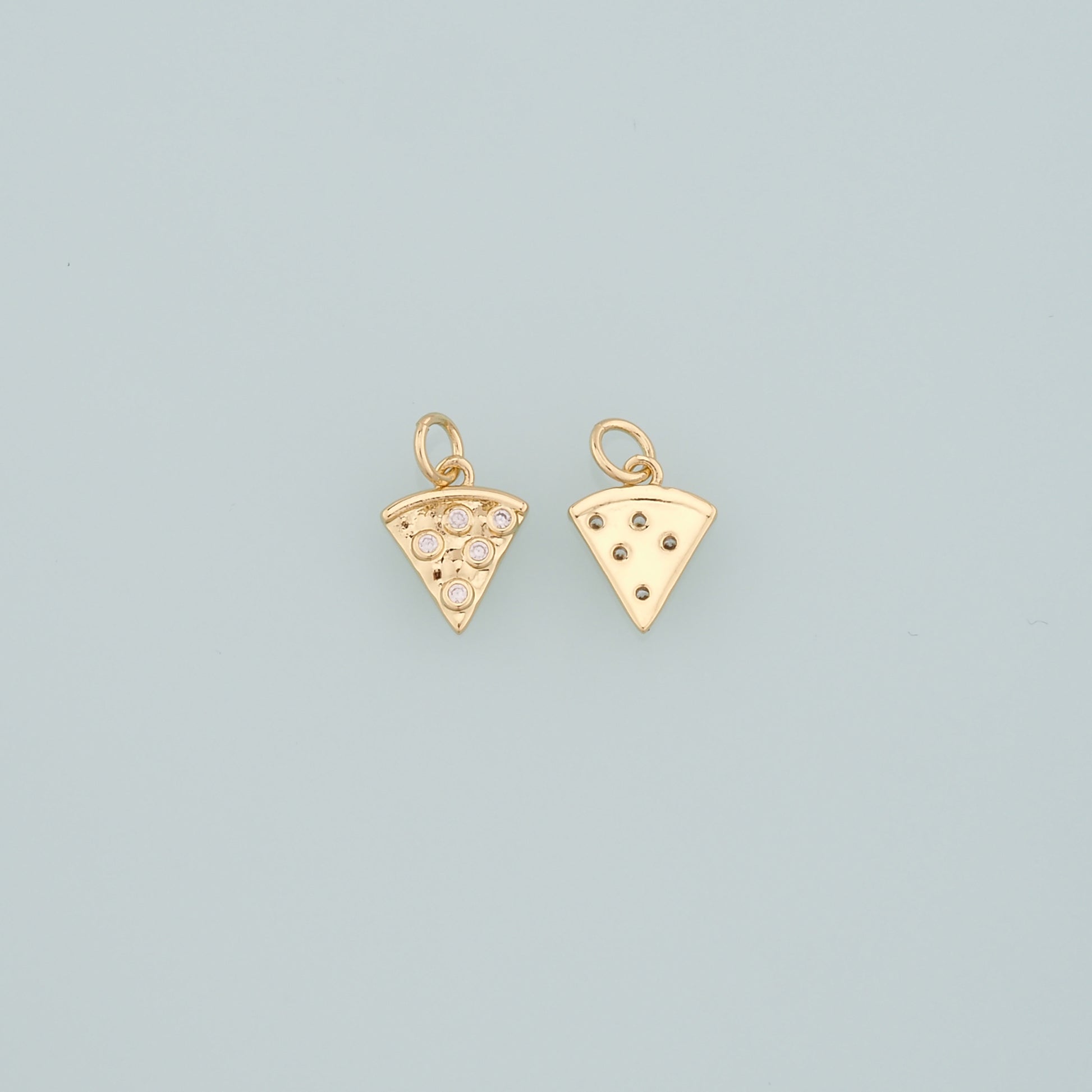 Gold Pizza Charms,18K Gold Filled Pizza Pendant,CZ Micro Pave Gourmet Food Charm Bracelet Necklace for DIY Jewelry Making Supply