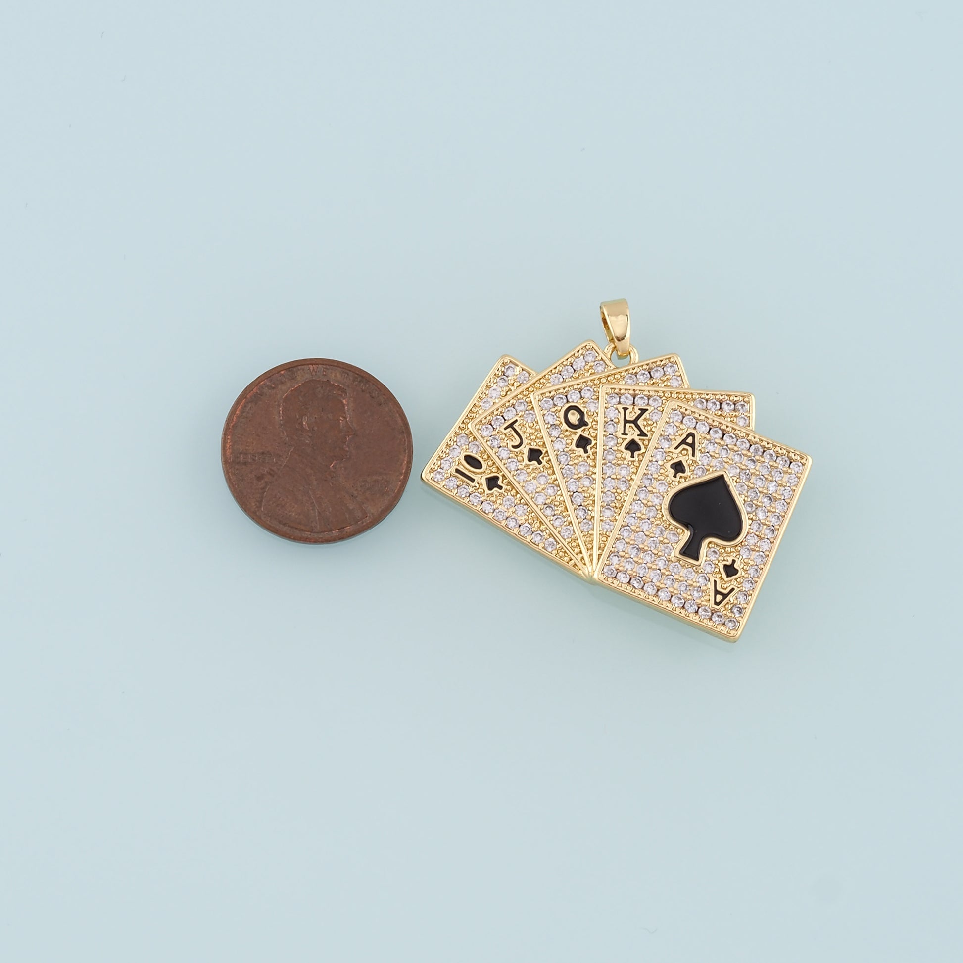 Gold Poker Charms,18K Gold Filled Poker Pendant,CZ Micro Pave Playing Card Charm Bracelet Necklace for DIY Jewelry Making Supply