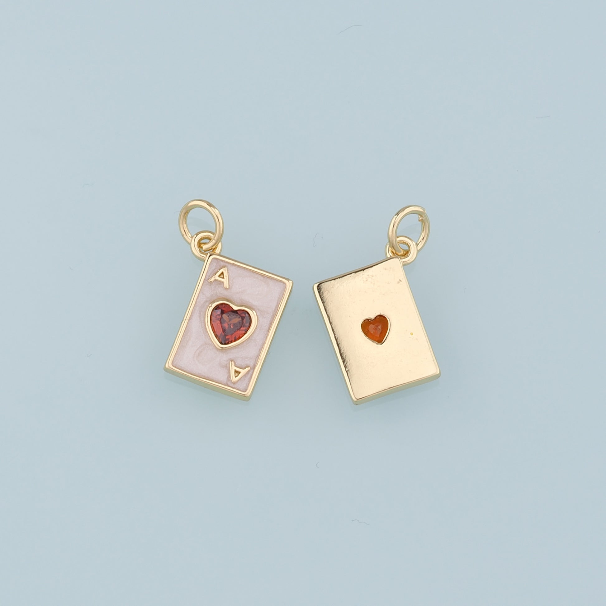 Gold Poker Charms,18K Gold Filled Poker Pendant,Enamel Playing Card Charm Bracelet Necklace for DIY Jewelry Making Supply