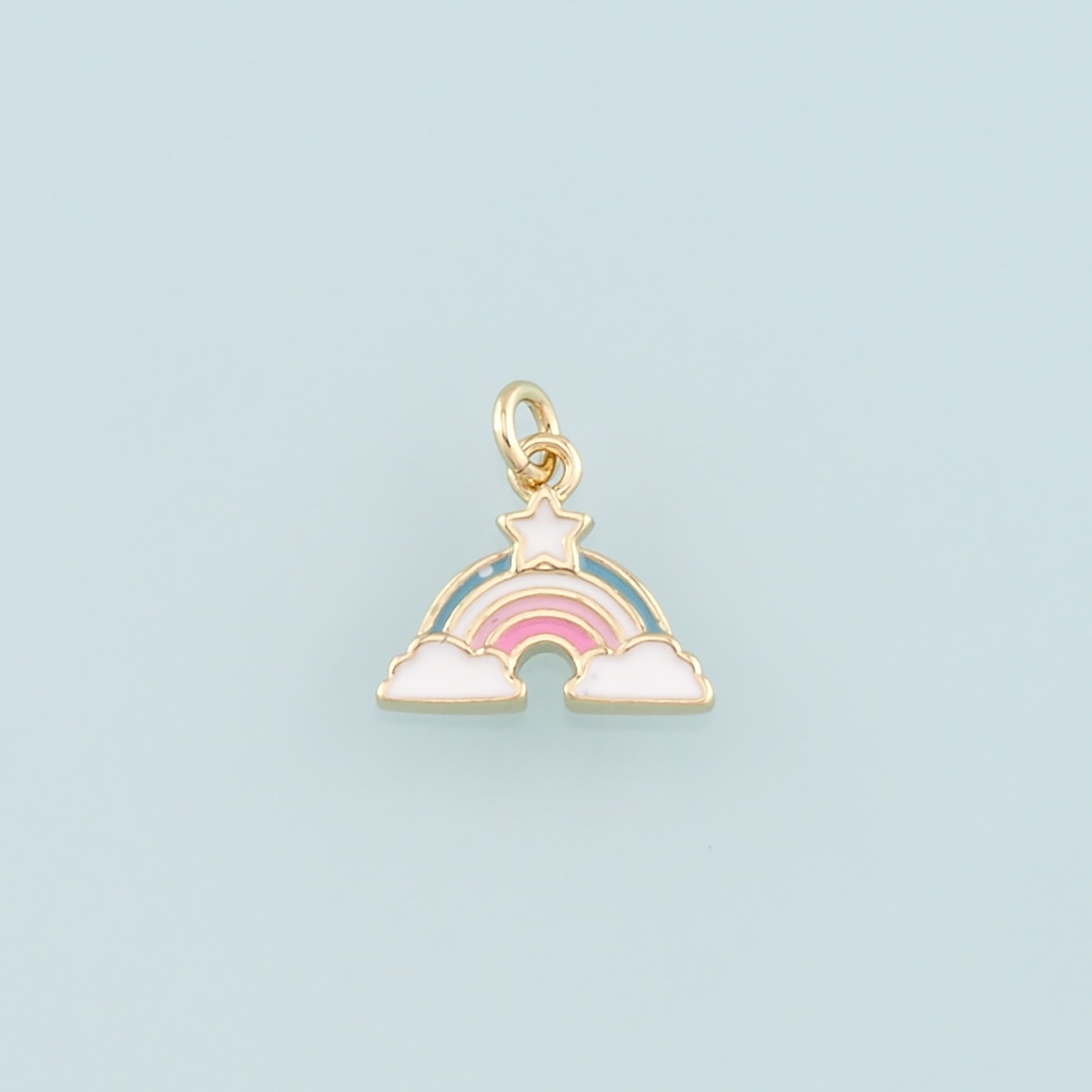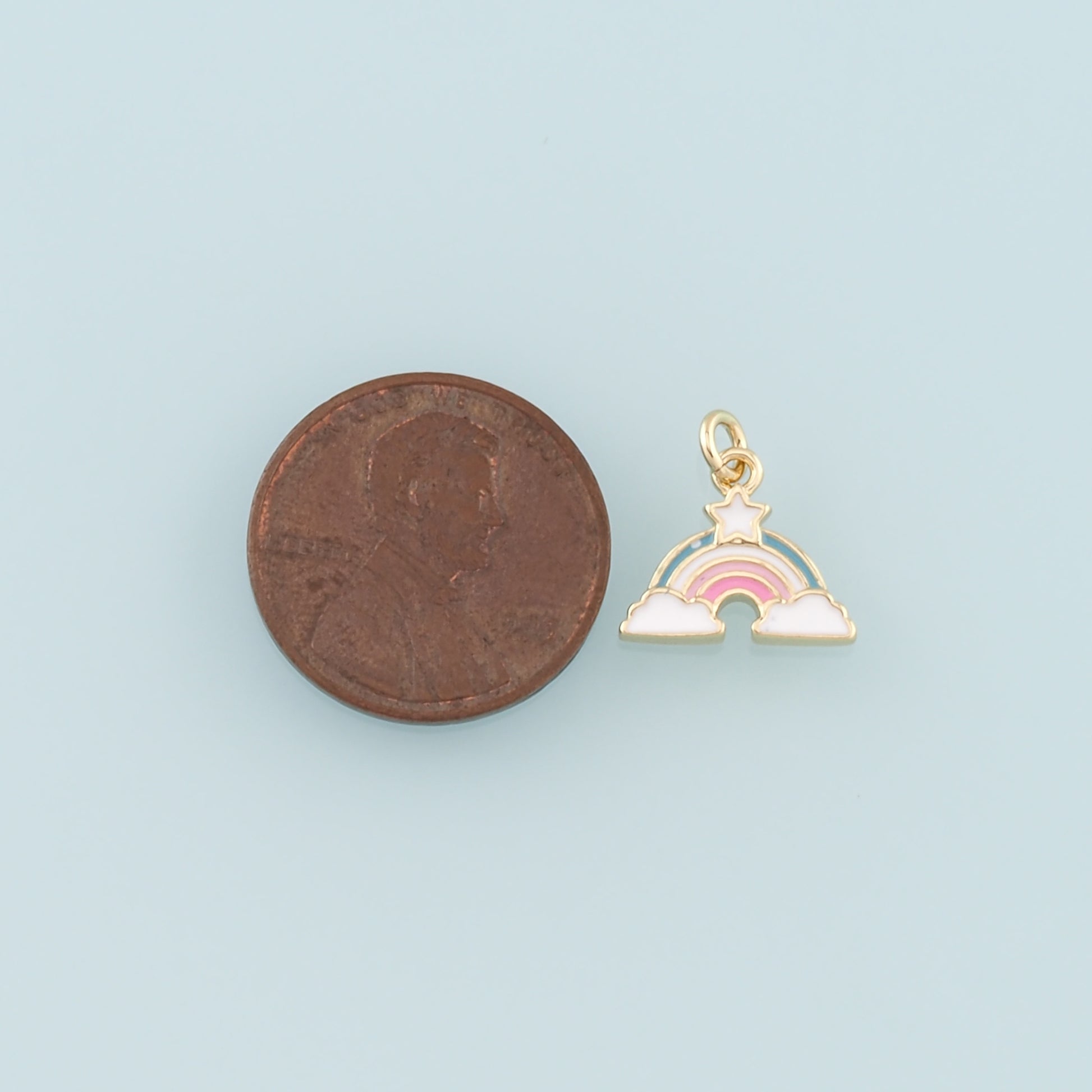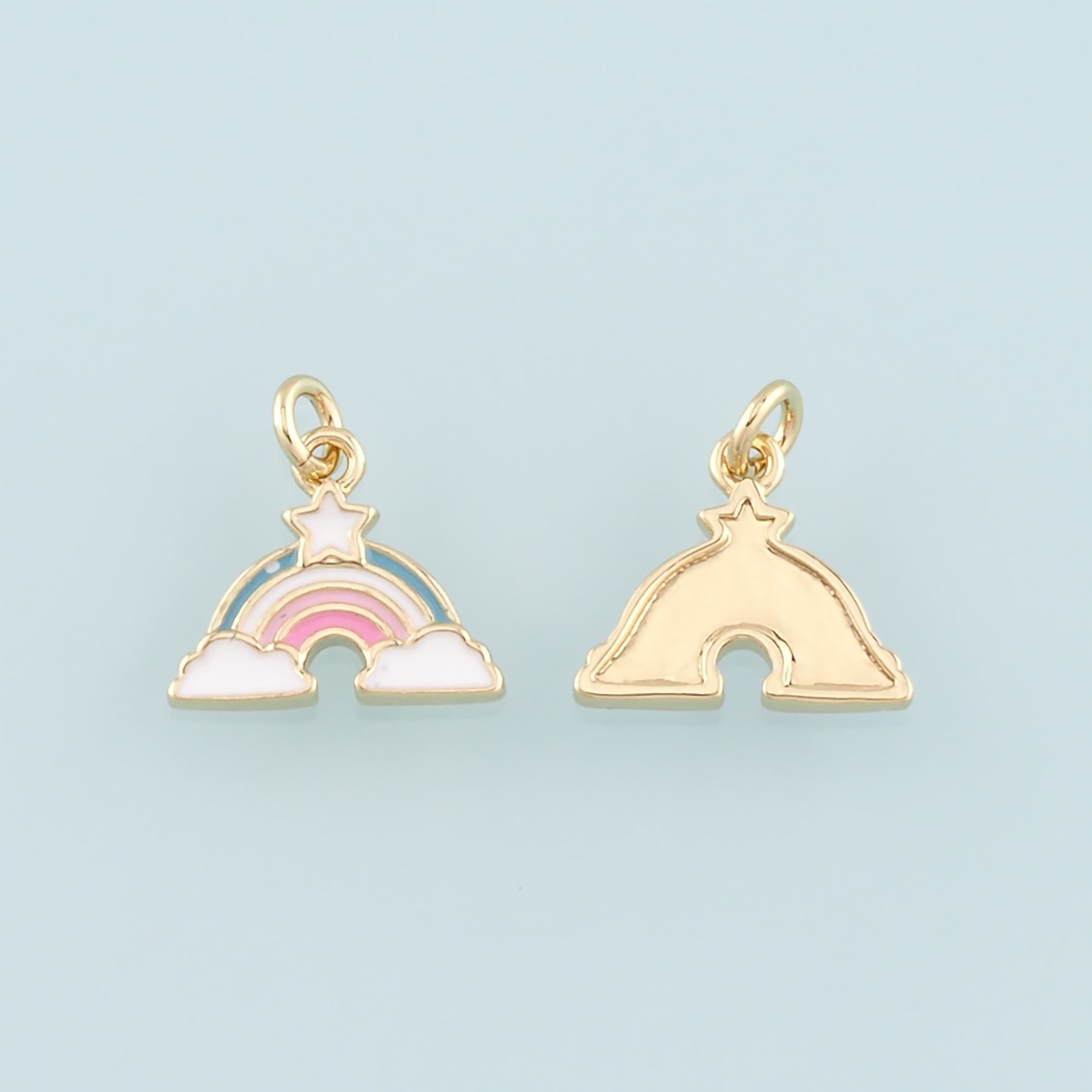 Gold Rainbow Charms,18K Gold Filled Rainbow Star Pendant,Enamel Rainbow Charm Bracelet Necklace for DIY Jewelry Making Supply