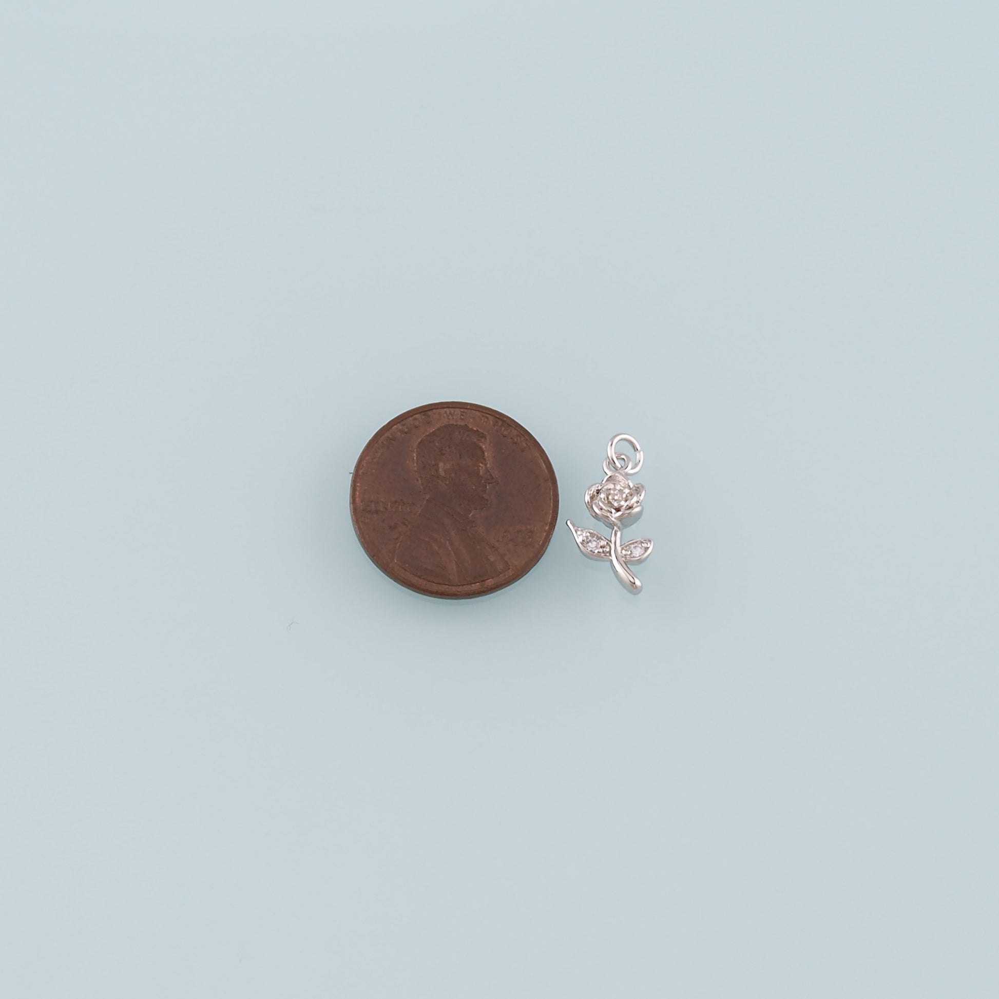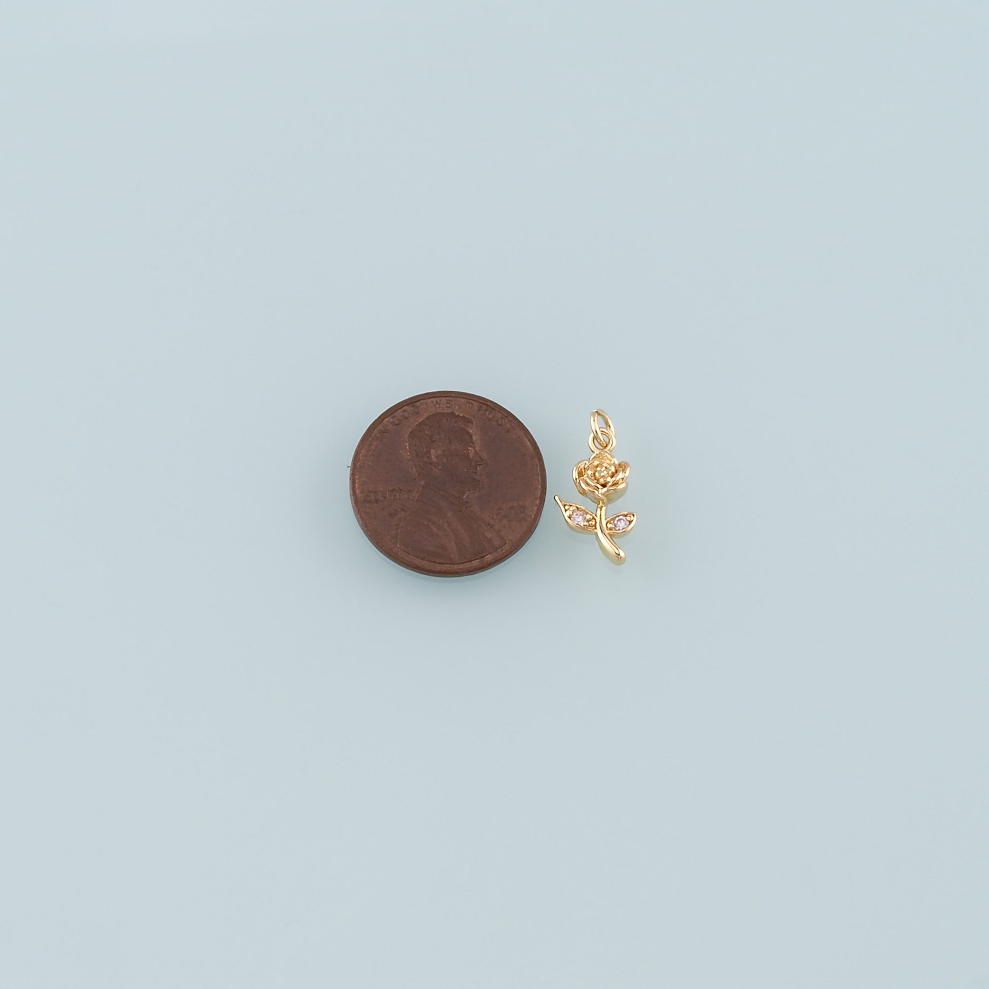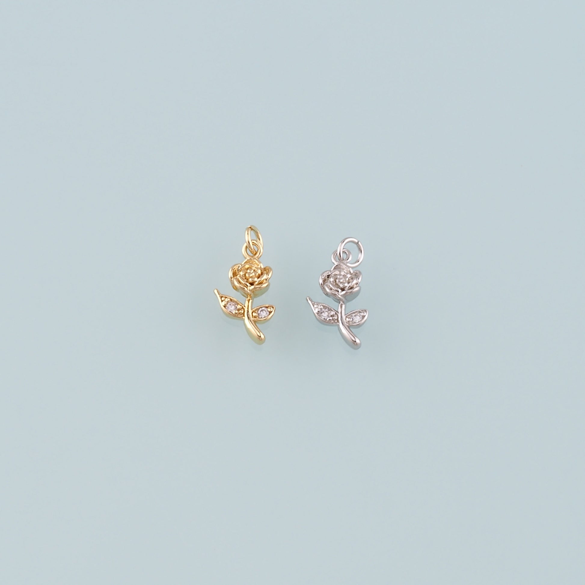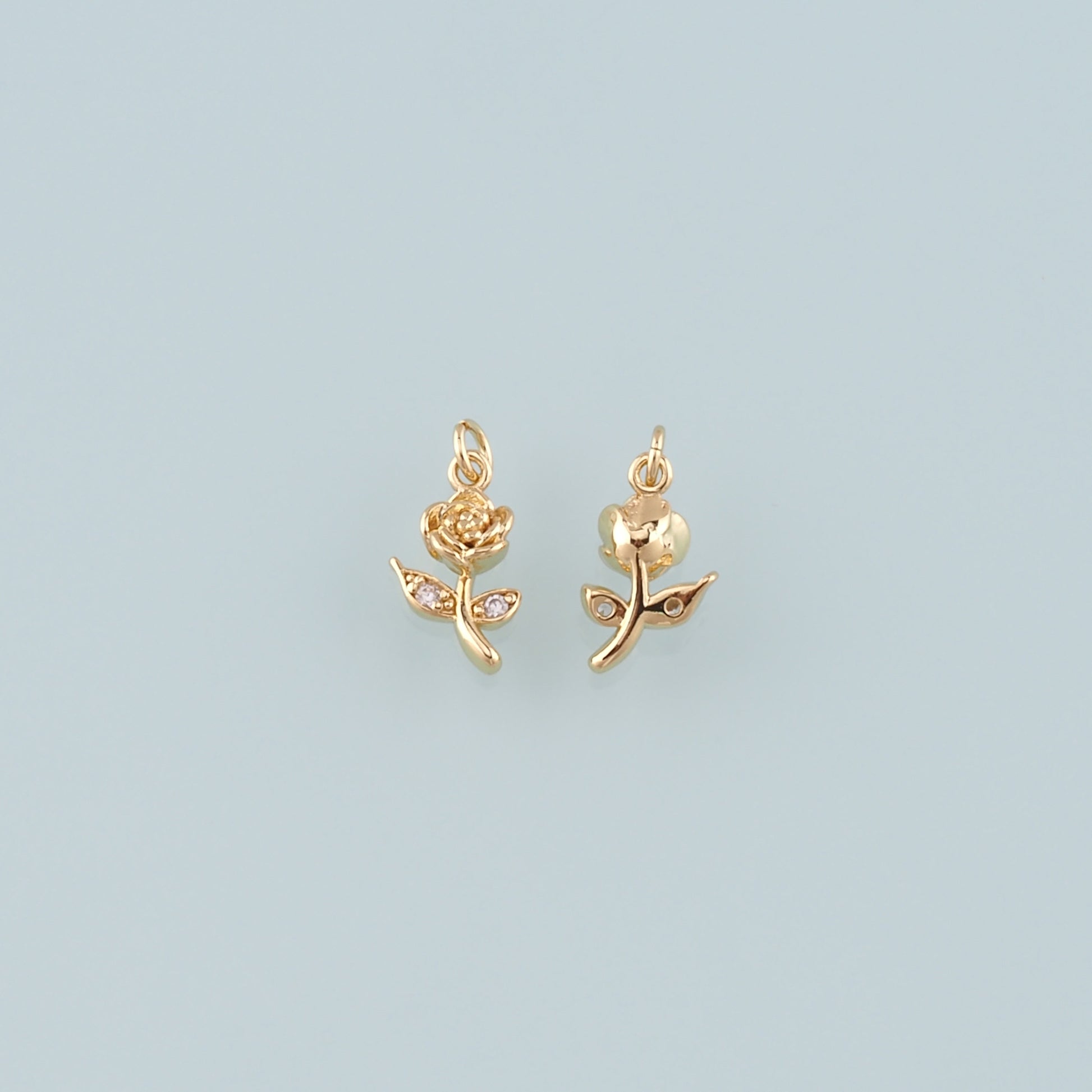 Gold Rose Charm,18K Gold Filled Rose Pendant,CZ Micro Pave Flower Charm Bracelet Necklace for DIY Jewelry Making Supply