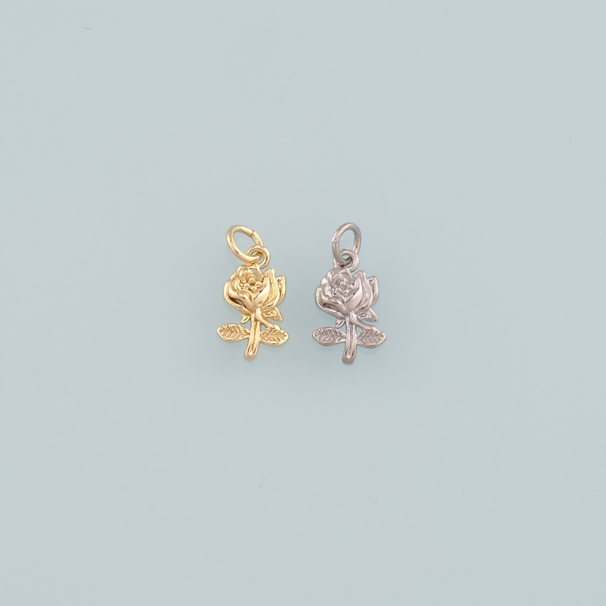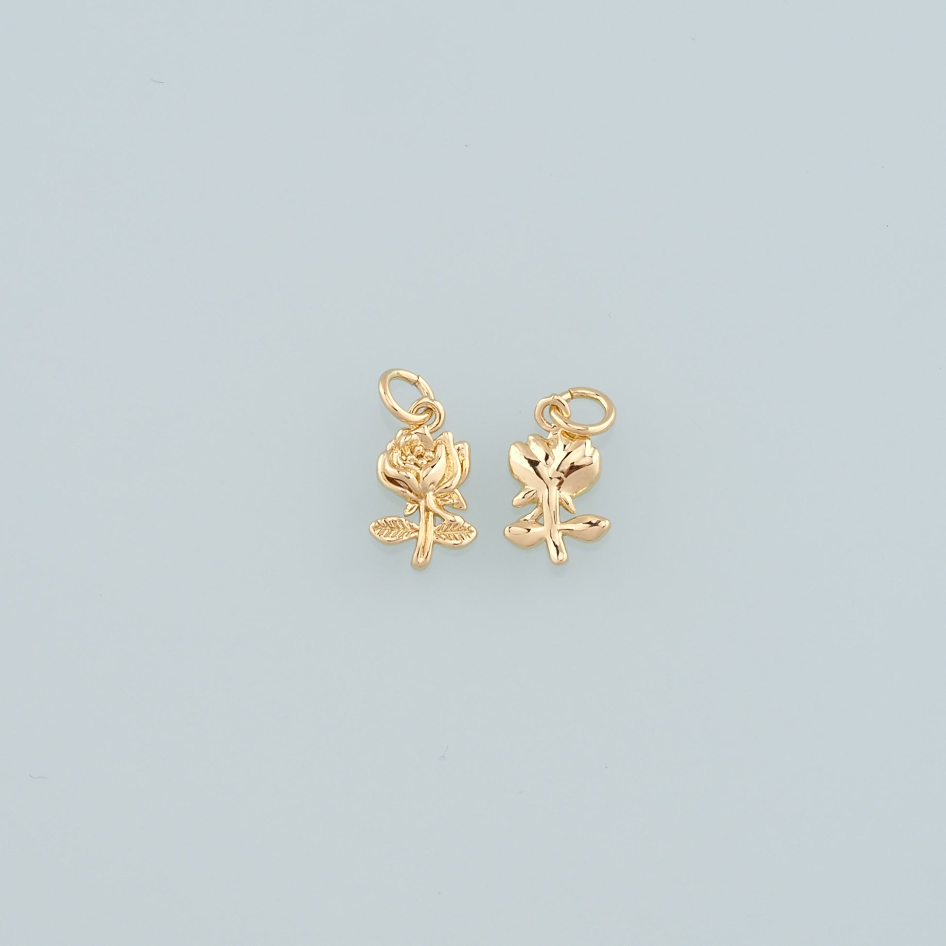 Gold Rose Charm,18K Gold Filled Rose Pendant,Flower Charm Bracelet Necklace for DIY Jewelry Making Supply