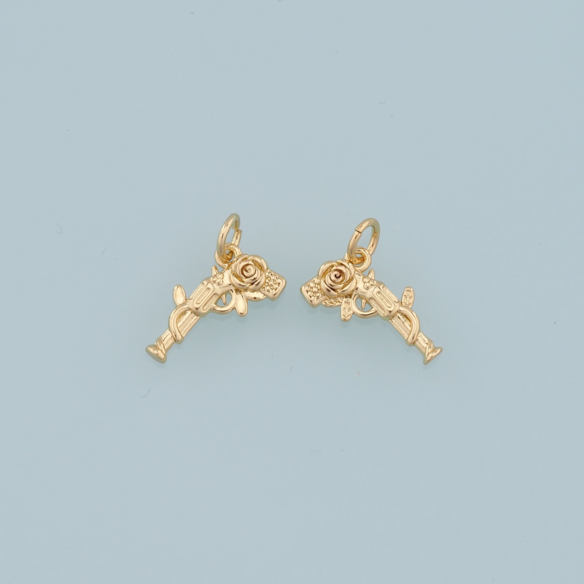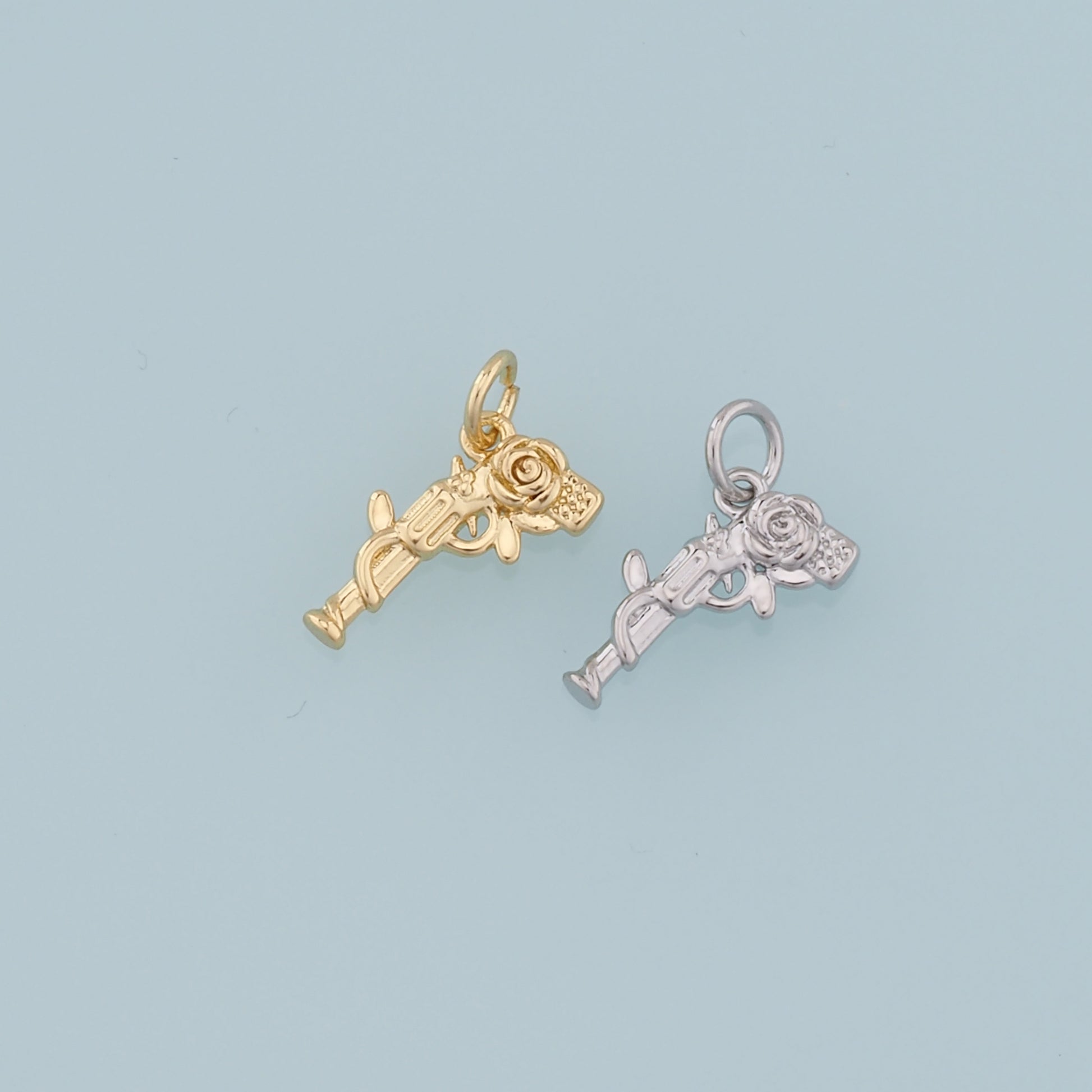 Gold Rose Gun Charms,18K Gold Filled Gun Pendant,Gun Charm Bracelet Necklace for DIY Jewelry Making Supply