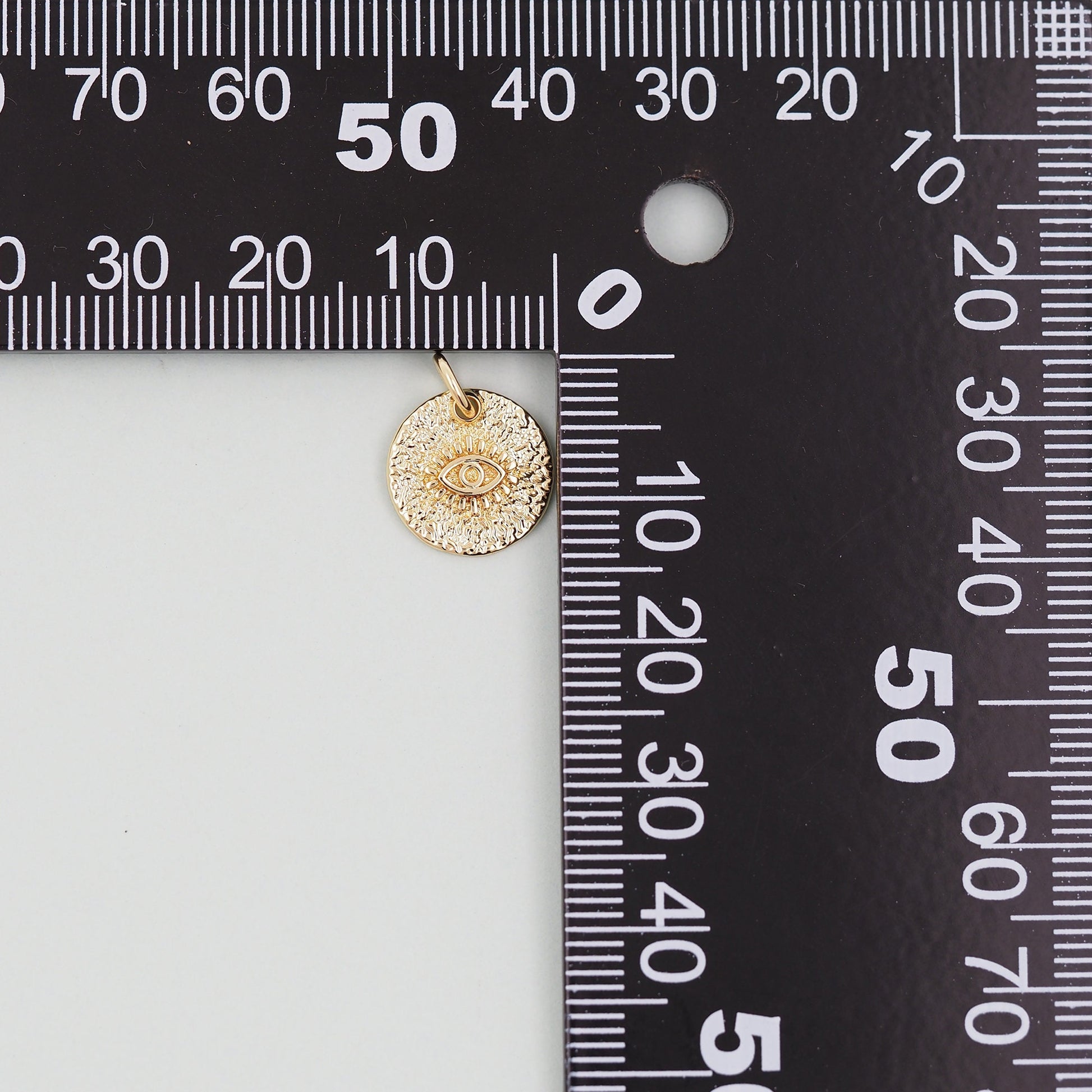 Gold Round Charms,18K Gold Filled Round Pendant,Silver Evil Eye Charm Bracelet Necklace for DIY Jewelry Making Supply
