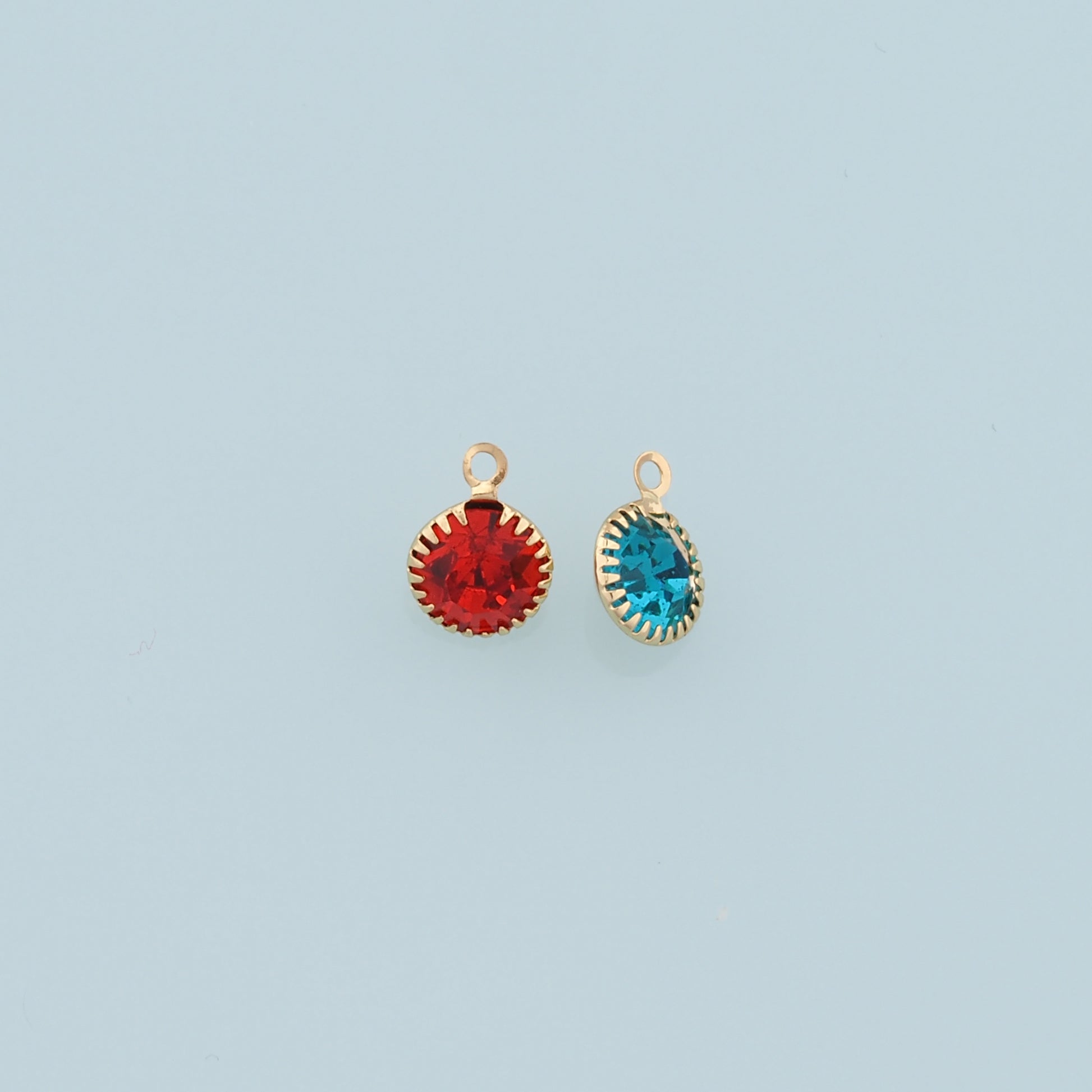 Gold Round Crystal Charm,18K Gold Filled Crystal Pendant Bracelet Necklace for DIY Jewelry Making Supply