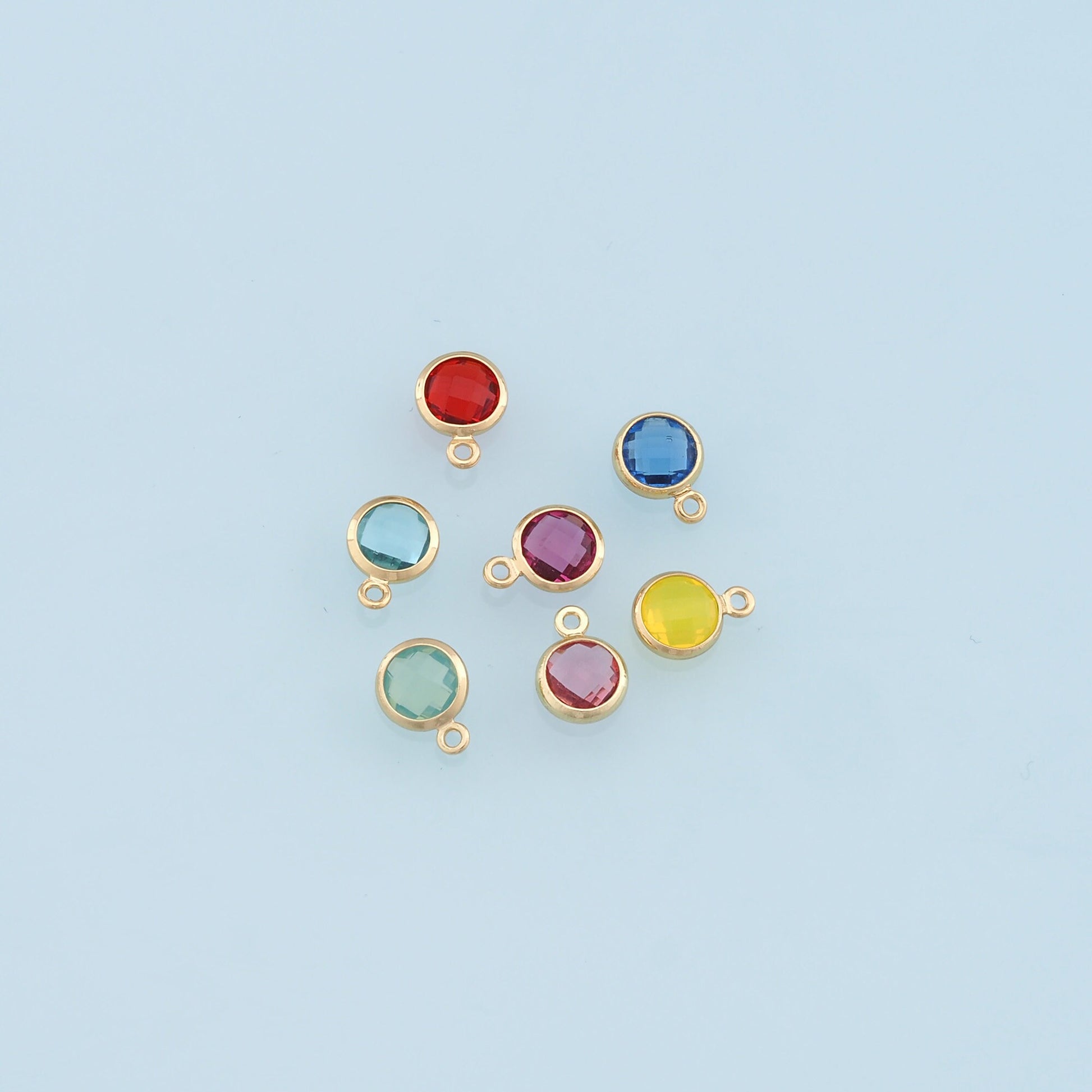 Gold Round Crystal Charm,18K Gold Filled Crystal Pendant Bracelet Necklace for DIY Jewelry Making Supply 6mm