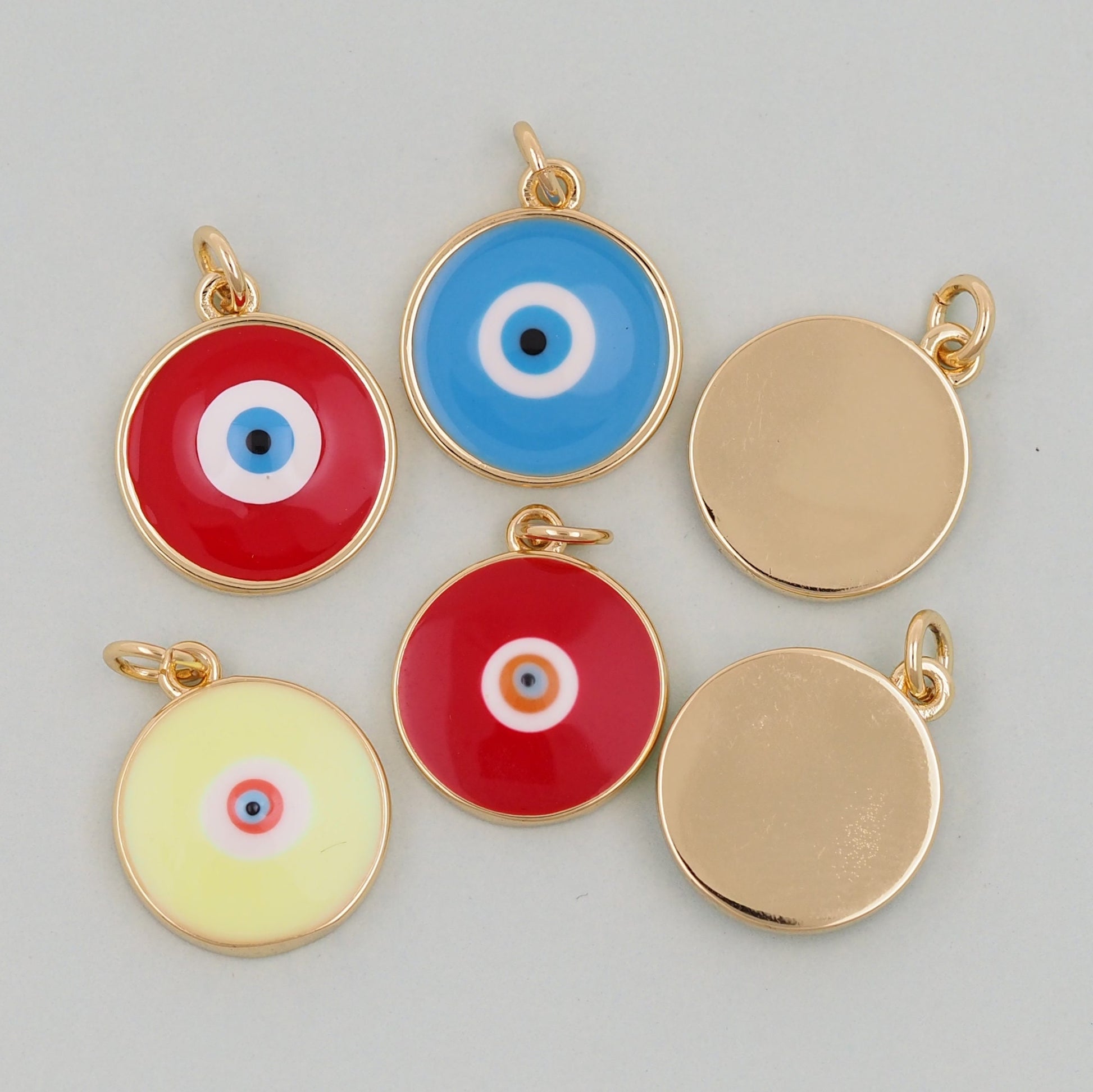 Gold Round Evil Eye Charms,18K Gold Filled Evil Eye Pendant,Enamel Evil Eye Charm Bracelet Necklace for DIY Jewelry Making Supply