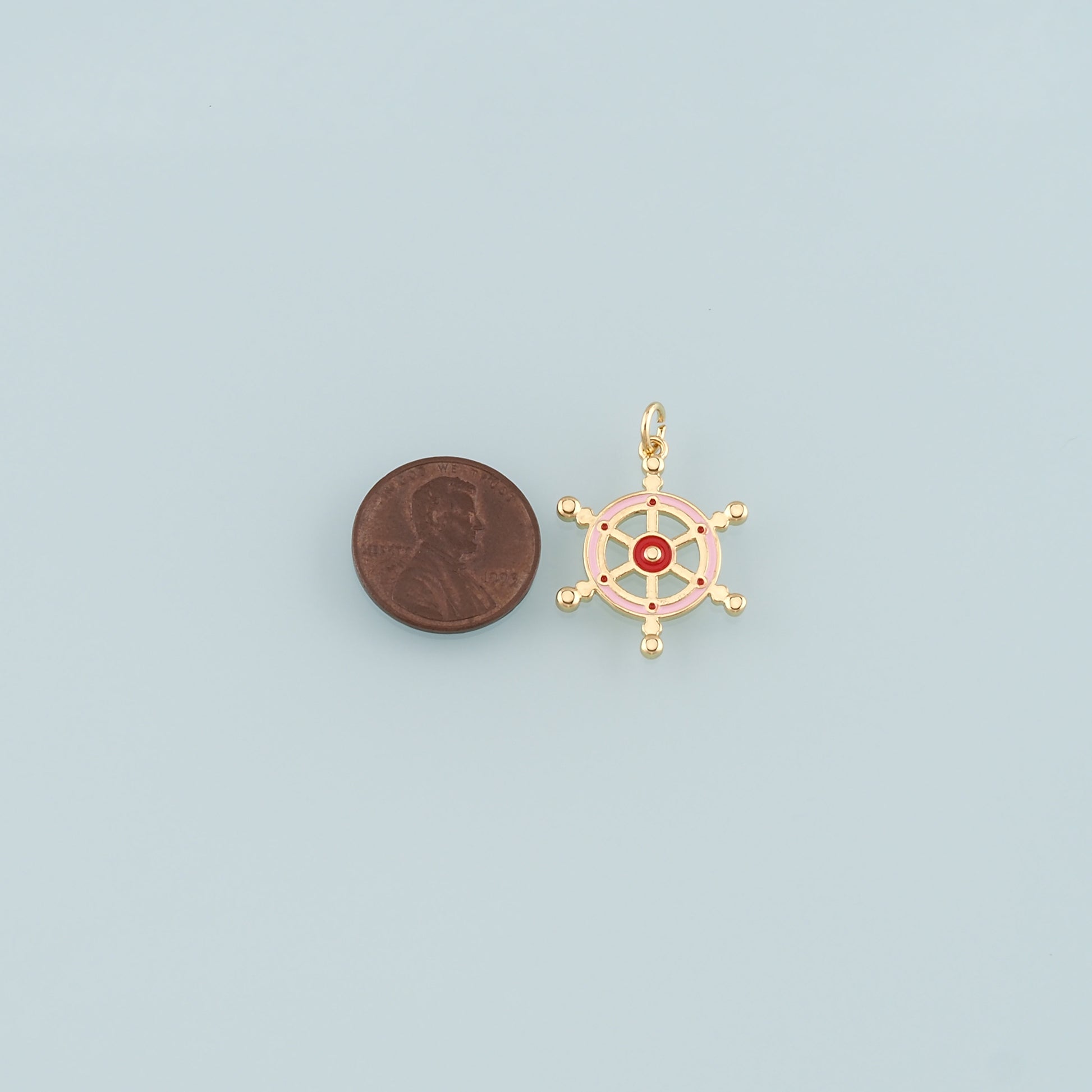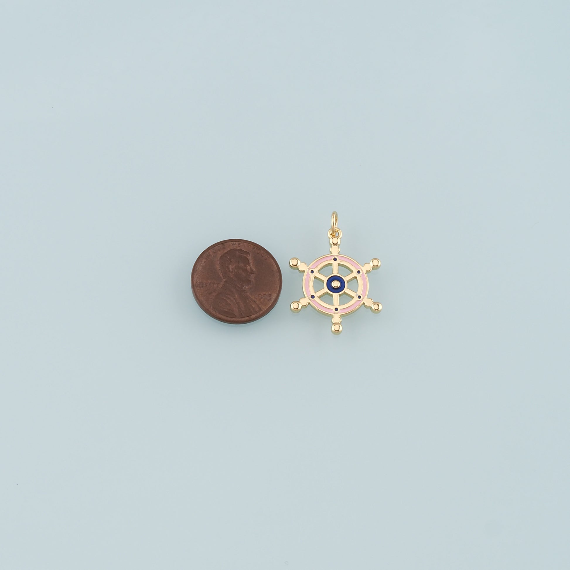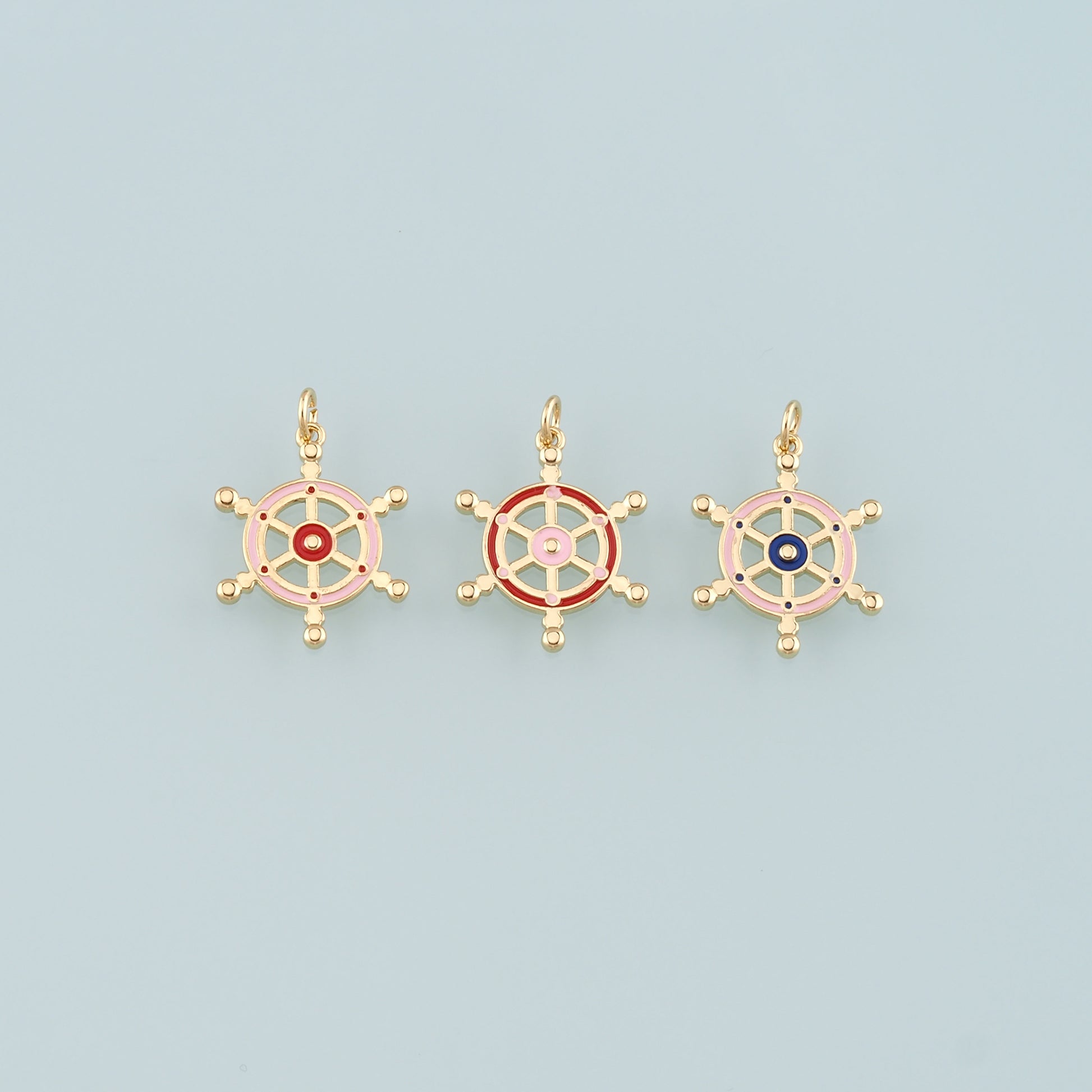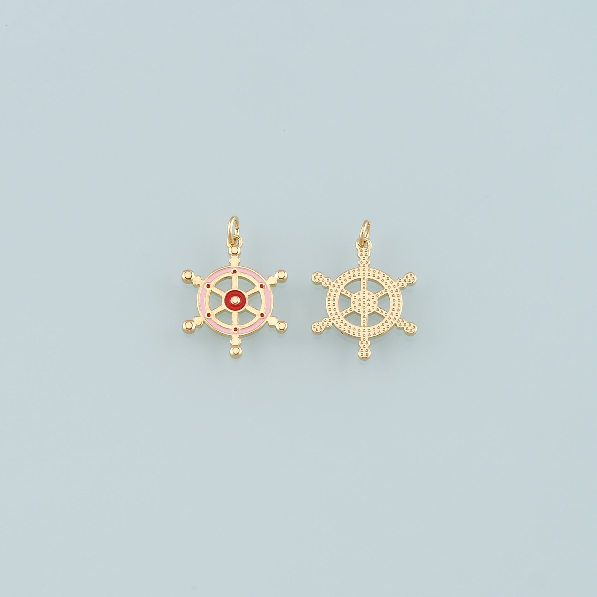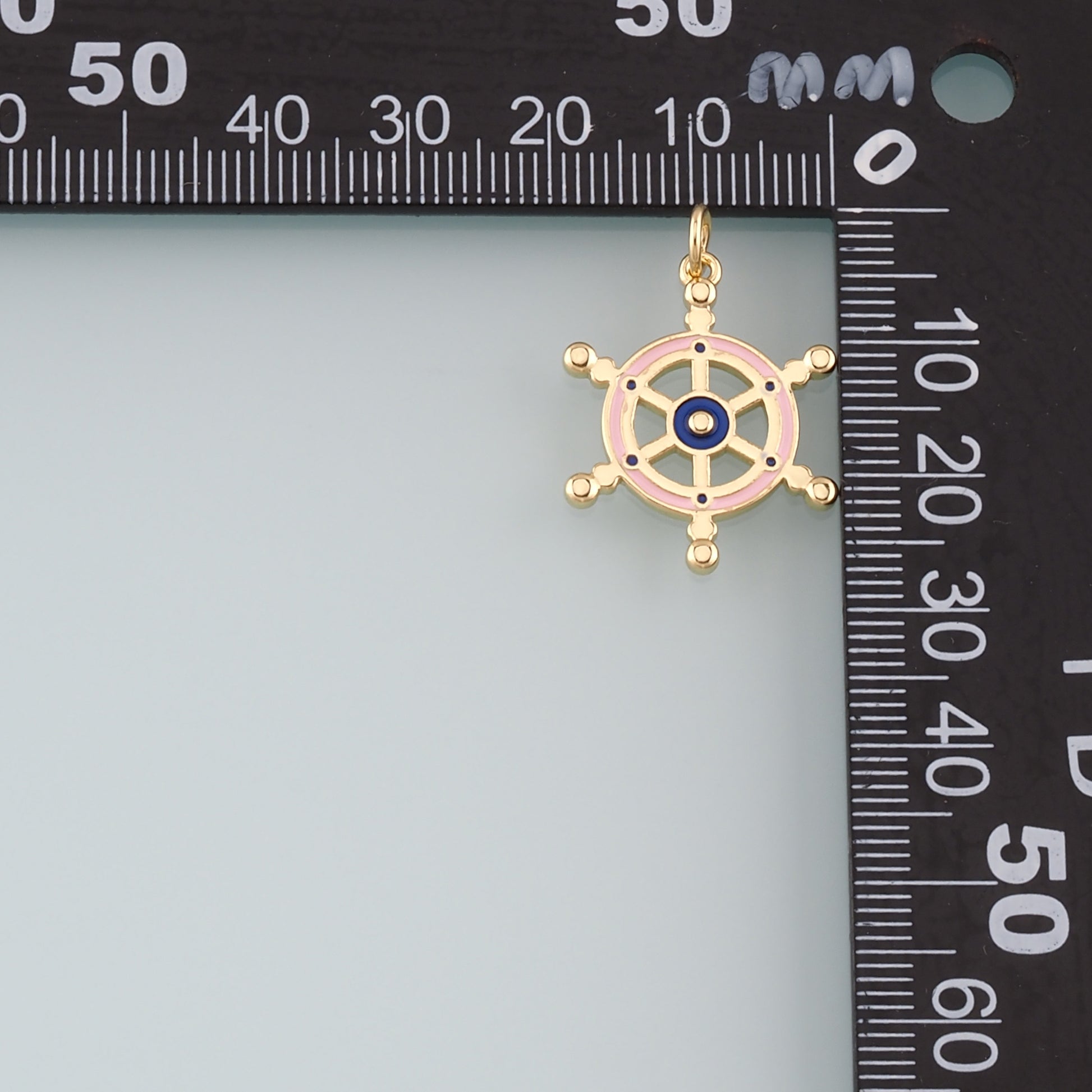 Gold Rudder Charm,18K Gold Filled Rudder Pendant,Enamel Navigation Charm Bracelet Necklace for DIY Jewelry Making Supply