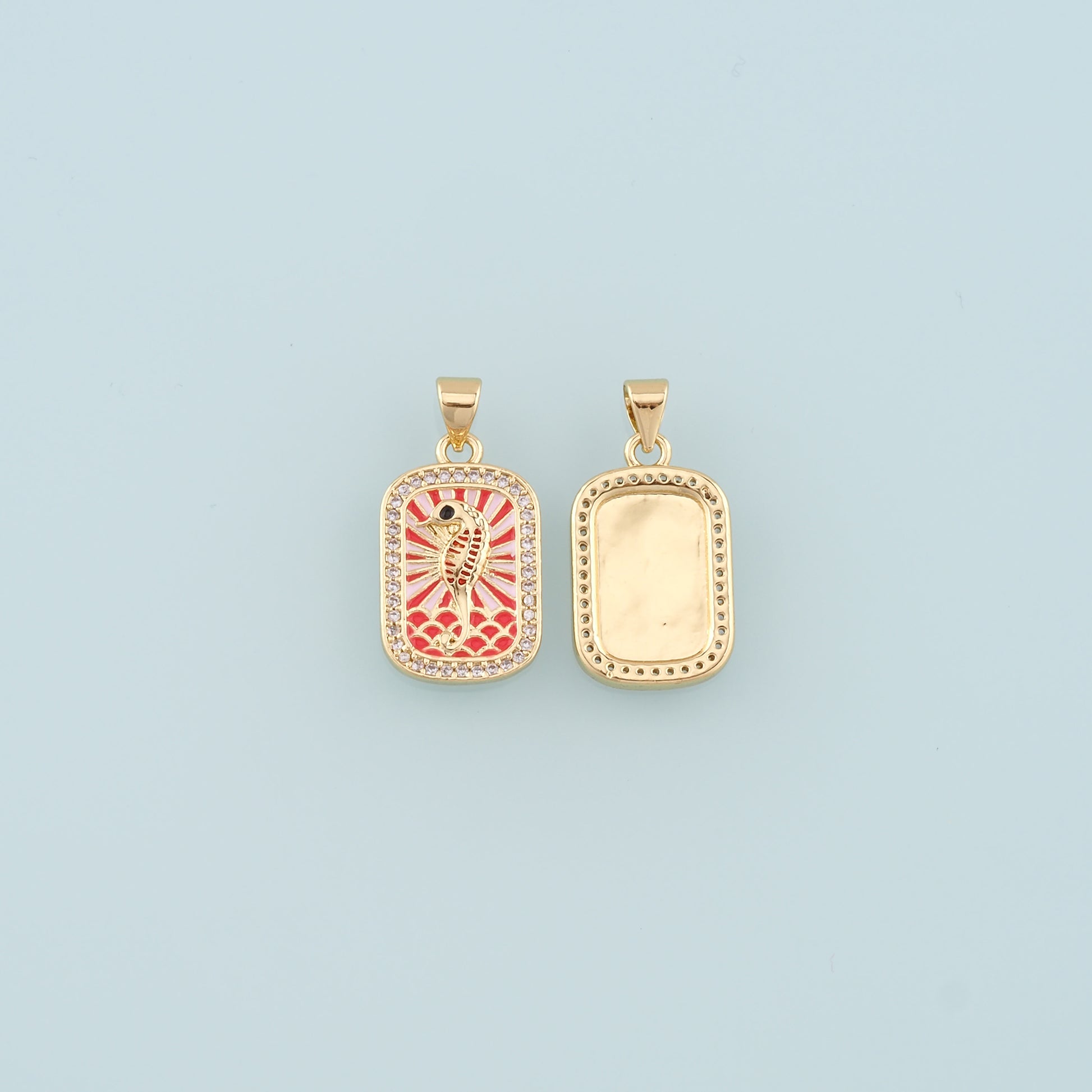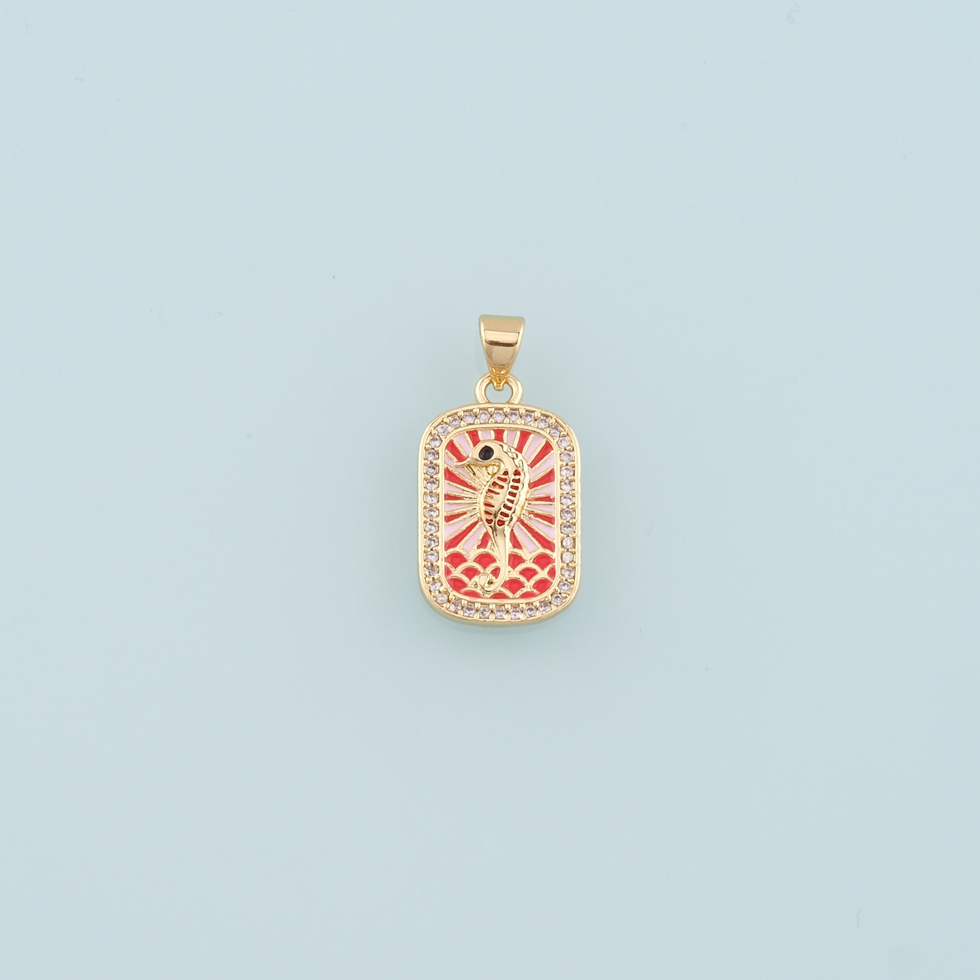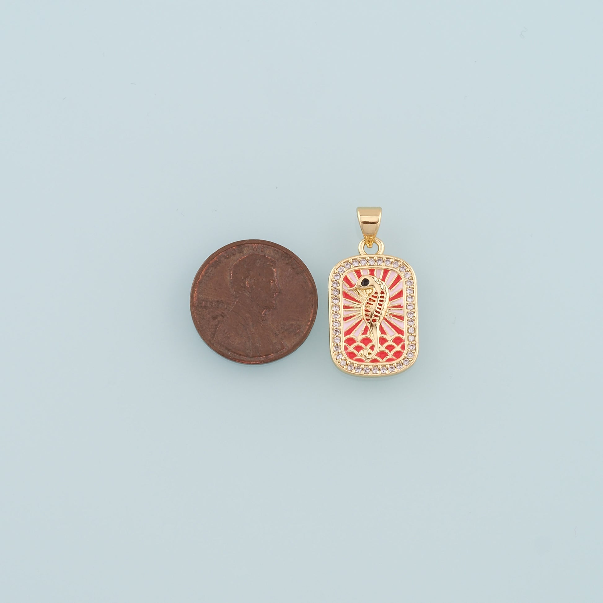 Gold Seahorse Charms,18K Gold Filled CZ Seahorse Pendant,Enamel Seahorse Charm Bracelet Necklace for DIY Jewelry Making Supply