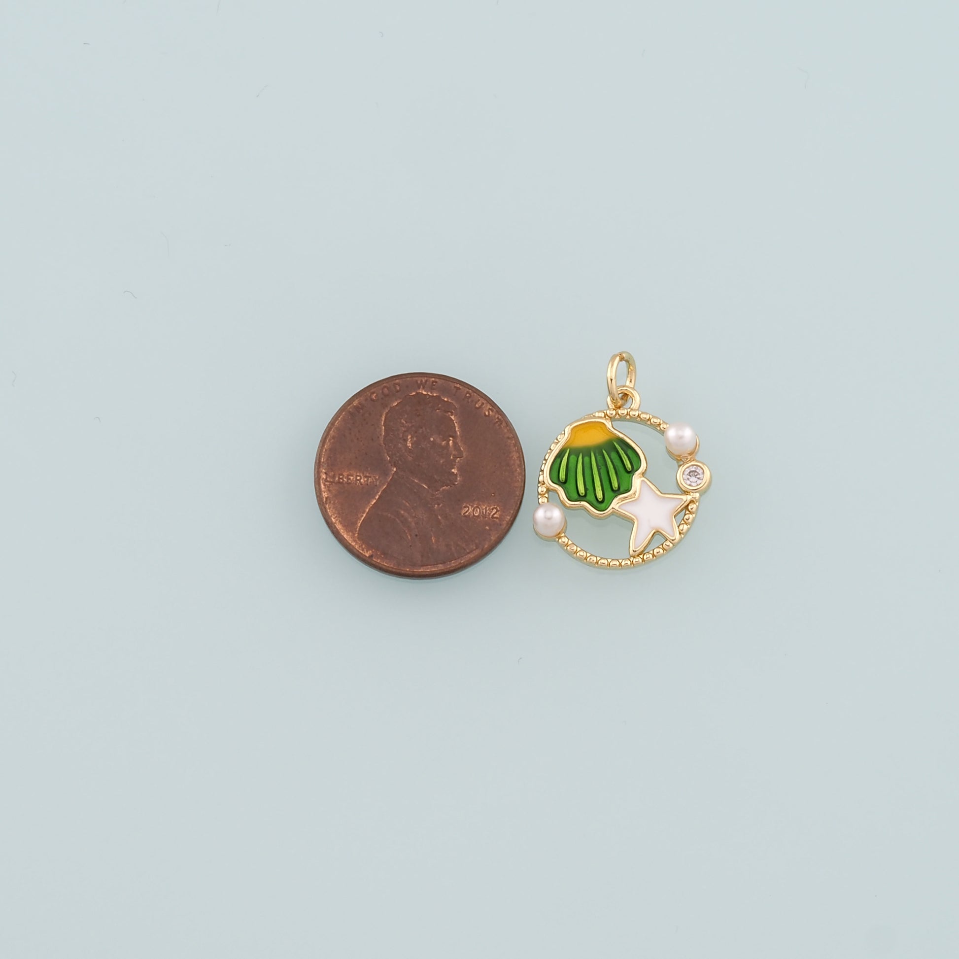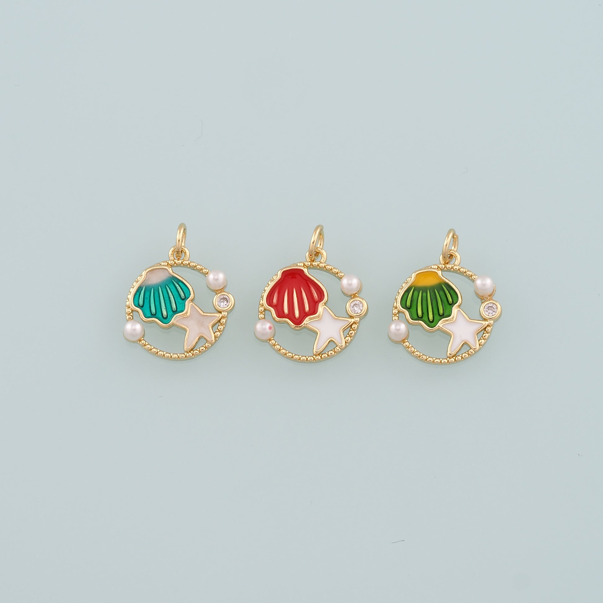 Gold Shell Charm,18K Gold Filled Scallop Pendant,Enamel Starfish Charm Bracelet Necklace for DIY Jewelry Making Supply