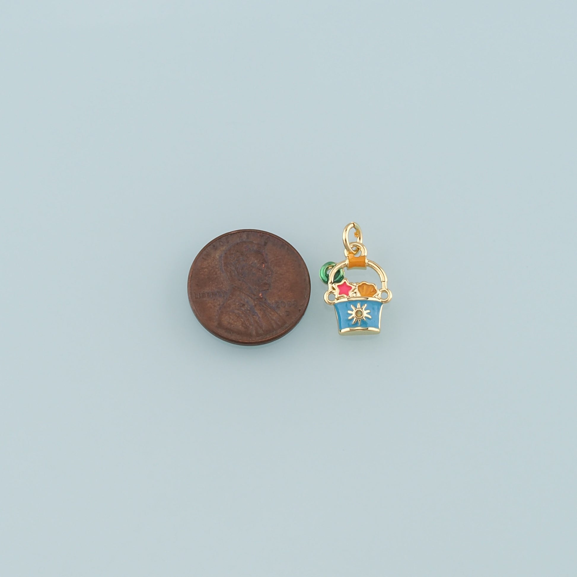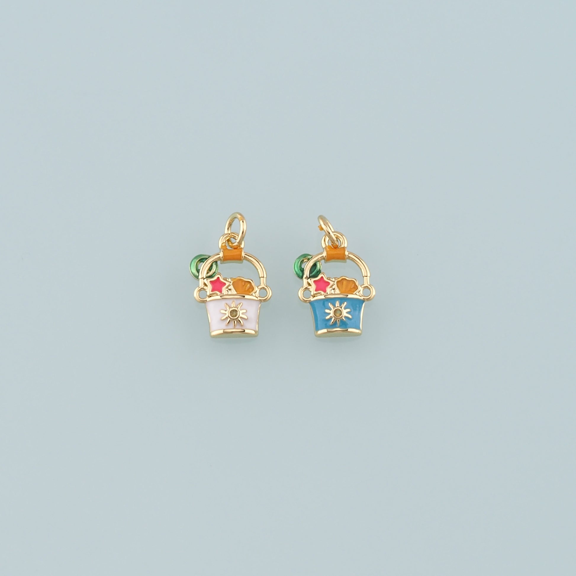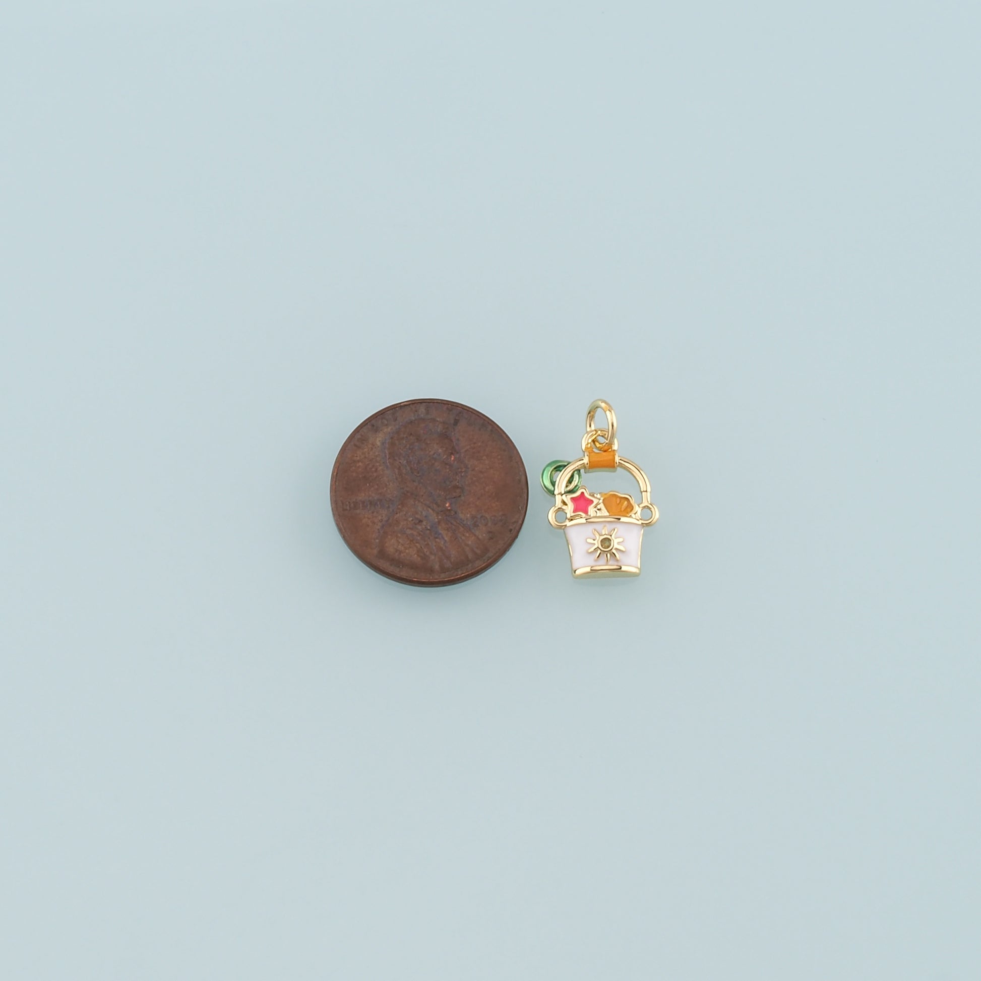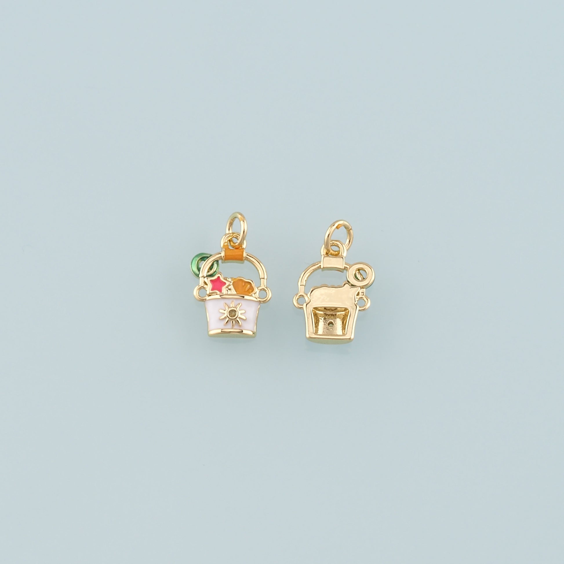 Gold Shell Charms,18K Gold Filled Beach bucket Pendant,Enamel Sand Bucket Charm Bracelet Necklace for DIY Jewelry Making Supply