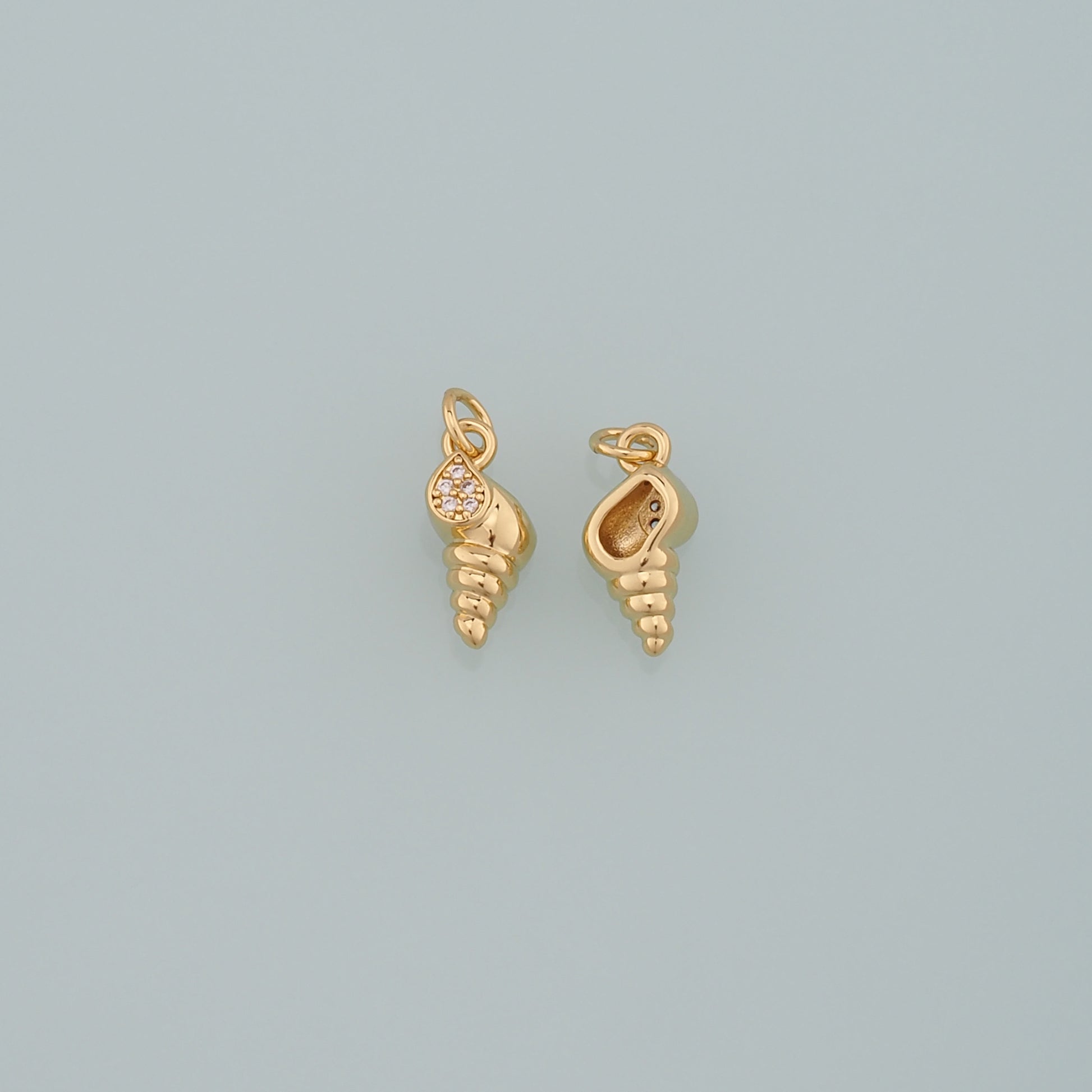 Gold Shell Charms,18K Gold Filled Conch Pendant,CZ Micro Pave Conch Shell Charm Bracelet Necklace for DIY Jewelry Making Supply