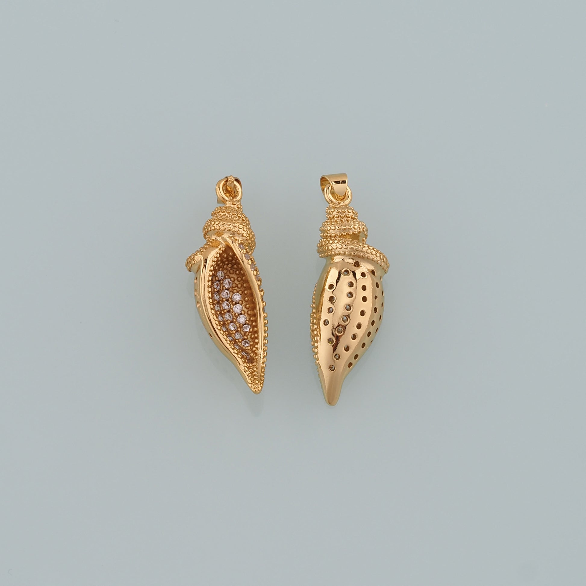 Gold Shell Charms,18K Gold Filled Conch Pendant,CZ Micro Pave Conch Shell Charm Bracelet Necklace for DIY Jewelry Making Supply