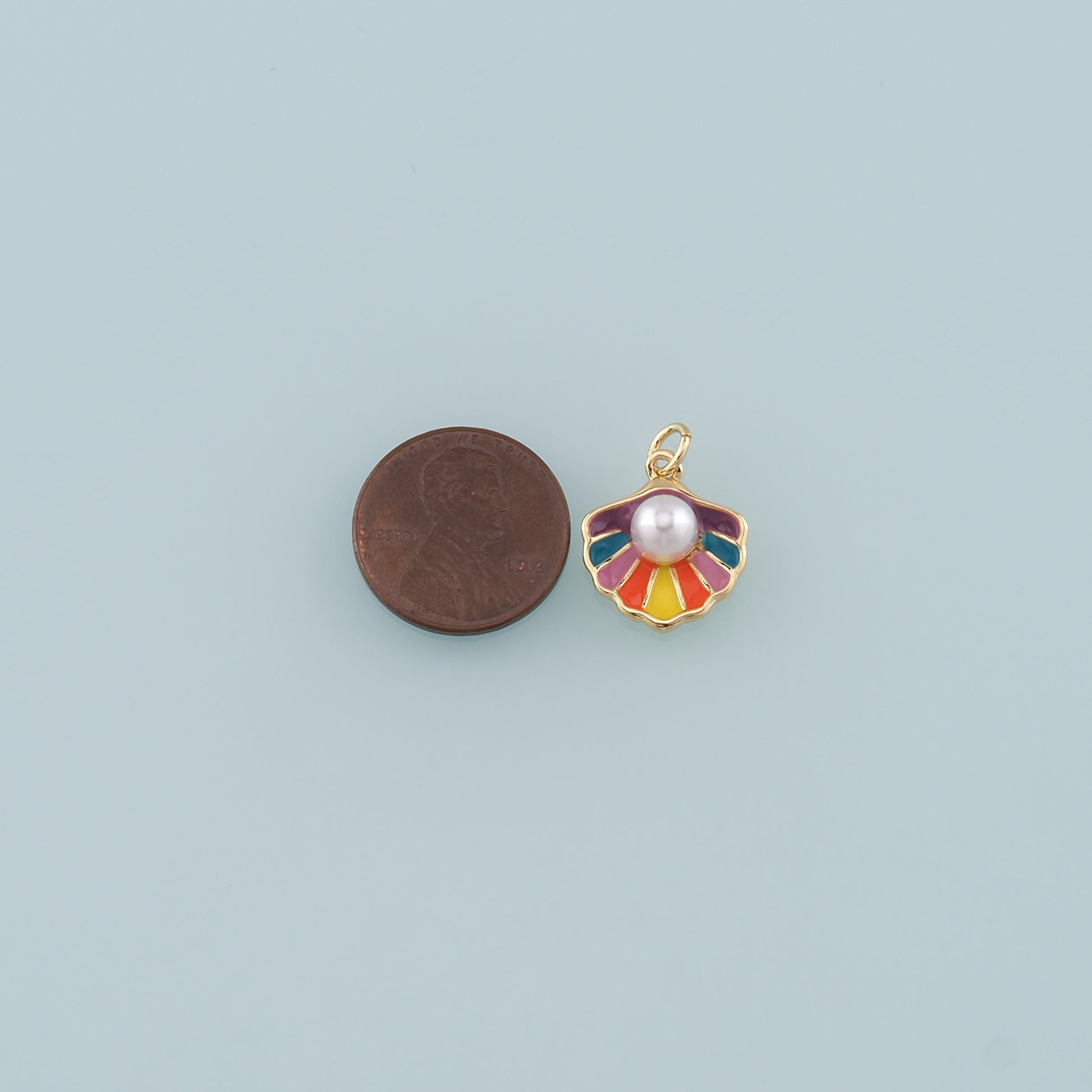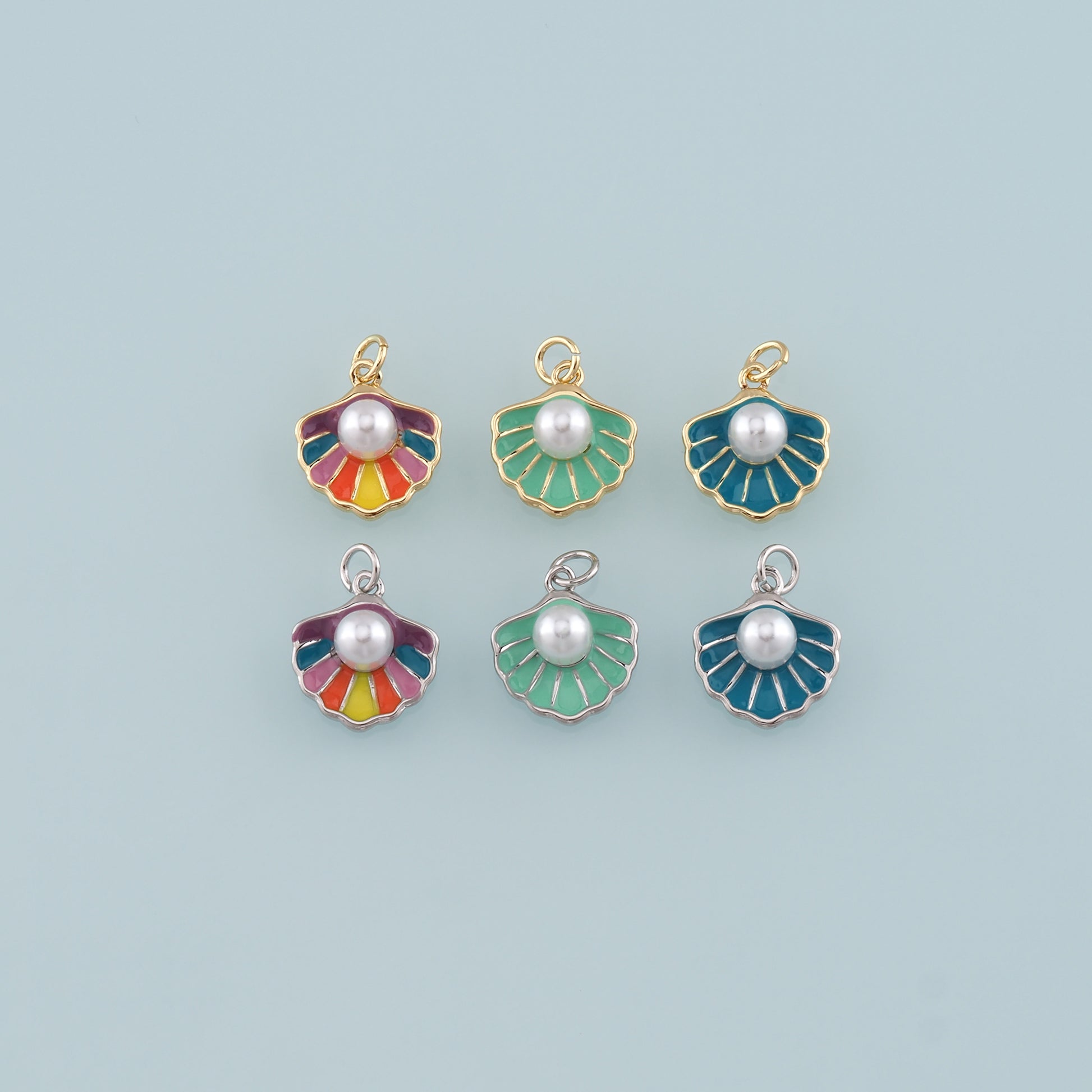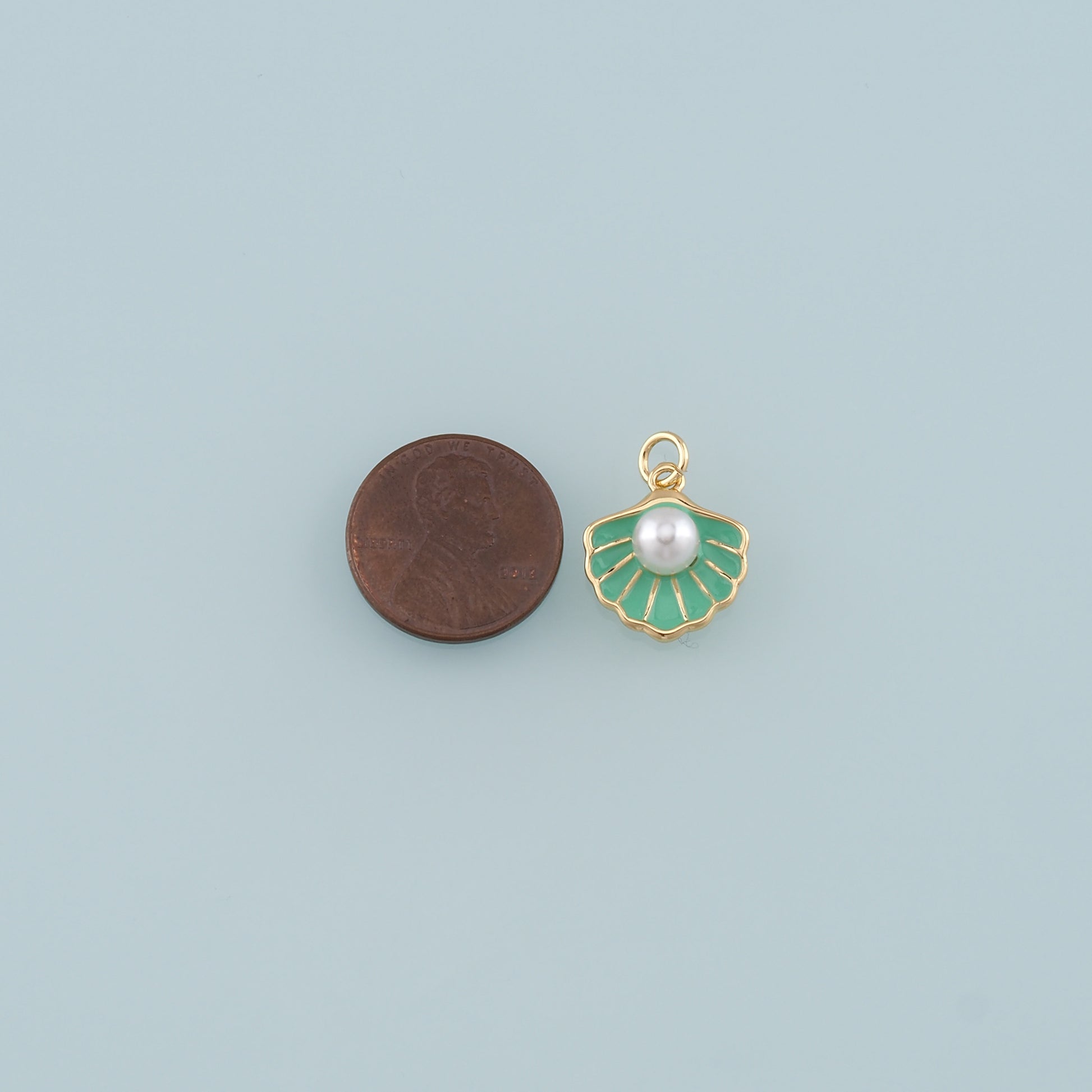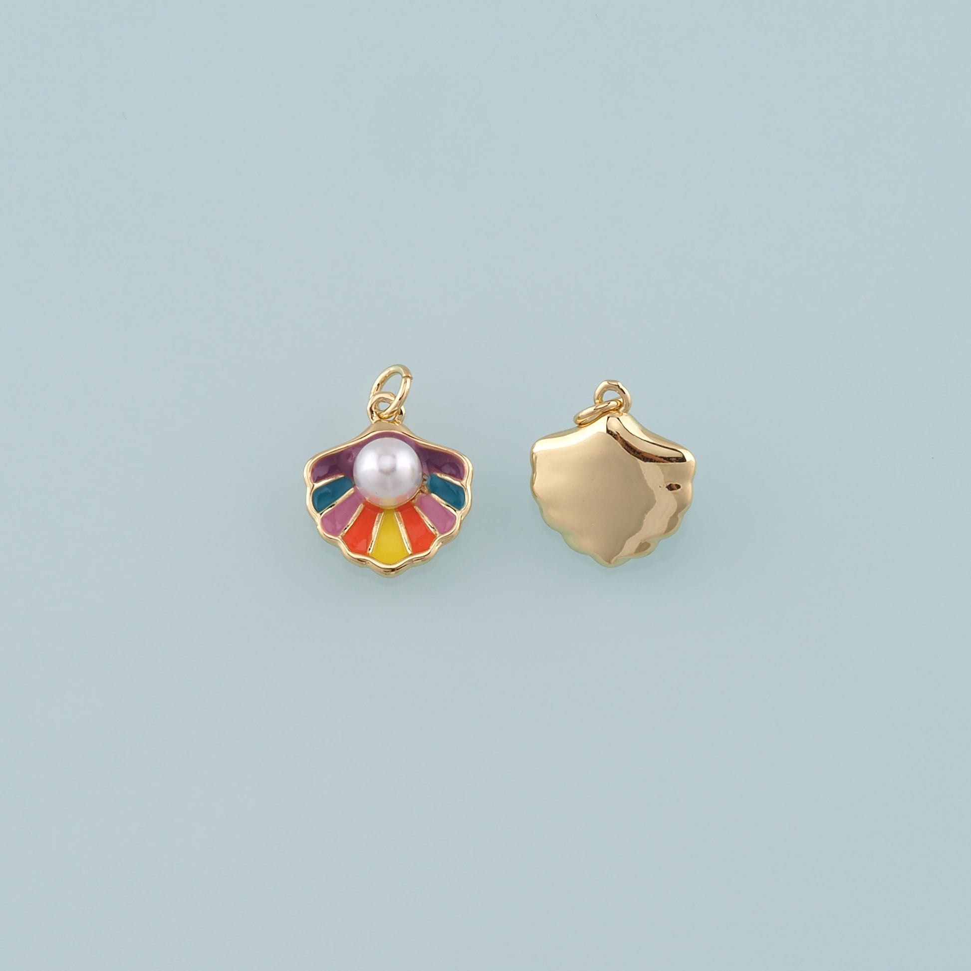 Gold Shell Charms,18K Gold Filled Pearl Scallop Pendant,Enamel Conch Shell Charm Bracelet Necklace for DIY Jewelry Making Supply