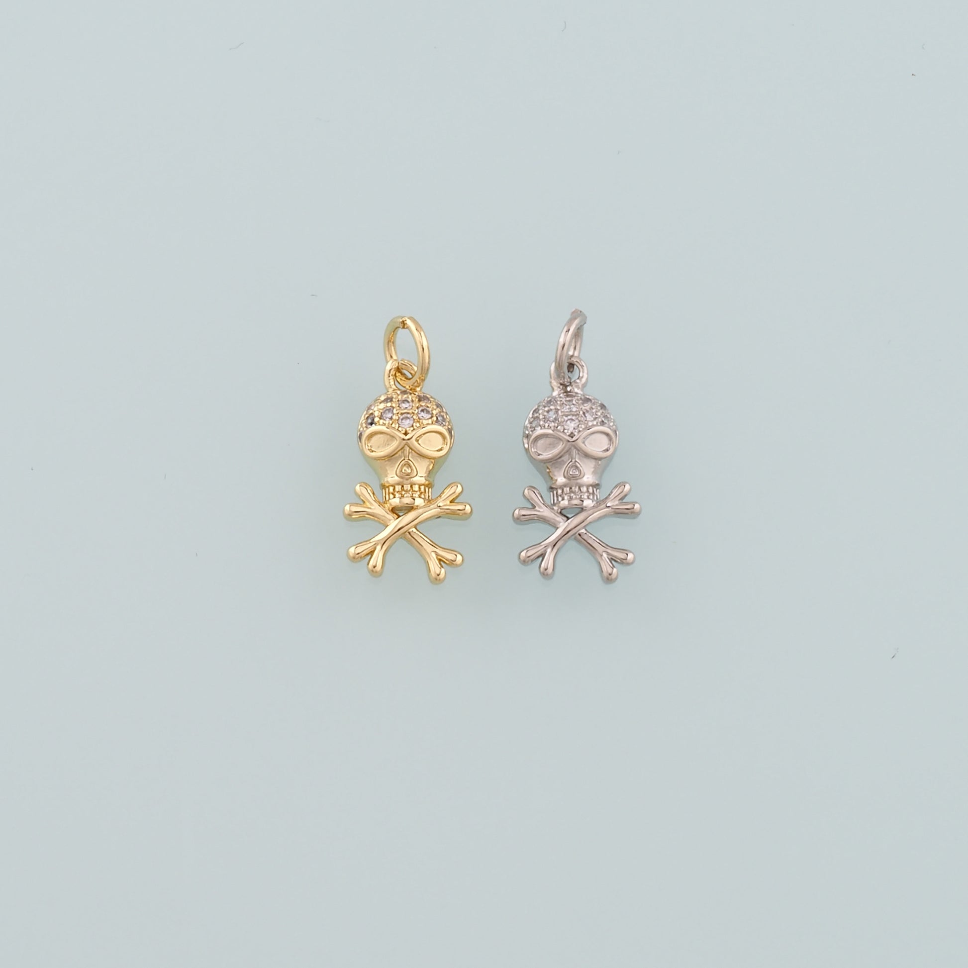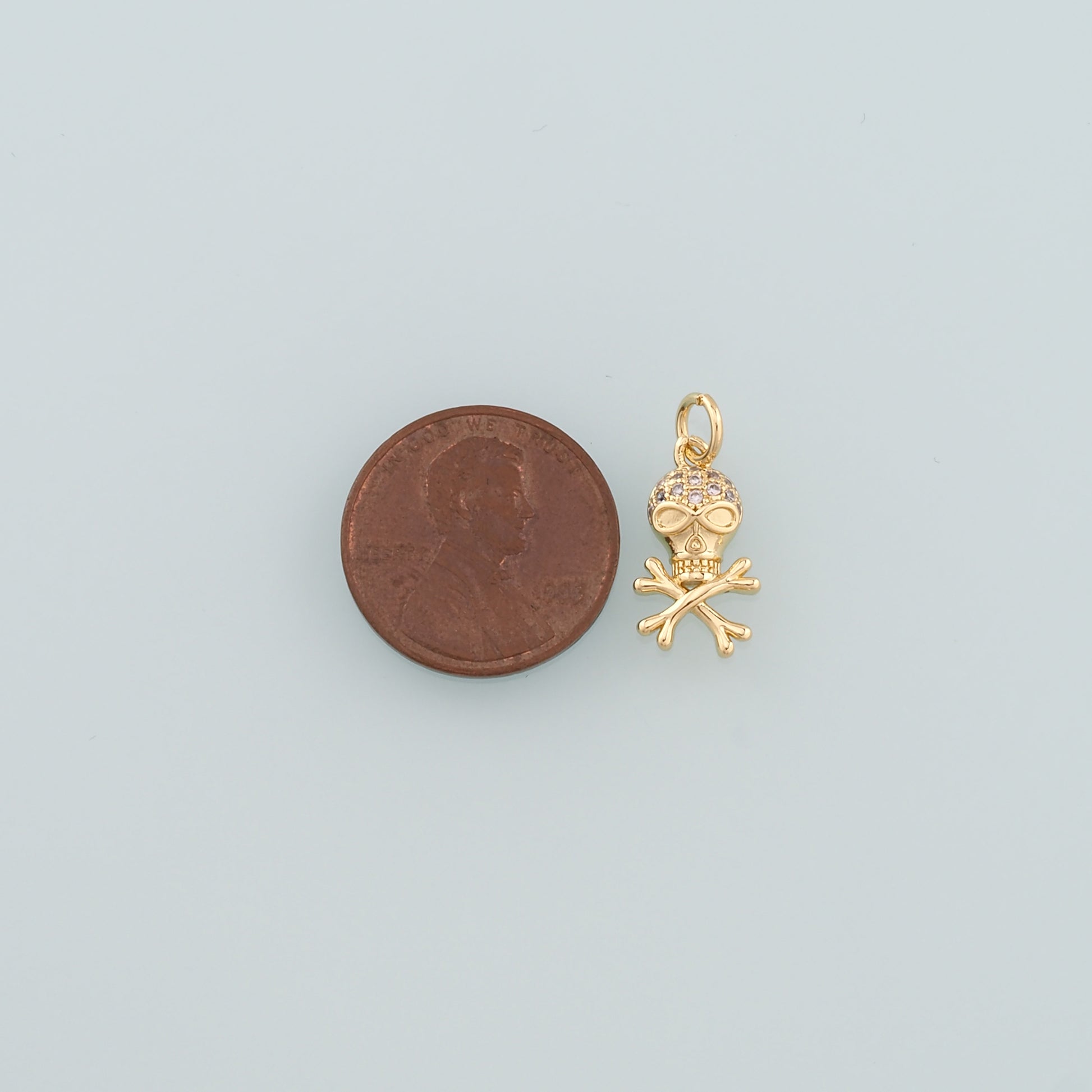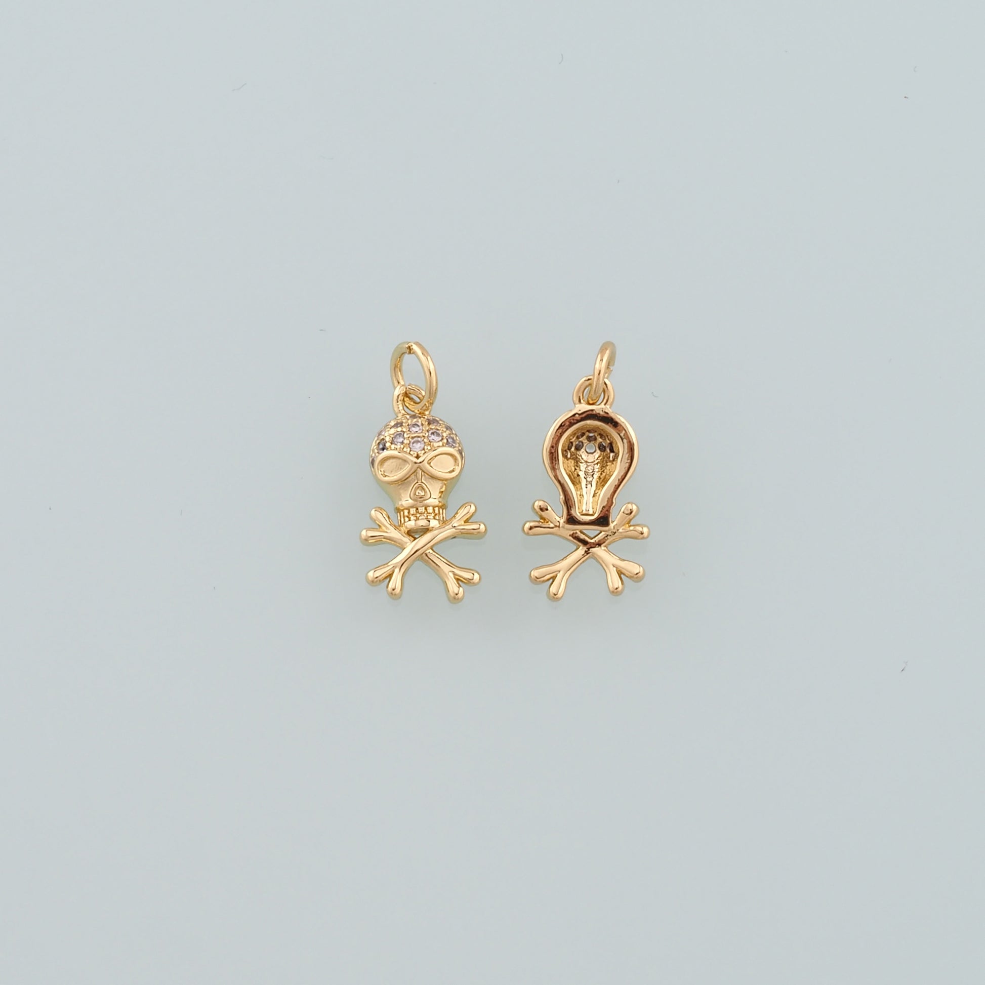 Gold Skull Charms,18K Gold Filled Skull Pendant,CZ Micro Pave Skull Charm Bracelet Necklace for DIY Jewelry Making Supply