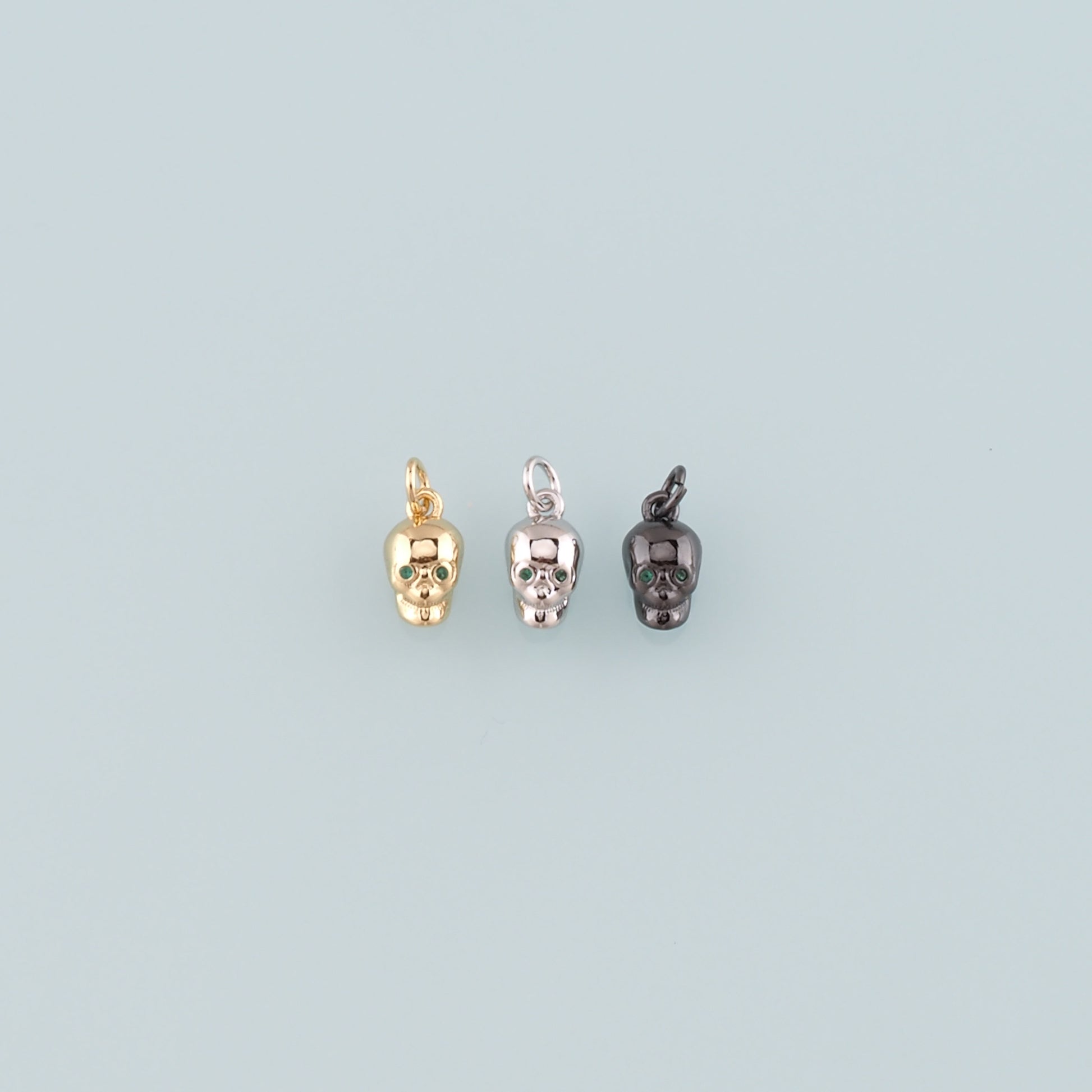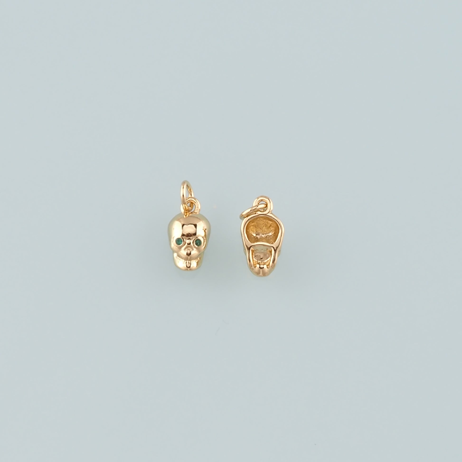 Gold Skull Charms,18K Gold Filled Skull Pendant,CZ Micro Pave Skull Charm Bracelet Necklace for DIY Jewelry Making Supply