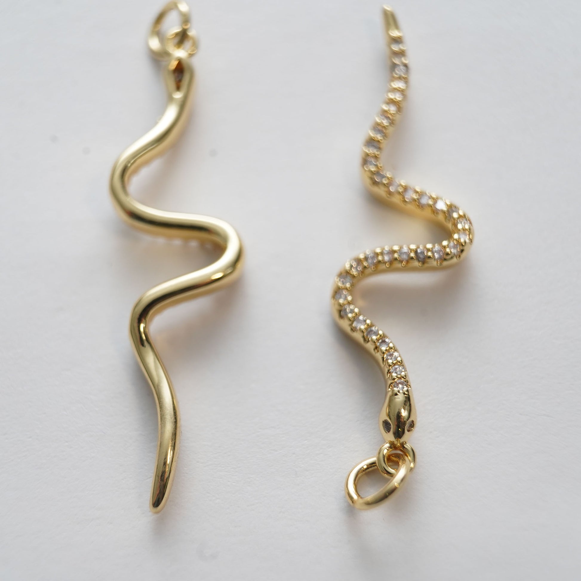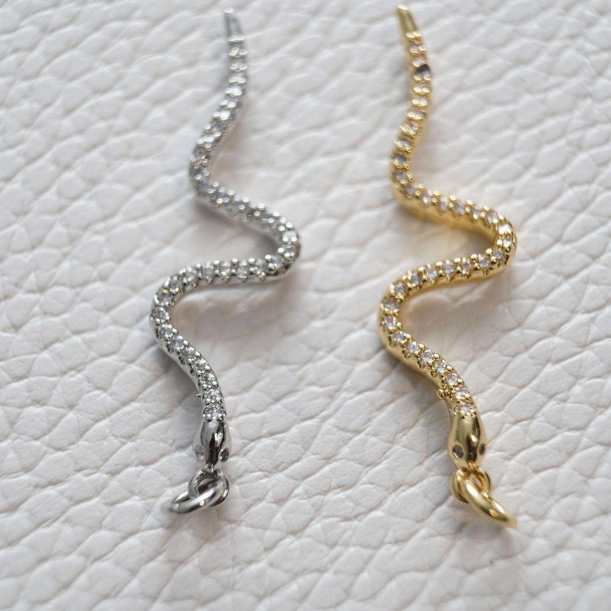 Gold Snake charms,18K Gold Filled CZ Micro Pave Snake Pendant,Silver Snake Charms Bracelet Necklace for DIY Jewelry Making Supply