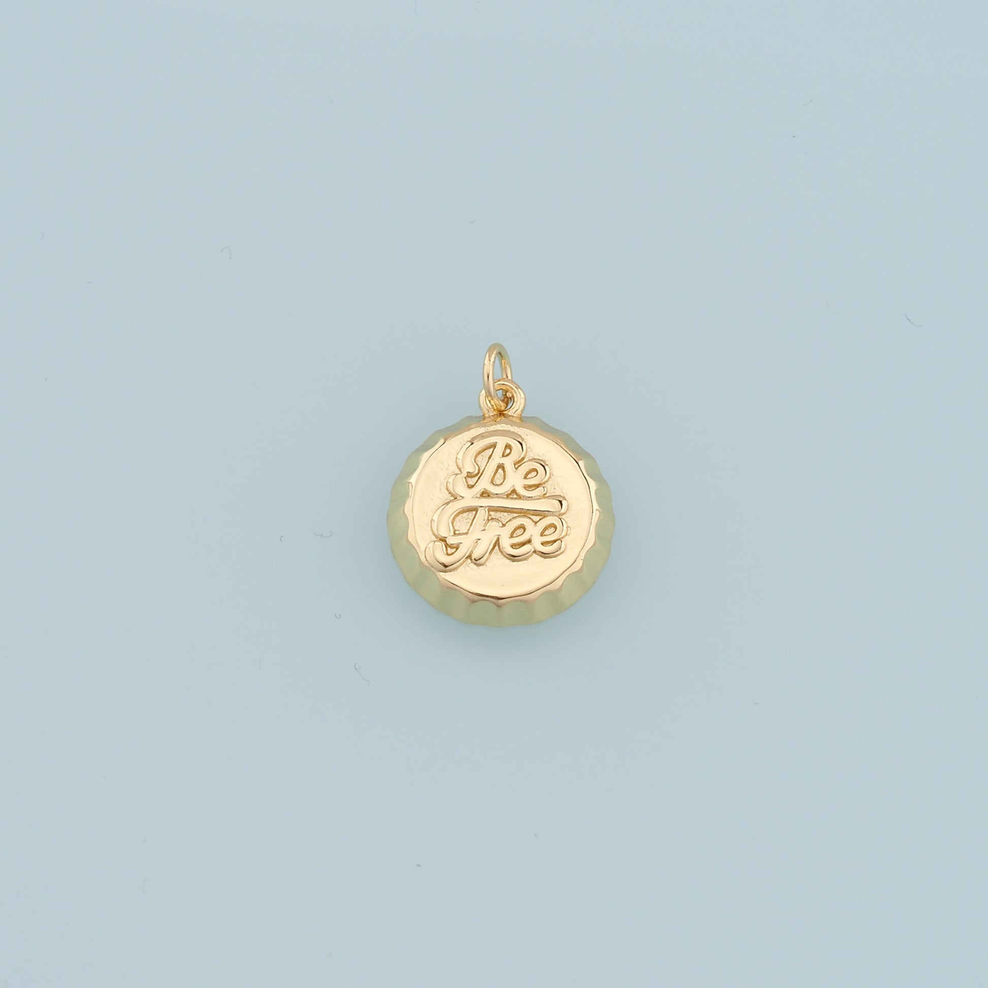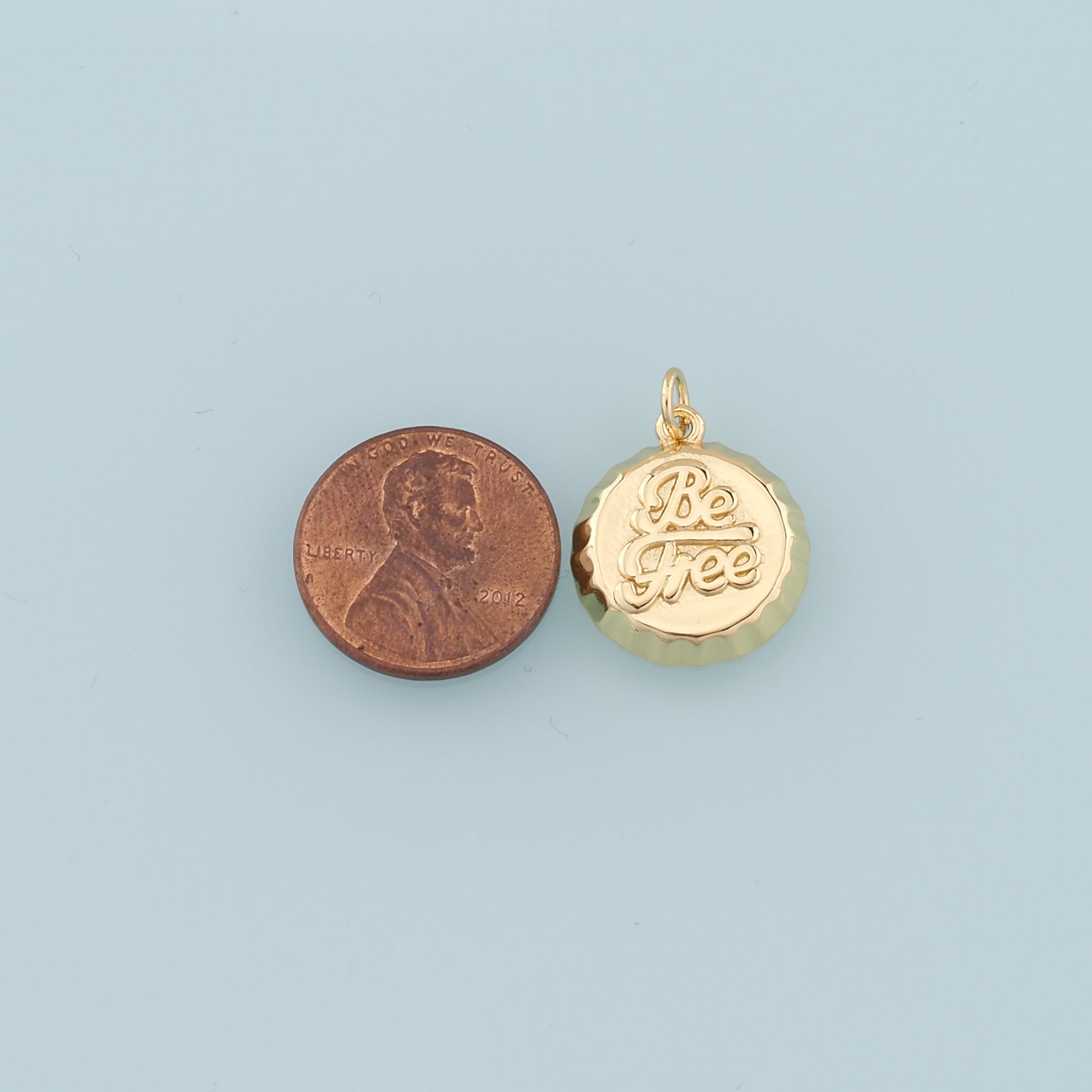 Gold Soda Cap Charms Charms,18K Gold Filled Bottle Cap Pendant,Be Free Charm Bracelet Necklace for DIY Jewelry Making Supply