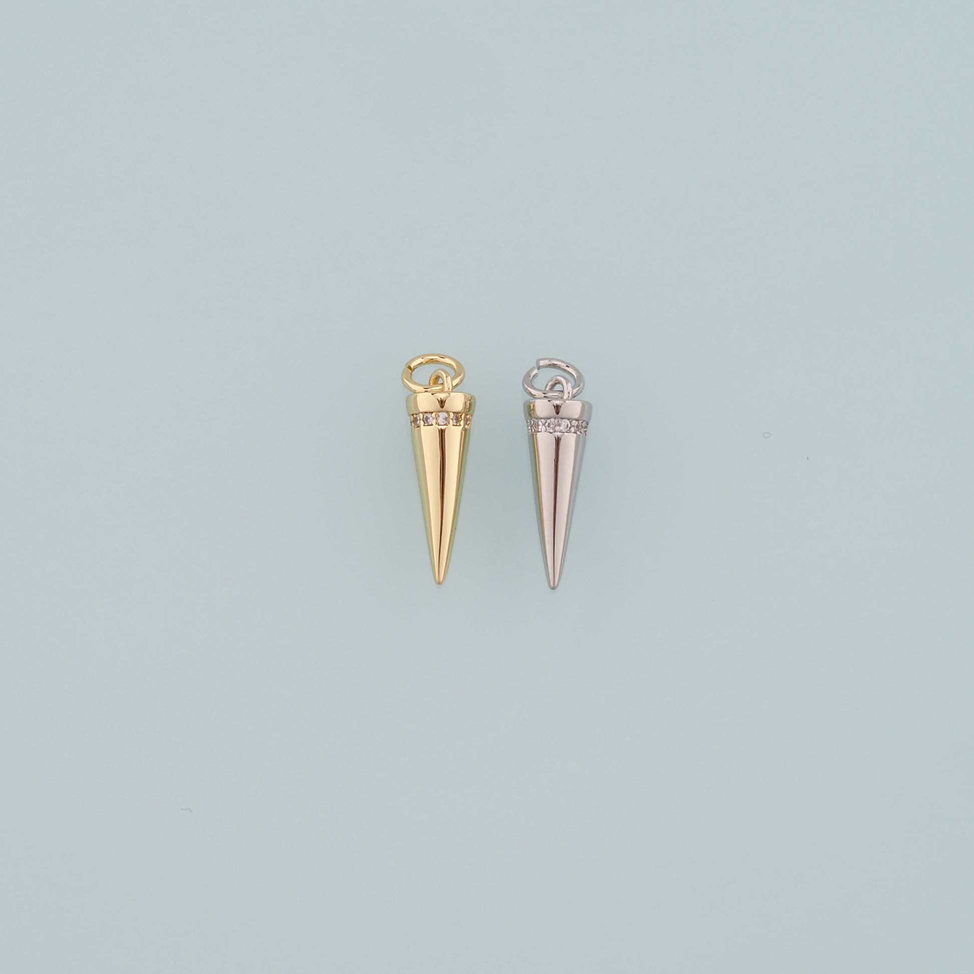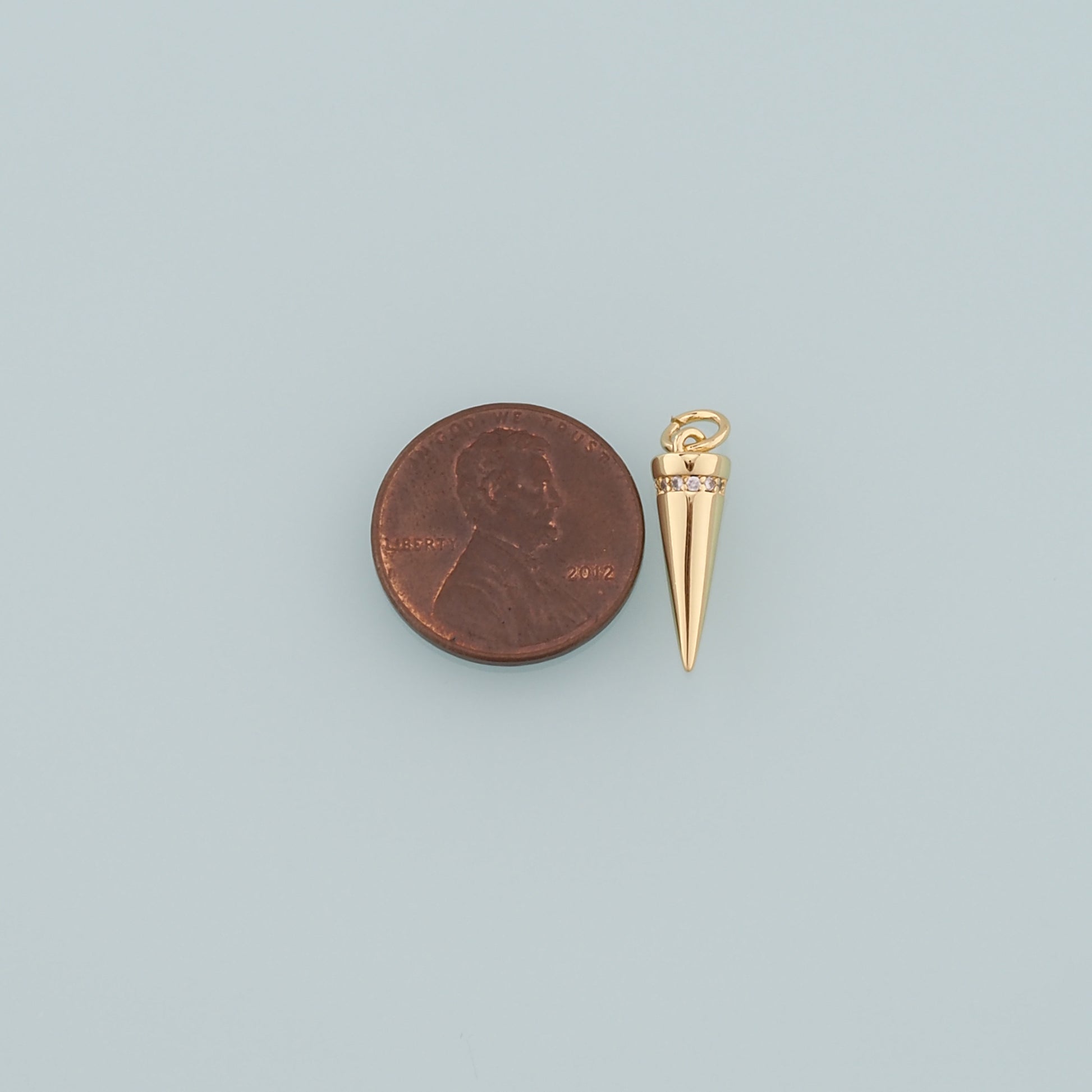 Gold Spikes Charms,18K Gold Filled Tapered Pendant,CZ Micro Pave Tapered Charm Bracelet Necklace for DIY Jewelry Making Supply