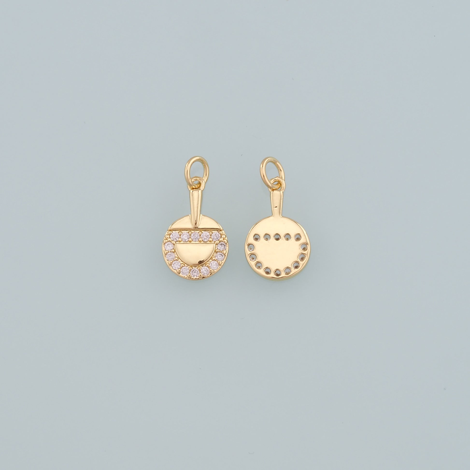 Gold Sports Charm,18K Gold Filled Table Tennis Pendant,CZ Micro Pave Racket Charm Bracelet Necklace for DIY Jewelry Making Supply
