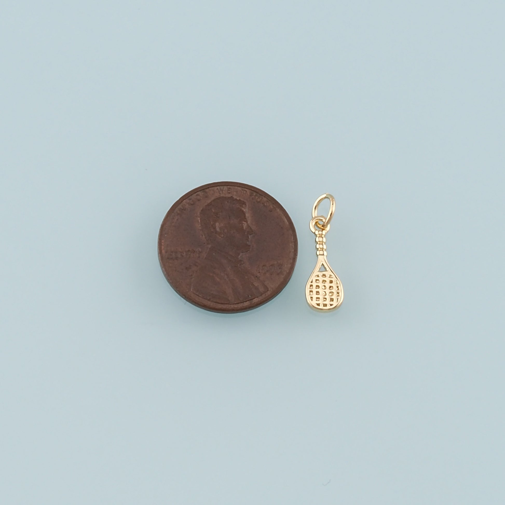 Gold Sports Charm,18K Gold Filled Tennis Racket Pendant,Racket Charm Bracelet Necklace for DIY Jewelry Making Supply