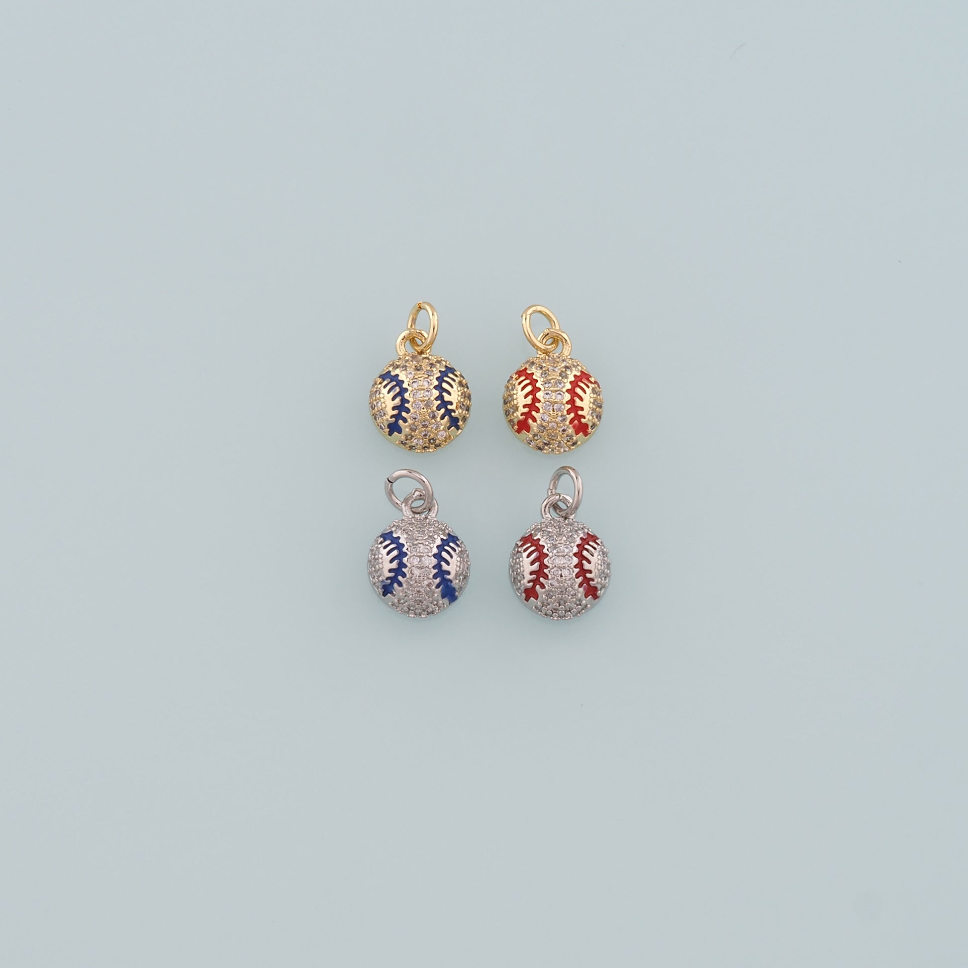 Gold Sports Charms,18K Gold Filled Baseball Pendant,Enamel Softball Charm Bracelet Necklace for DIY Jewelry Making Supply