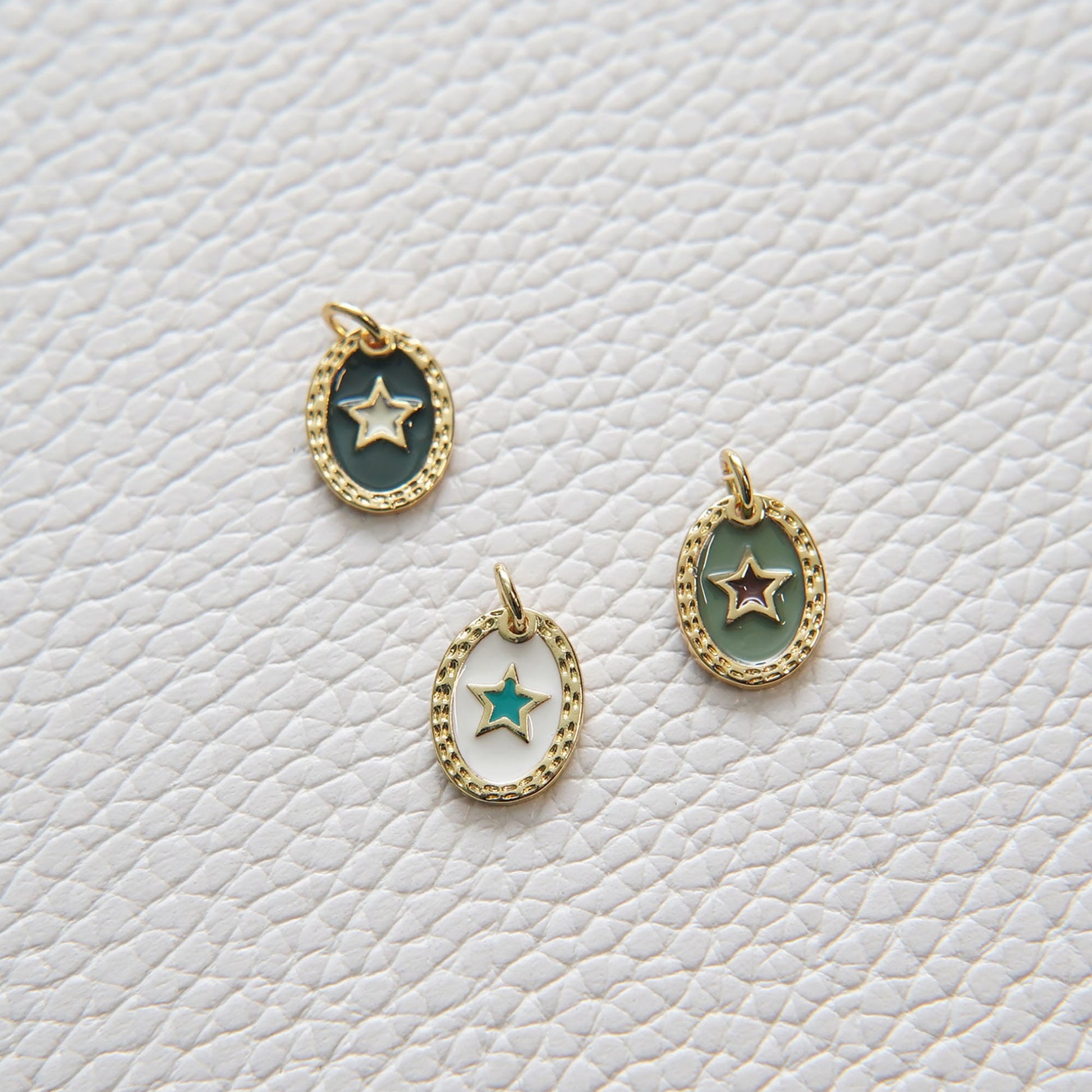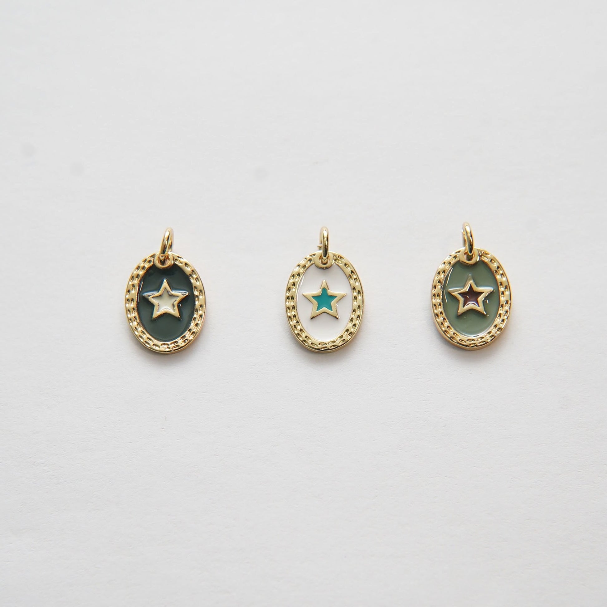 Gold Star Charms,18K Gold Filled Oval Enamel Star Pendant,Star Charm Bracelet Necklace for DIY Jewelry Making Supply