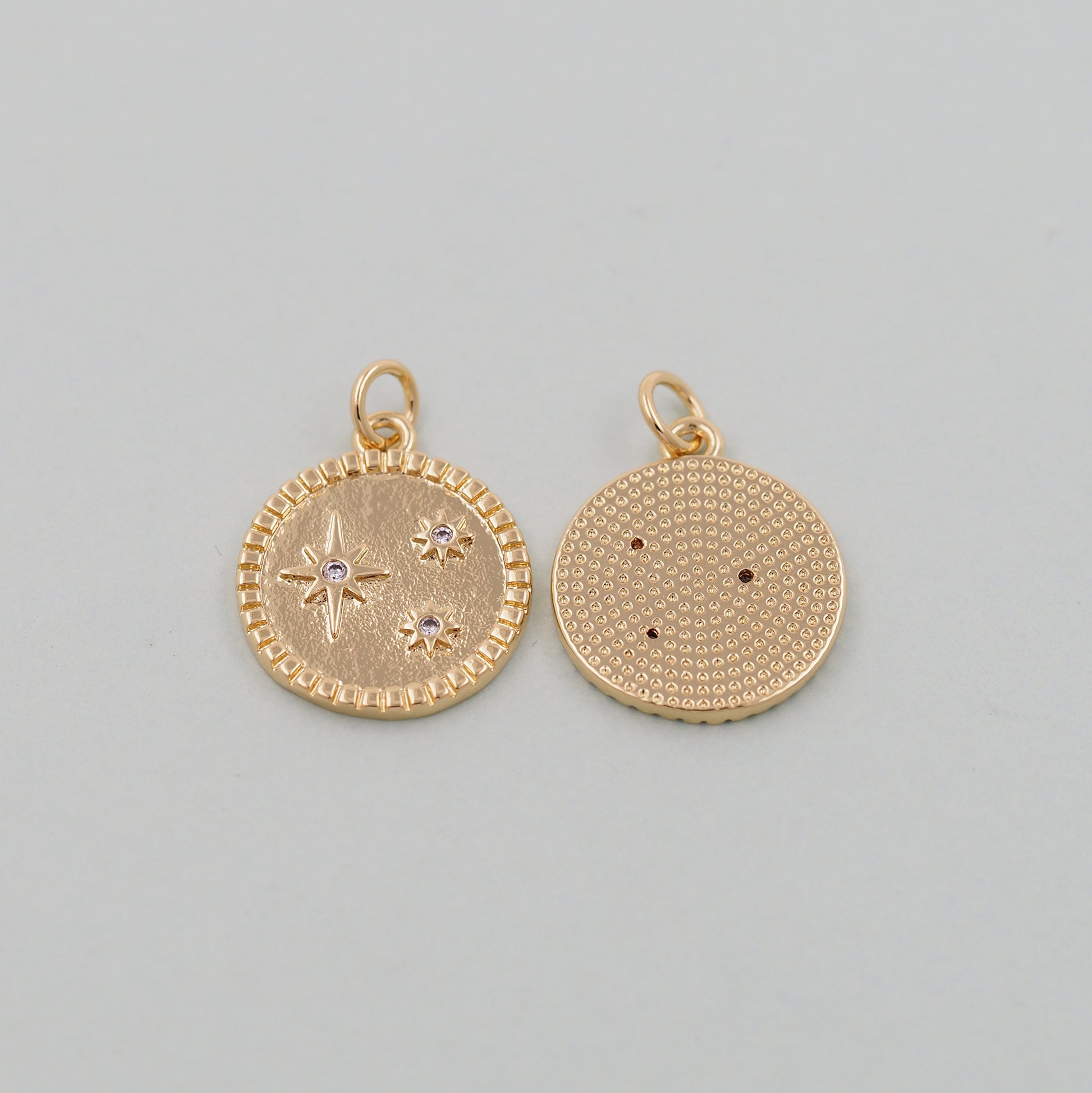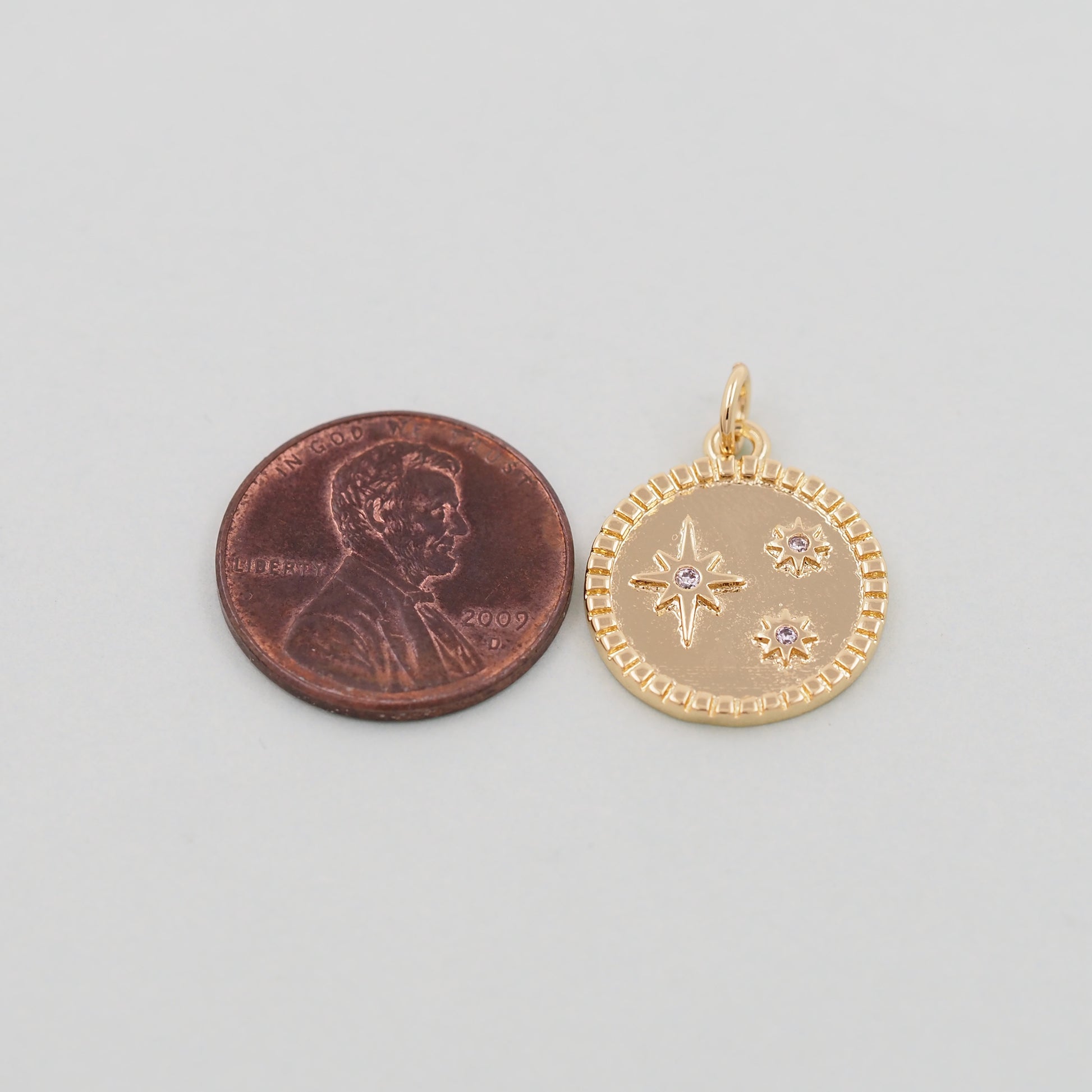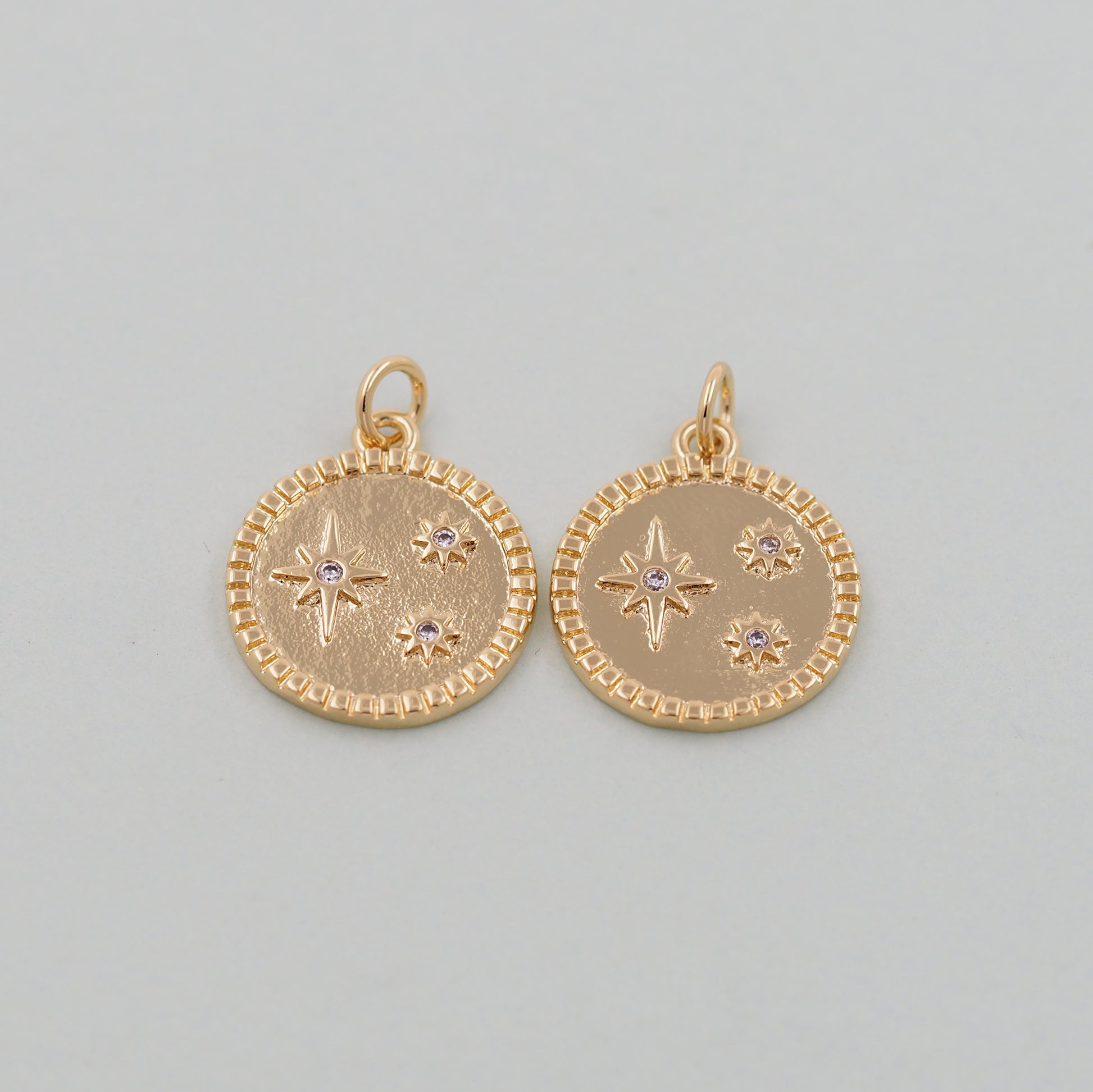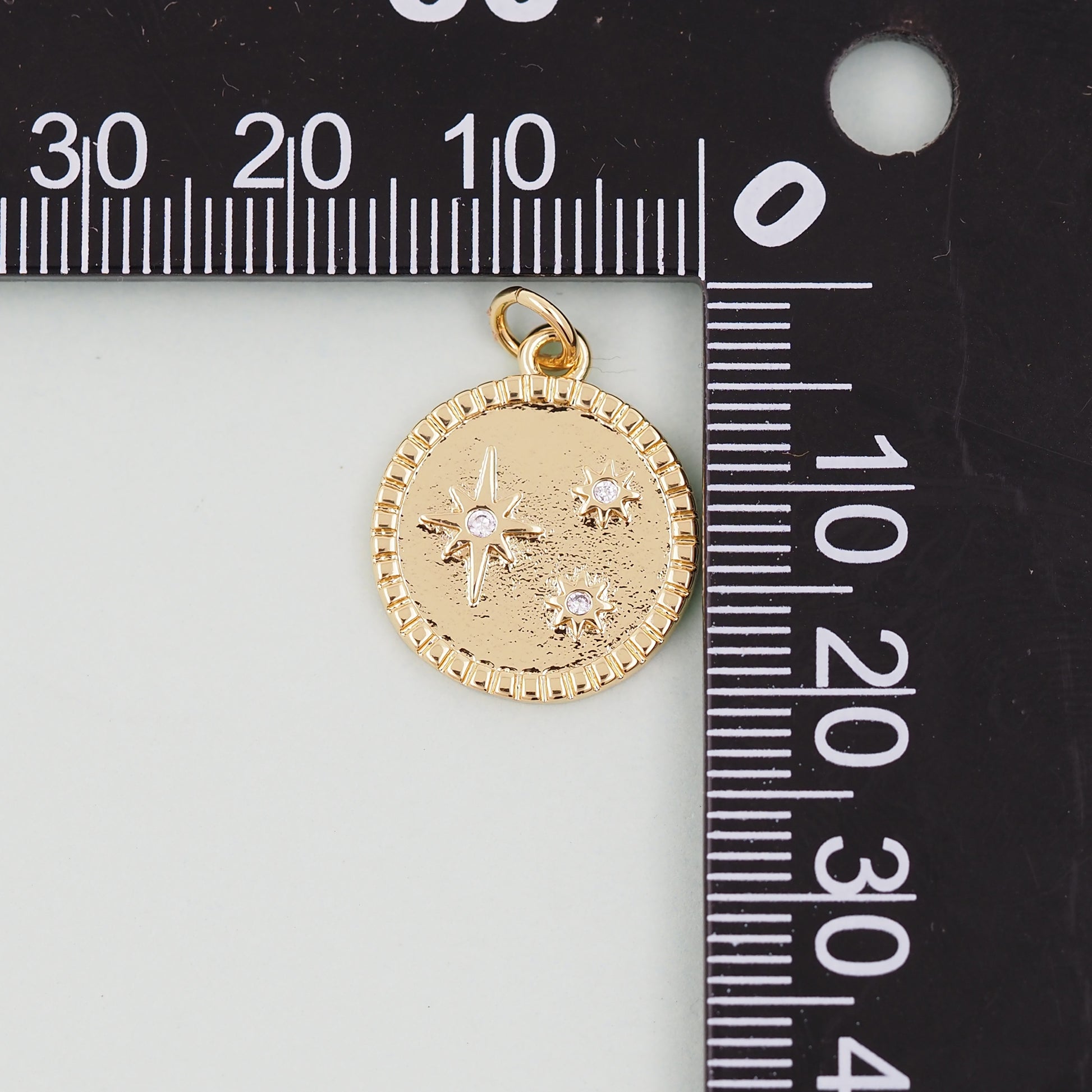 Gold Star Charms,18K Gold Filled Starburst Pendant,CZ North Star Charm Bracelet Necklace for DIY Jewelry Making Supply
