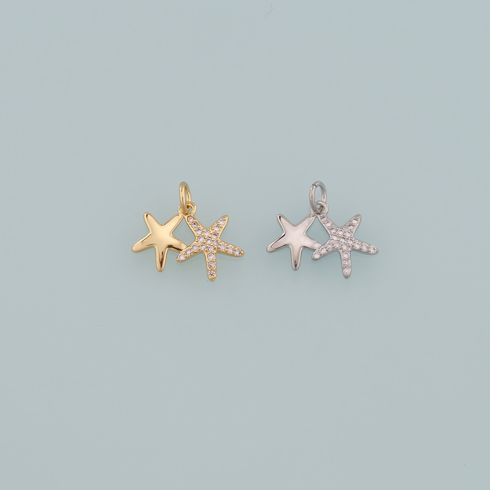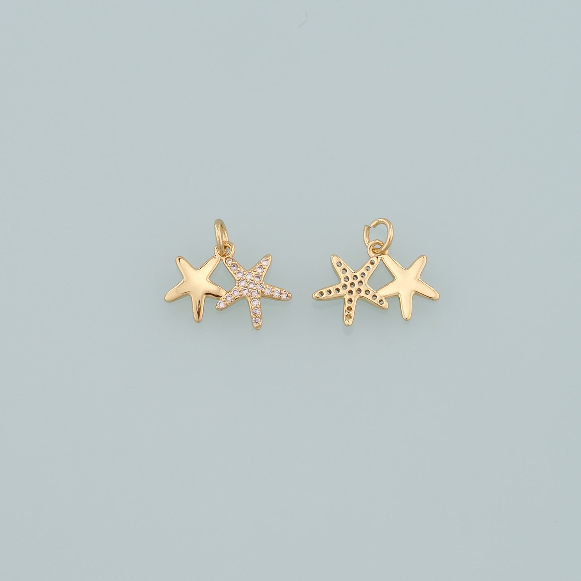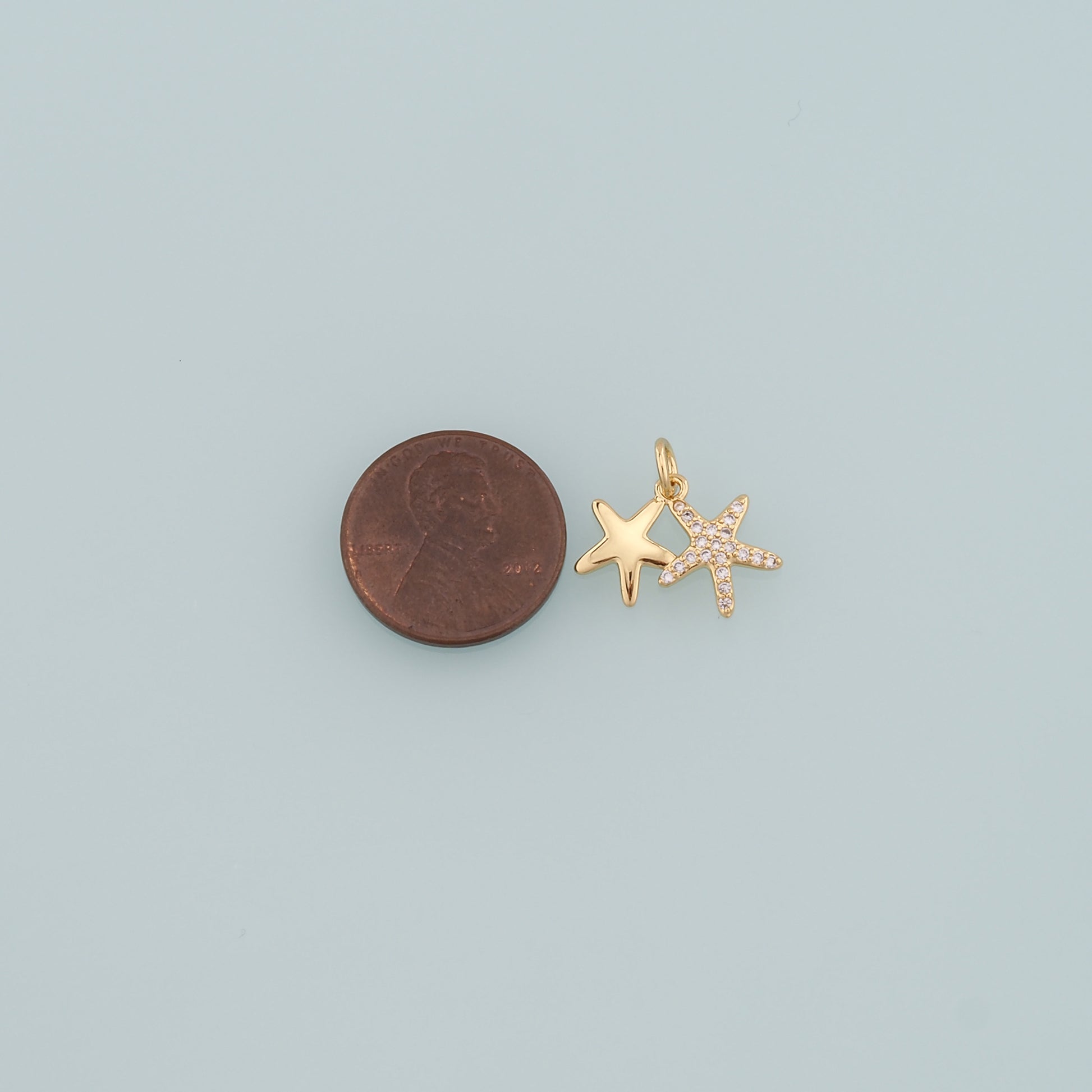 Gold Starfish Charms,18K Gold Filled Sea Star Pendant,CZ Micro Pave Starfish Charm Bracelet Necklace for DIY Jewelry Making Supply