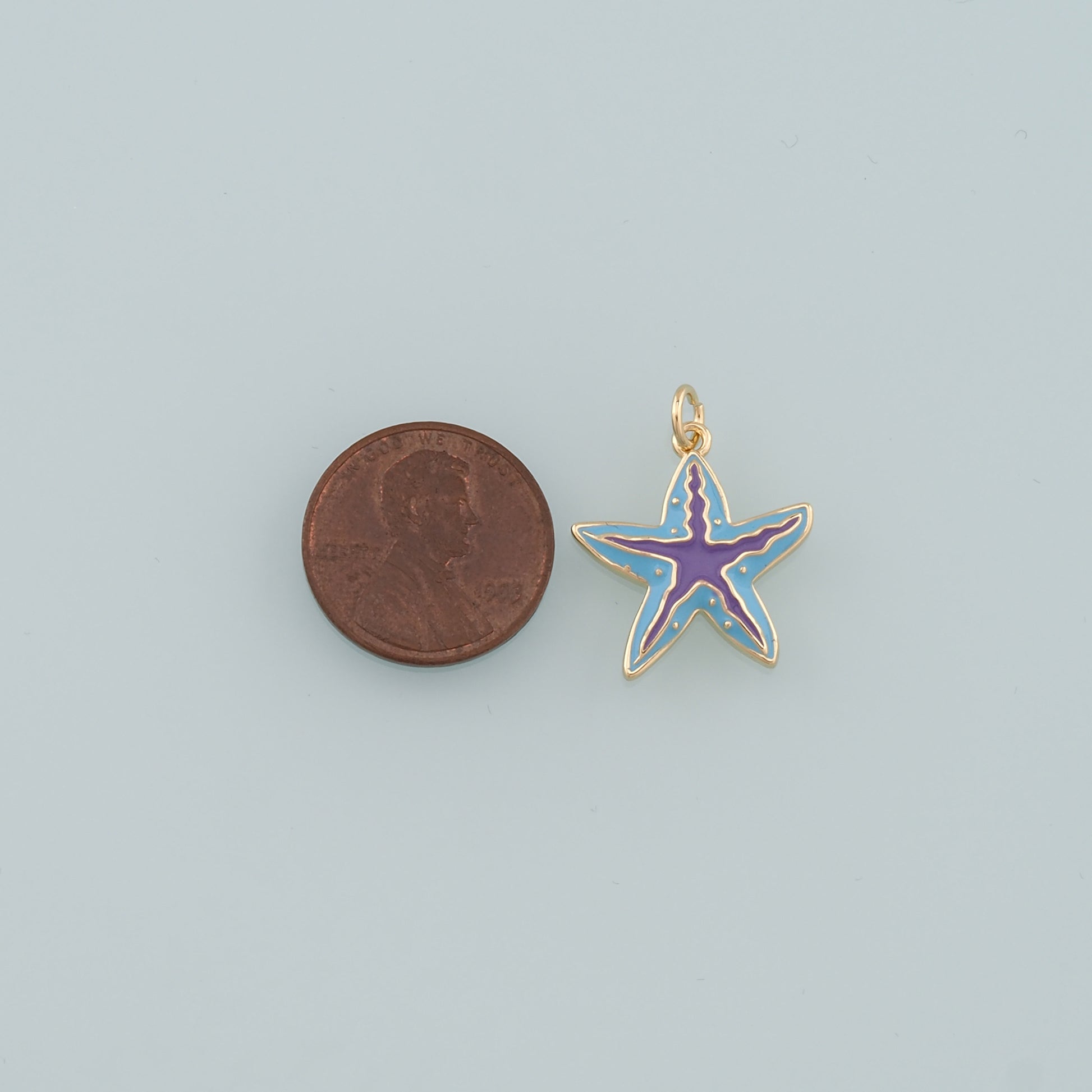Gold Starfish Charms,18K Gold Filled Sea star Pendant,Enamel Starfish Charm Bracelet Necklace for DIY Jewelry Making Supply