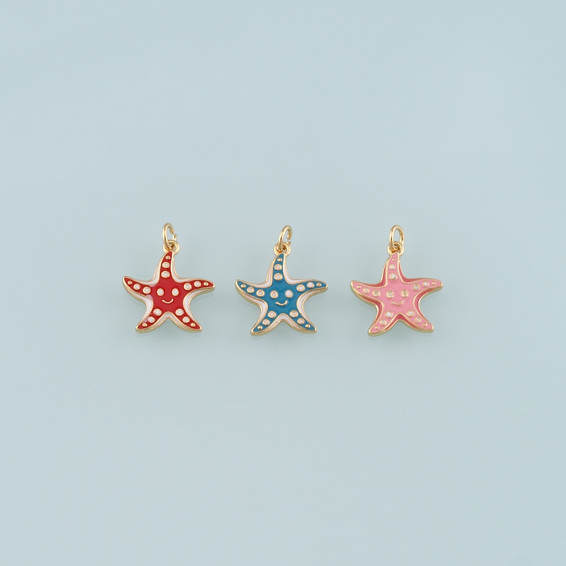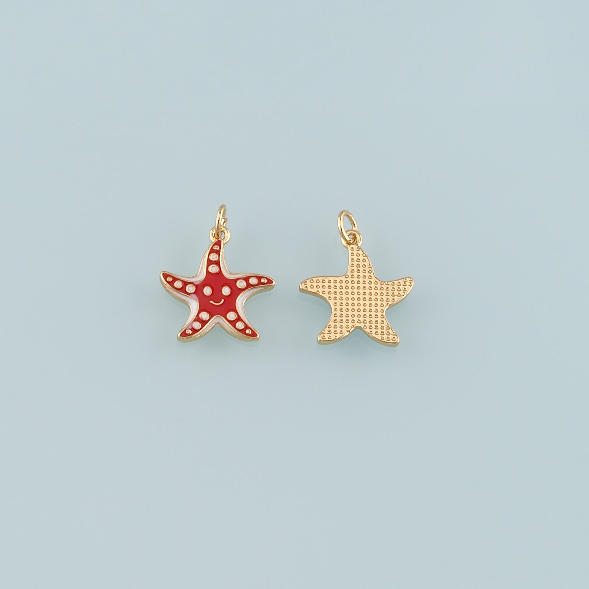 Gold Starfish Charms,18K Gold Filled Sea star Pendant,Enamel Starfish Charm Bracelet Necklace for DIY Jewelry Making Supply