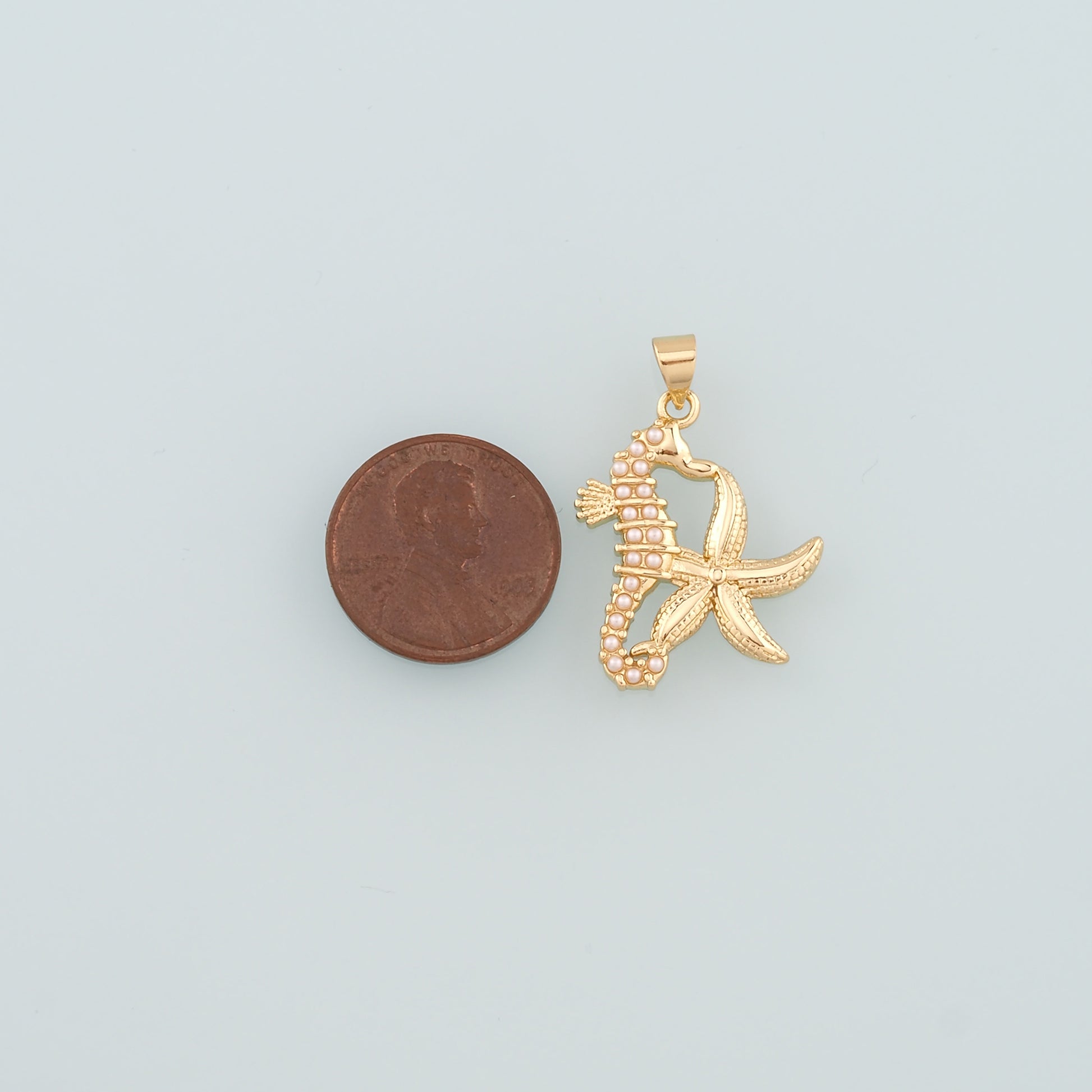 Gold Starfish Charms,18K Gold Filled Sea star Pendant,Pearl Seahorse Charm Bracelet Necklace for DIY Jewelry Making Supply