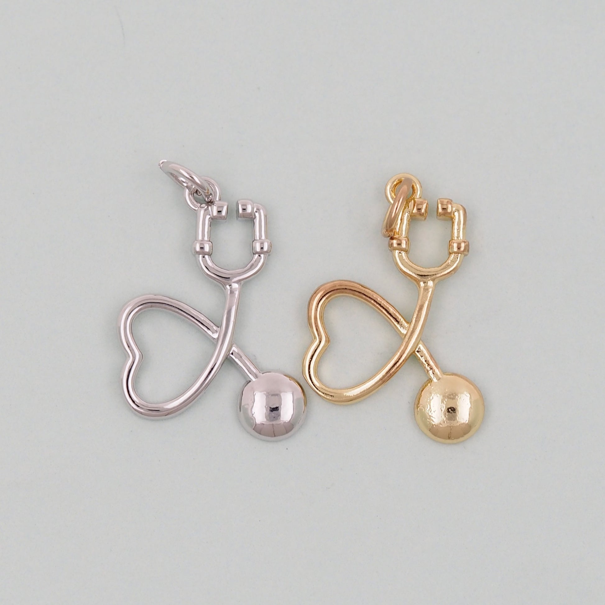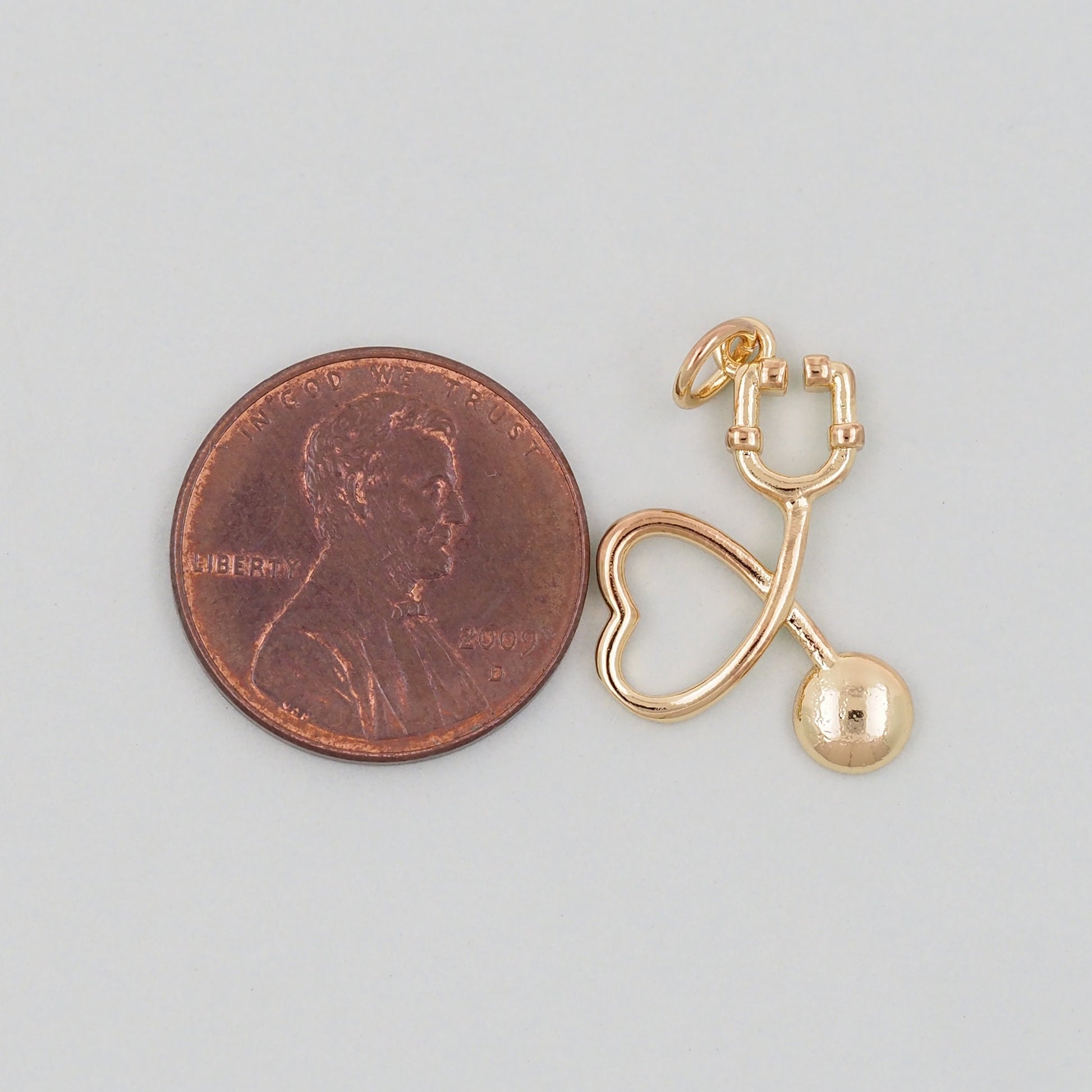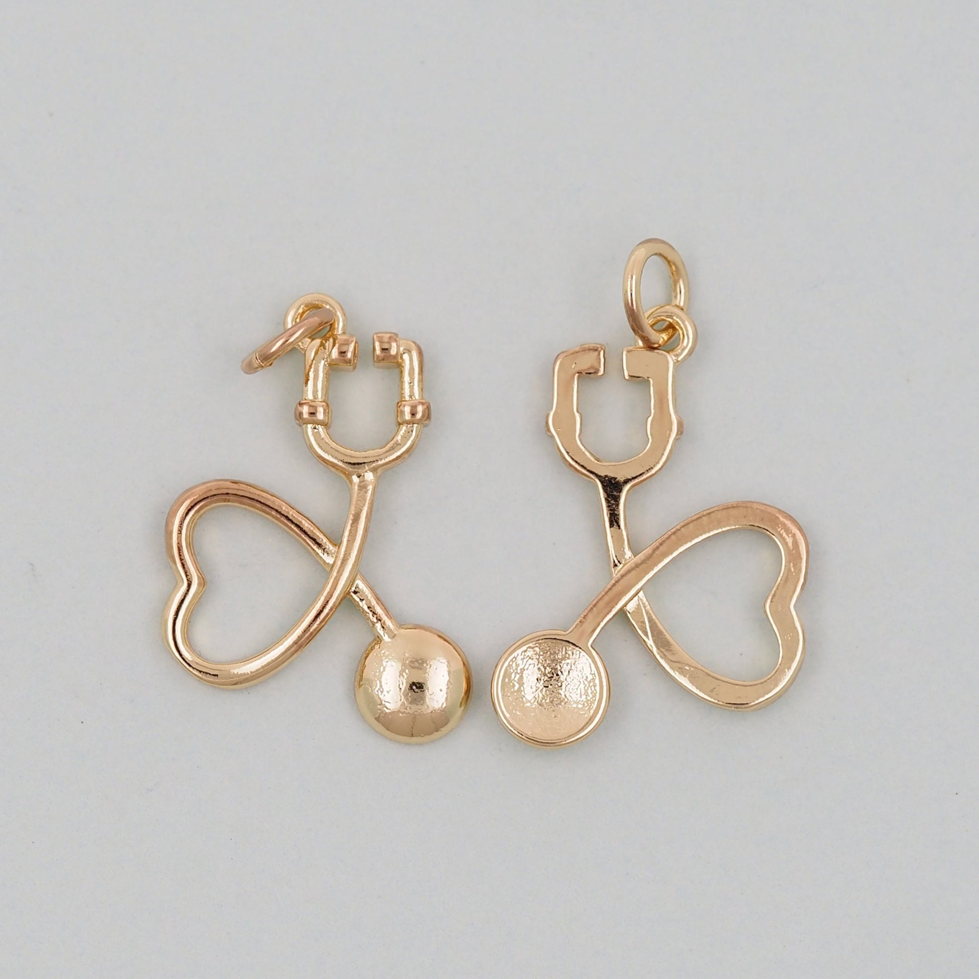 Gold stethoscope Charms,18K Gold Filled stethoscope Pendant,stethoscope Charm Bracelet Necklace for DIY Jewelry Making Supply