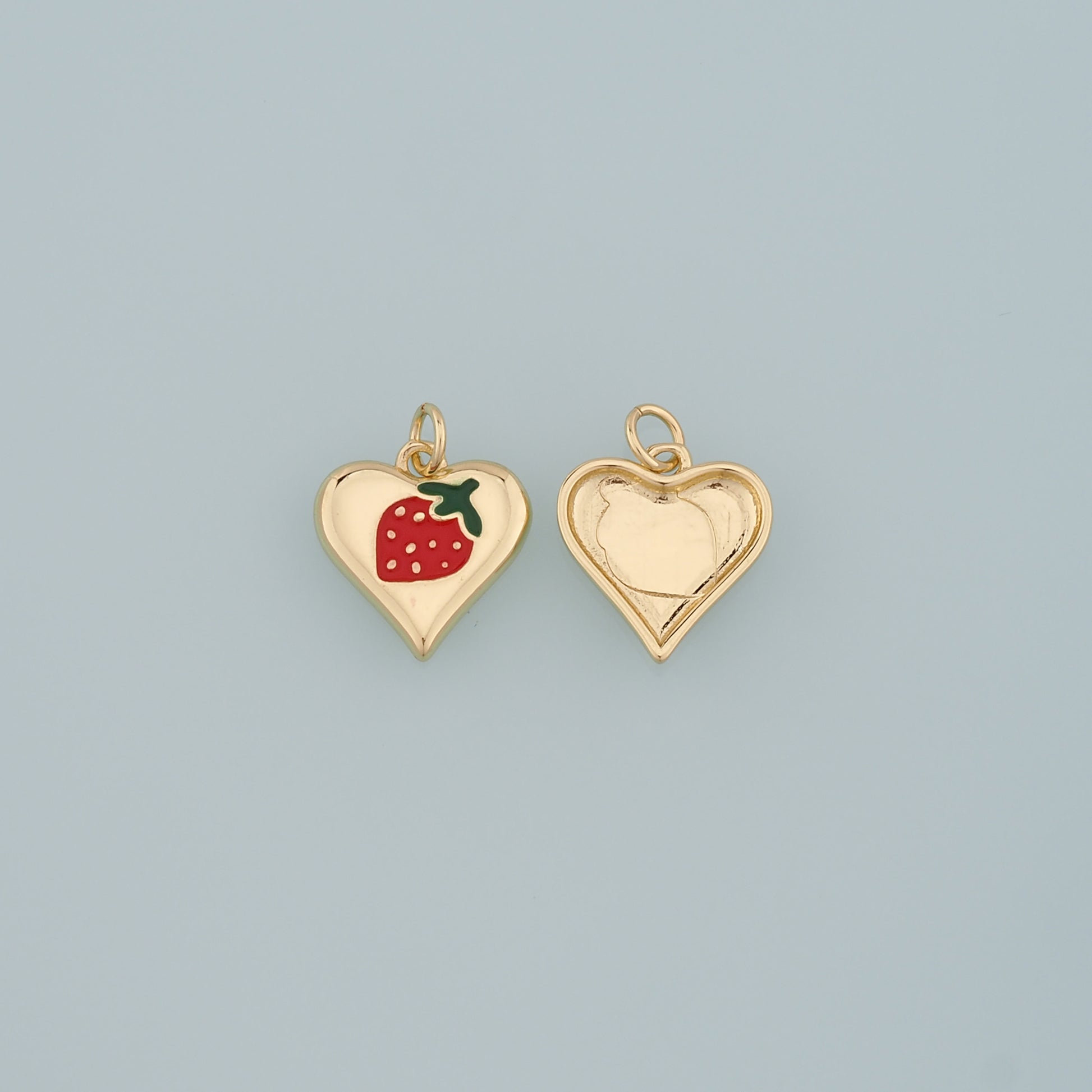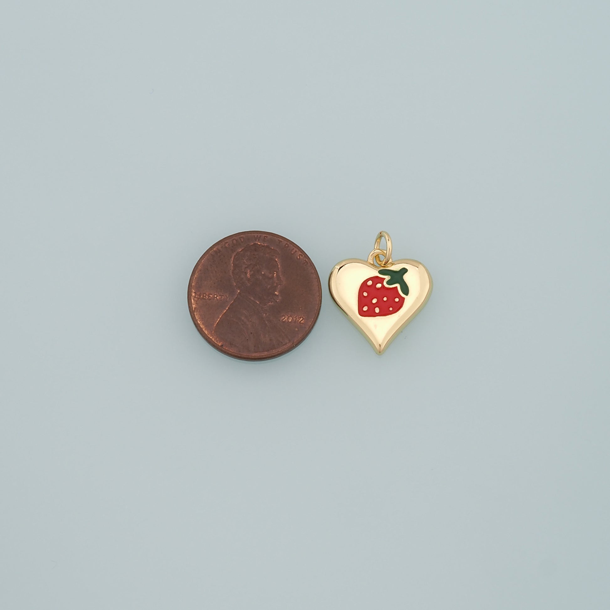 Gold Strawberry Charms,18K Gold Filled Heart Strawberry Pendant,Enamel Fruit Charm Bracelet Necklace for DIY Jewelry Making Supply