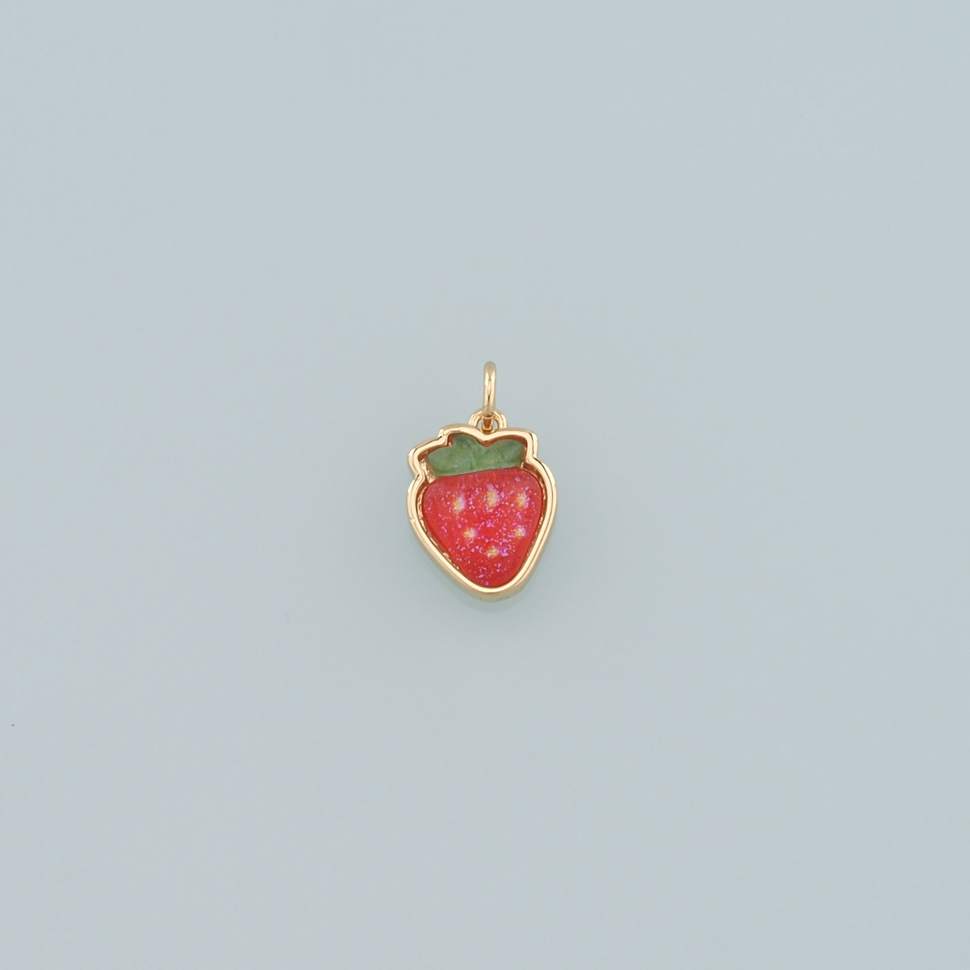 Gold Strawberry Charms,18K Gold Filled Strawberry Pendant,Enamel Fruit Charm Bracelet Necklace for DIY Jewelry Making Supply