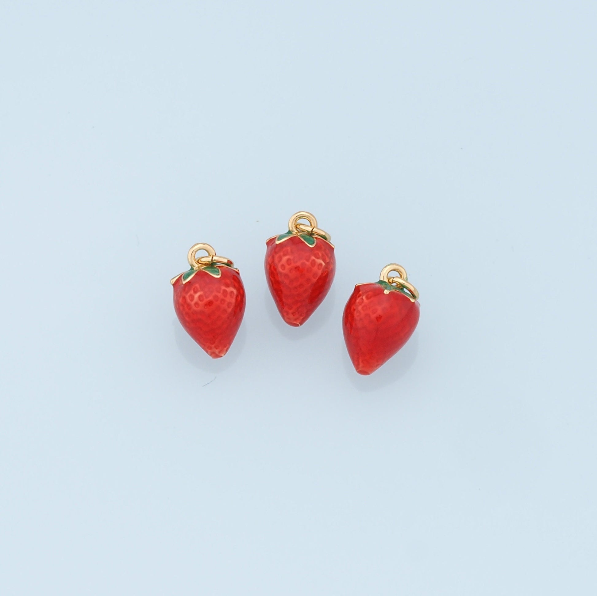 Gold strawberry Charms,18K Gold Filled strawberry Pendant,Fruit Charm Bracelet Necklace for DIY Jewelry Making Supply