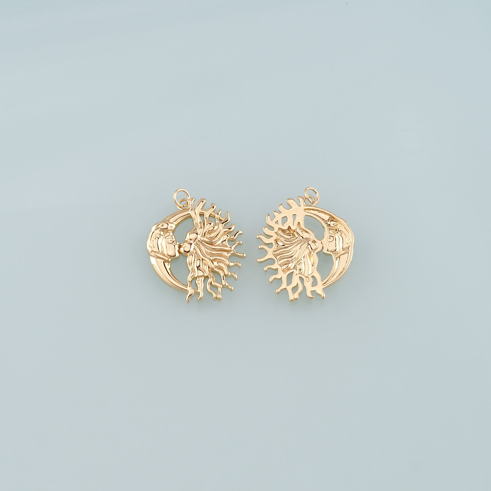 Gold Sun Charms,18K Gold Filled Moon Sun Pendant,Celestial Charm Bracelet Necklace for DIY Jewelry Making Supply