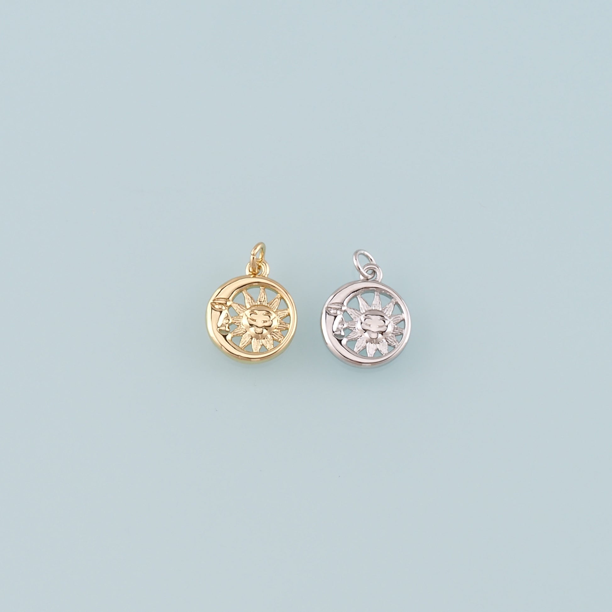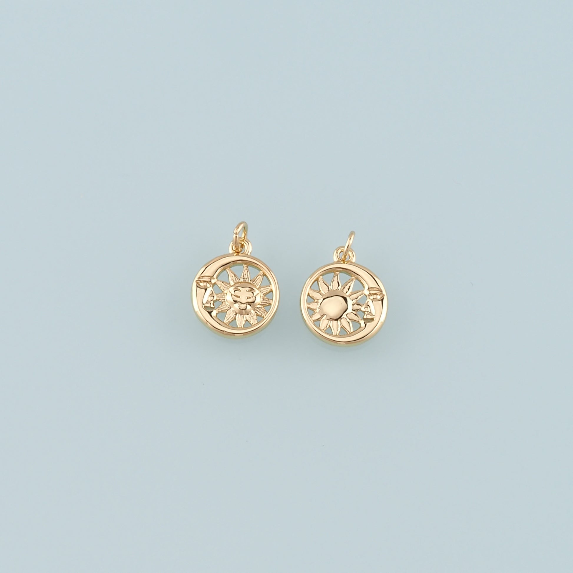 Gold Sun Charms,18K Gold Filled Moon Sun Pendant,Celestial Charm Bracelet Necklace for DIY Jewelry Making Supply