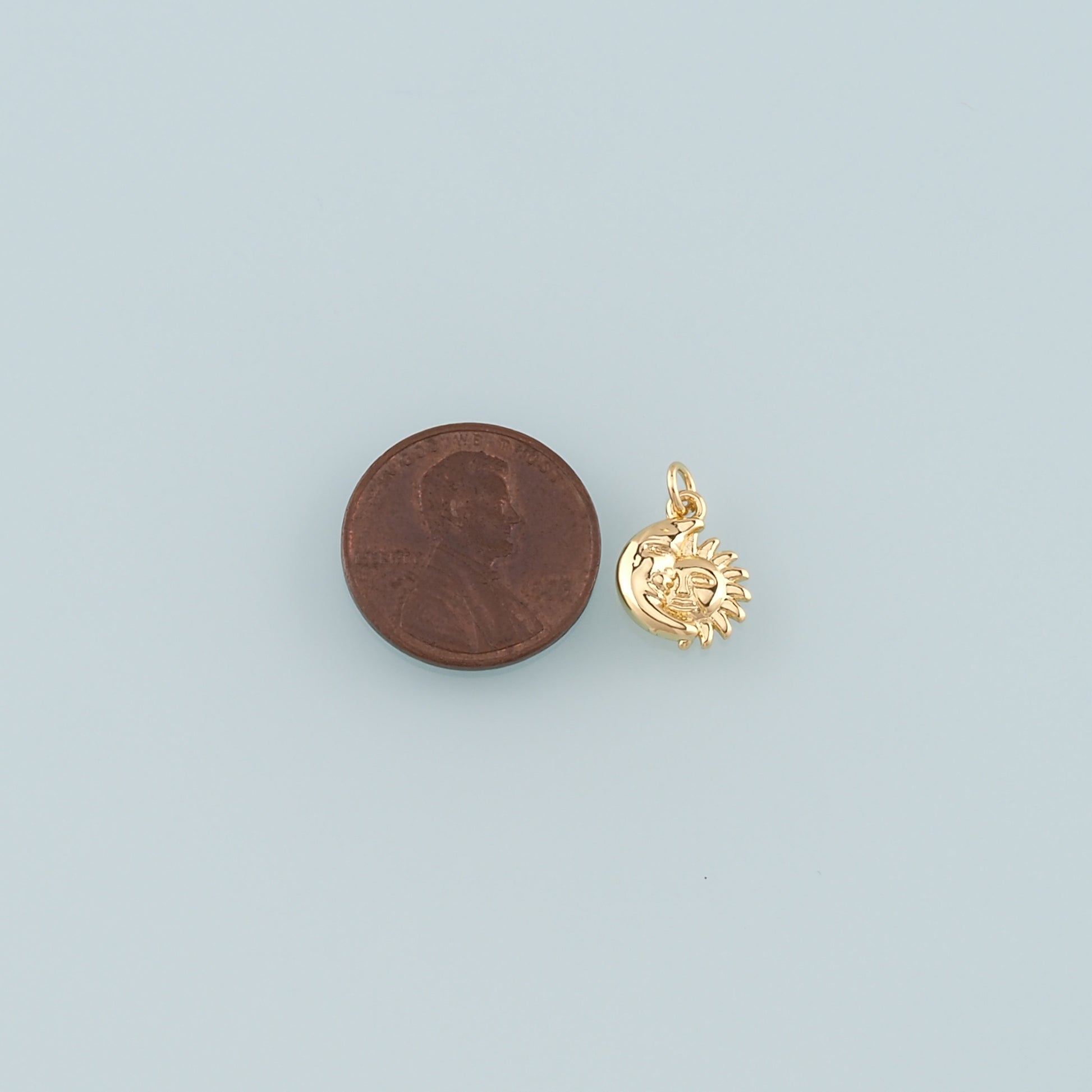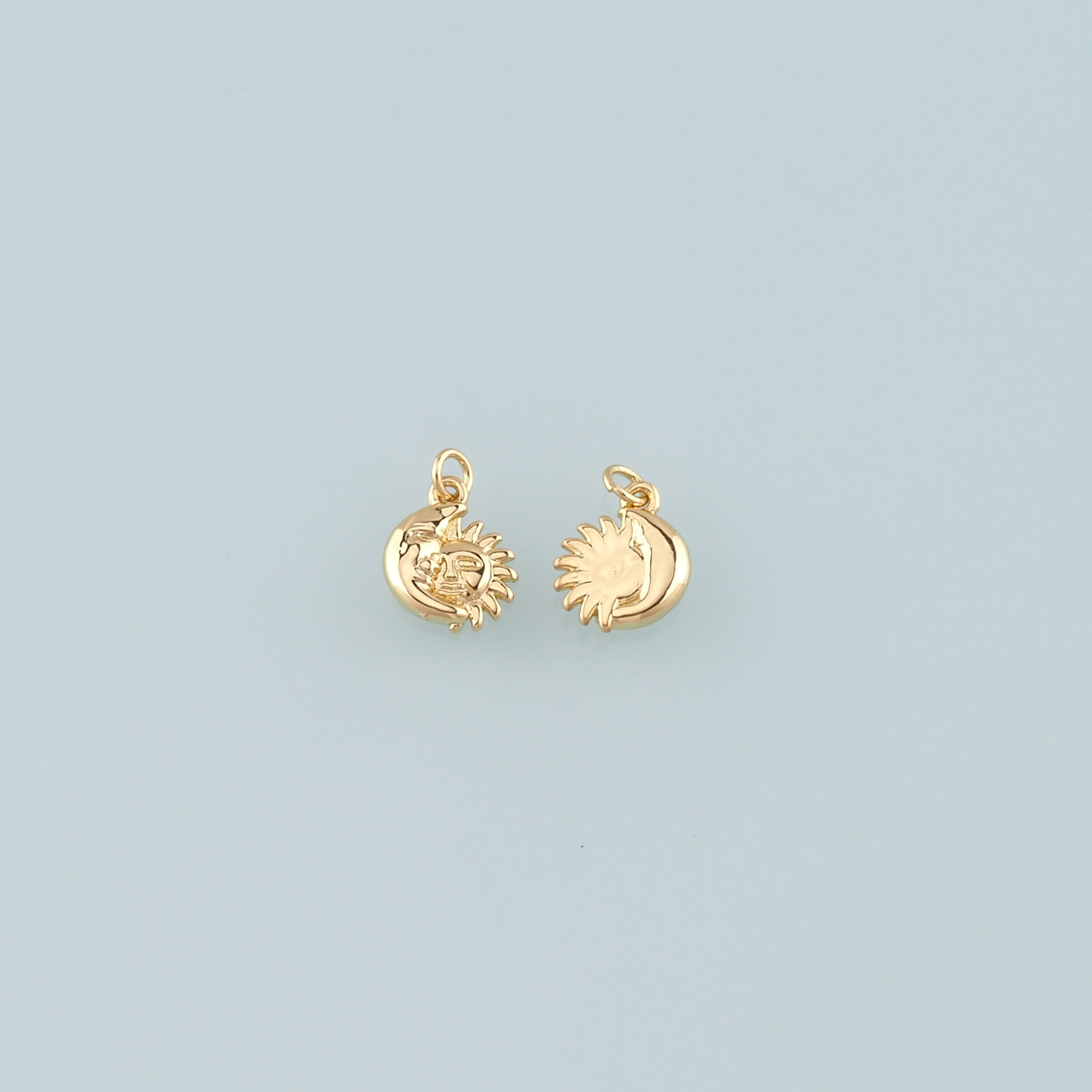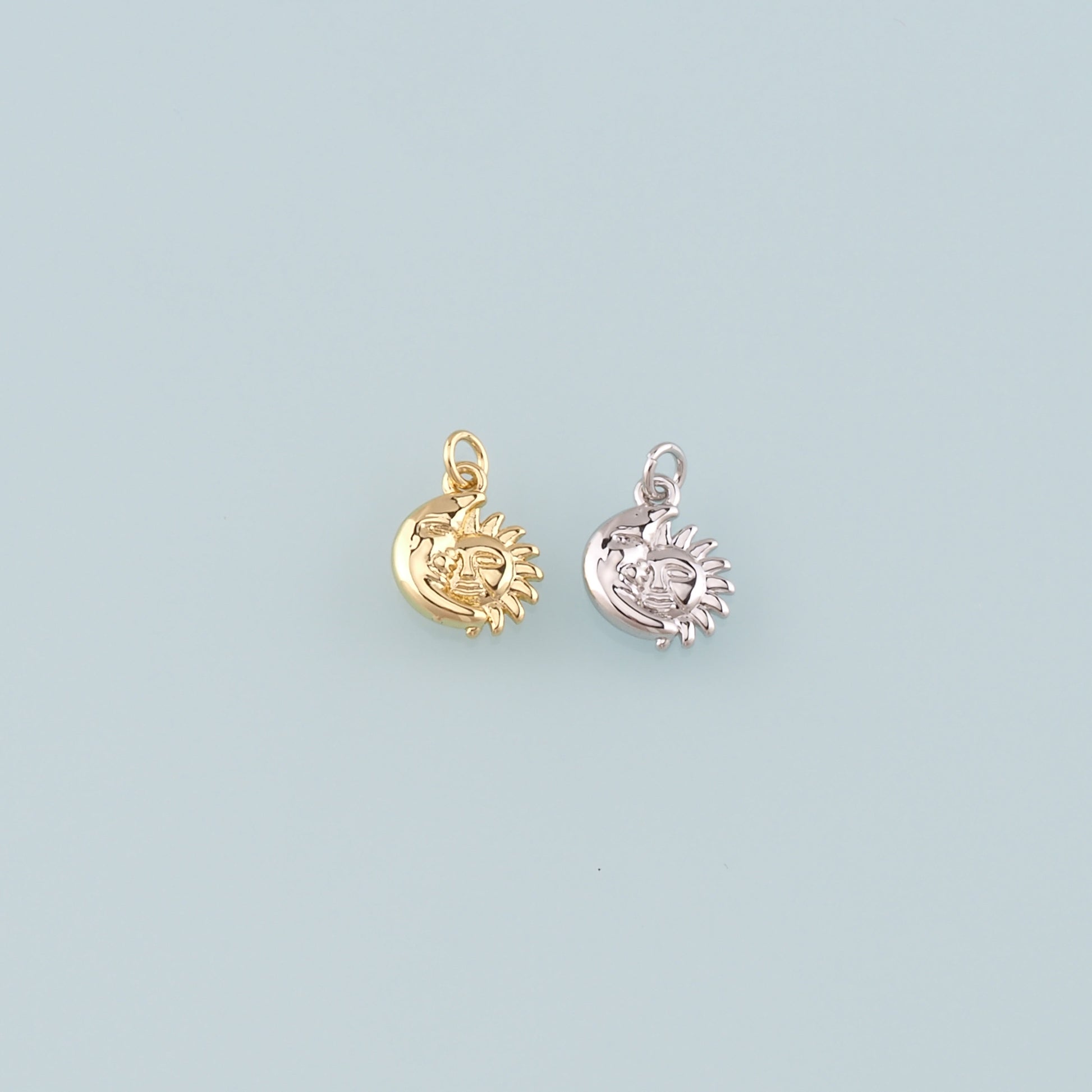 Gold Sun Charms,18K Gold Filled Moon Sun Pendant,Celestial Charm Bracelet Necklace for DIY Jewelry Making Supply