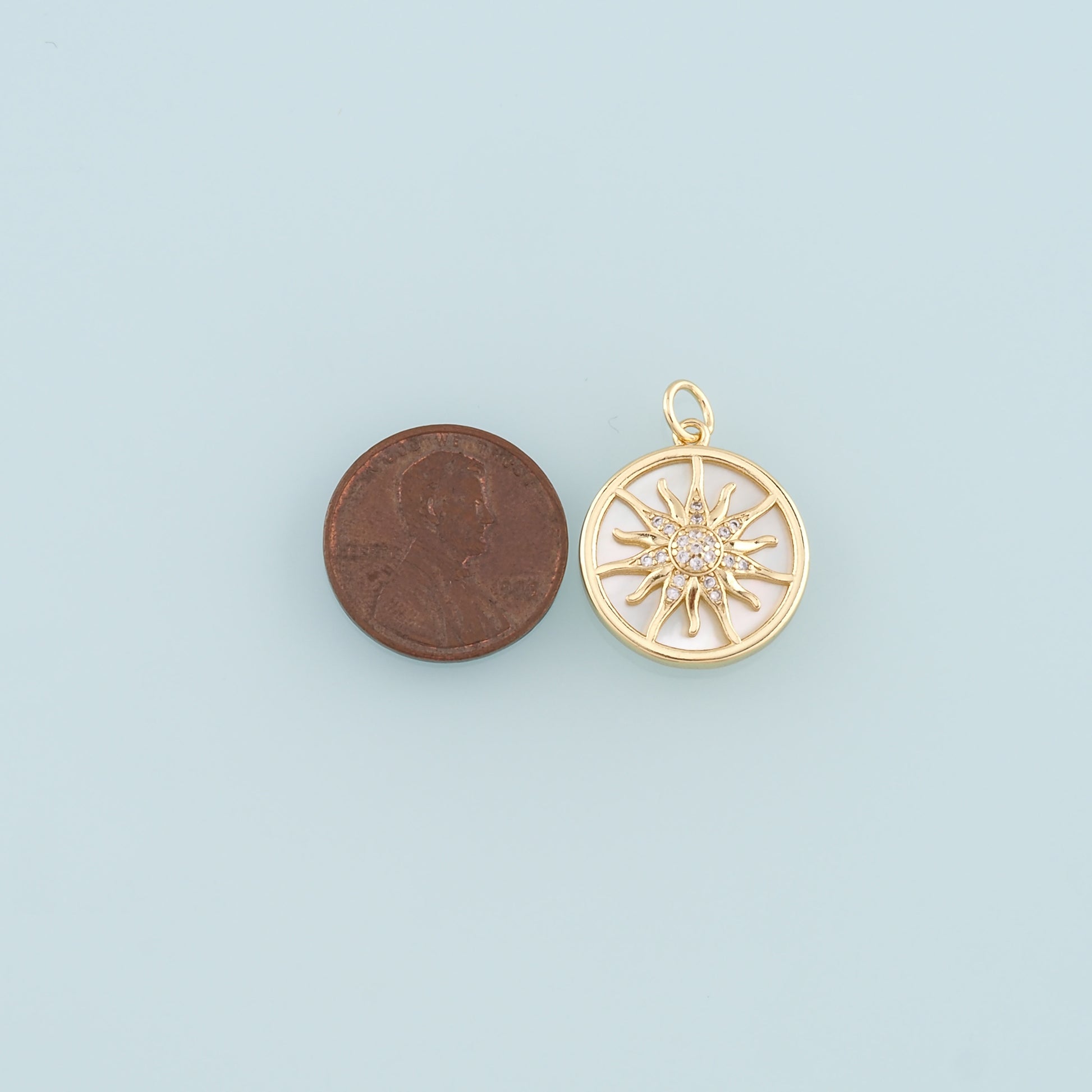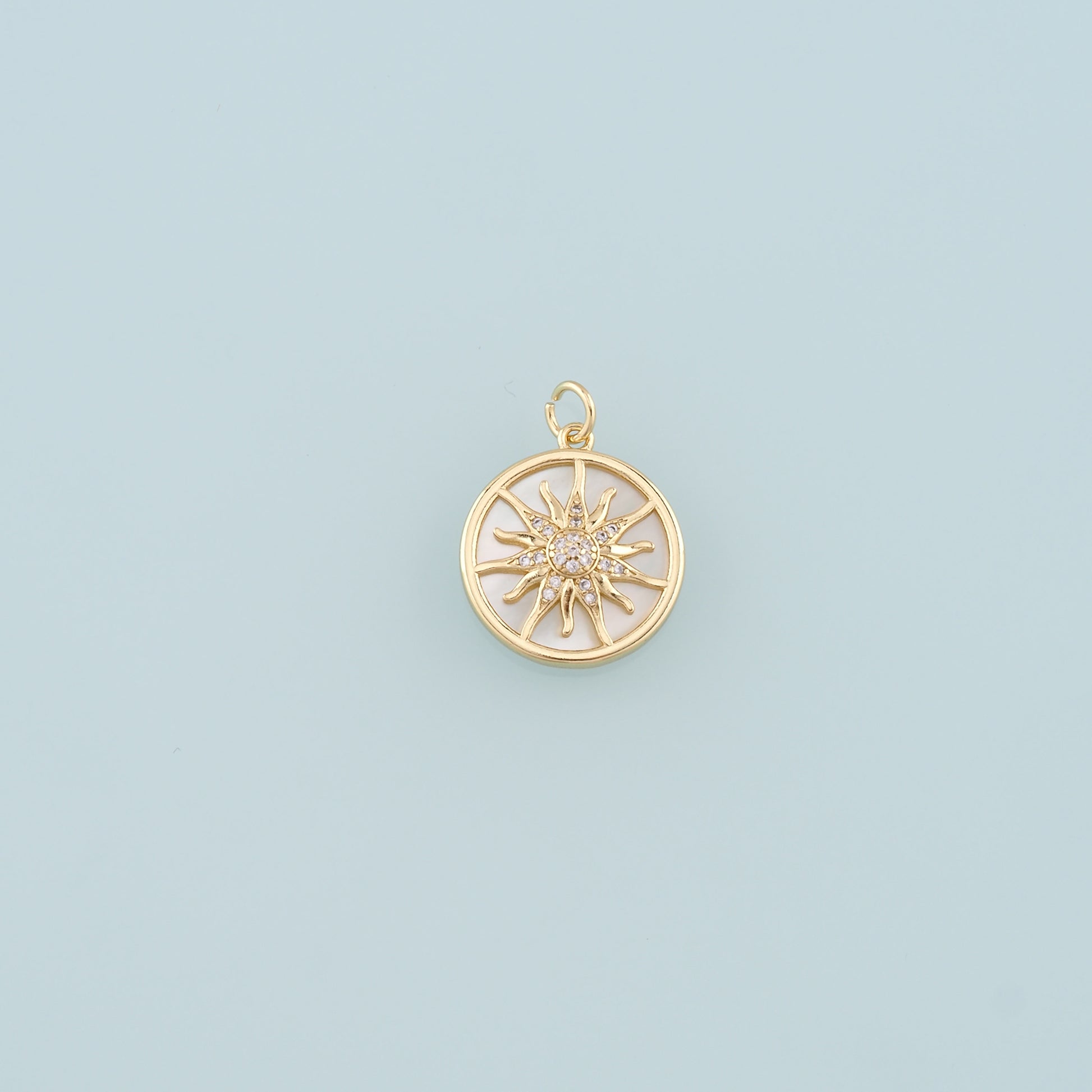 Gold Sun Charms,18K Gold Filled Shell Sun Pendant,CZ Micro Pave Celestial Charm Bracelet Necklace for DIY Jewelry Making Supply