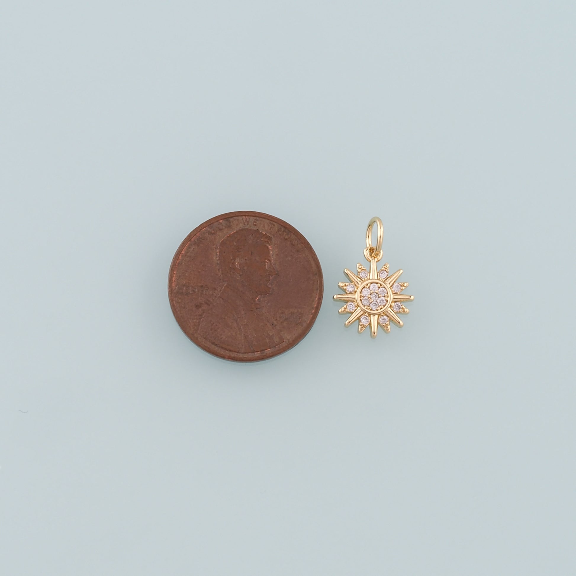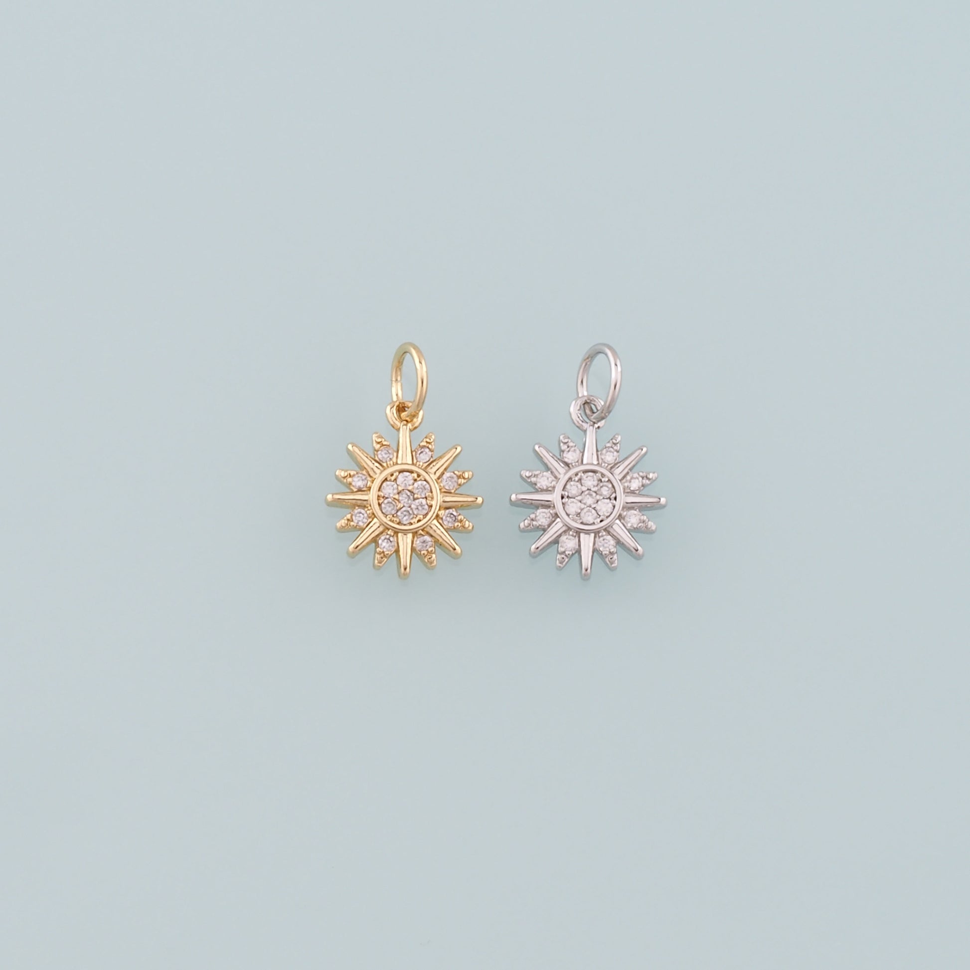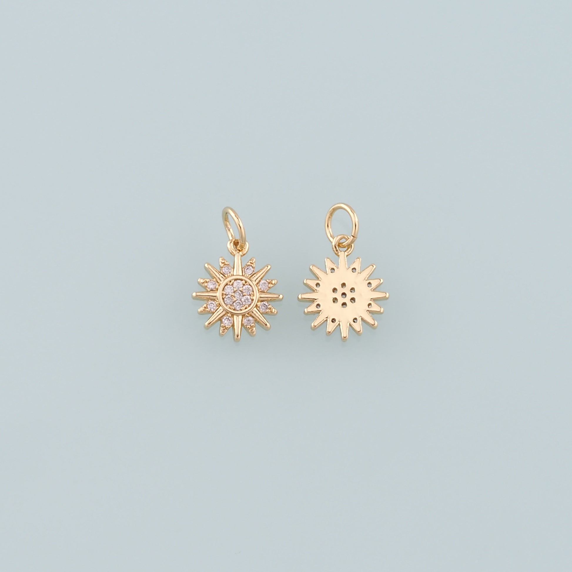 Gold Sun Charms,18K Gold Filled Sun Pendant,CZ Micro Pave Celestial Charm Bracelet Necklace for DIY Jewelry Making Supply