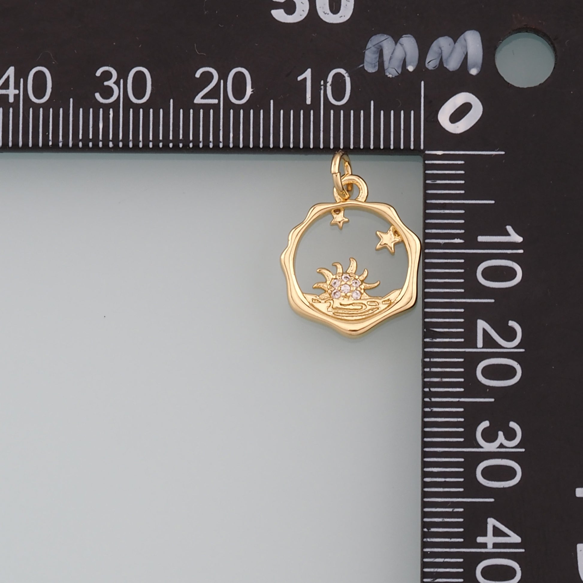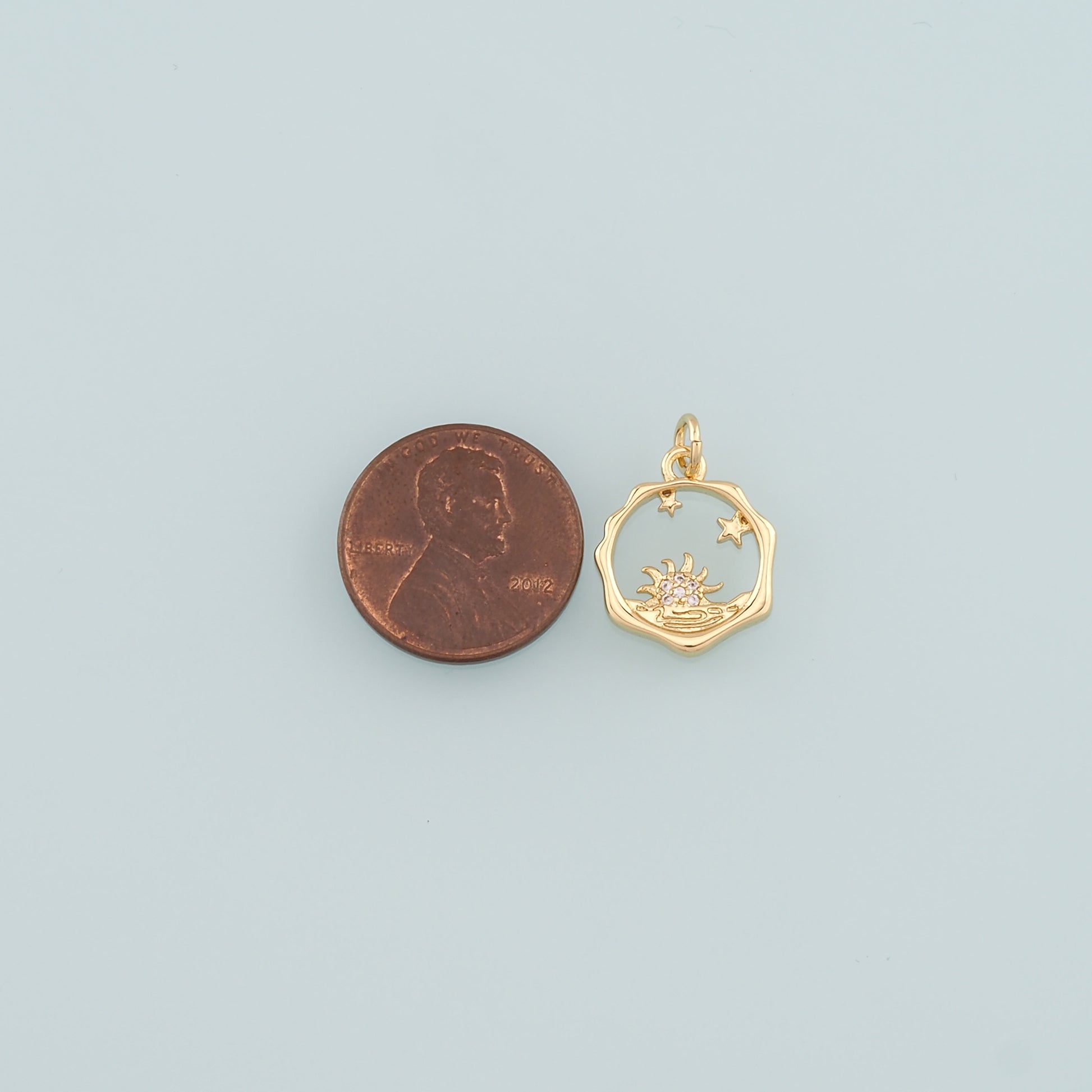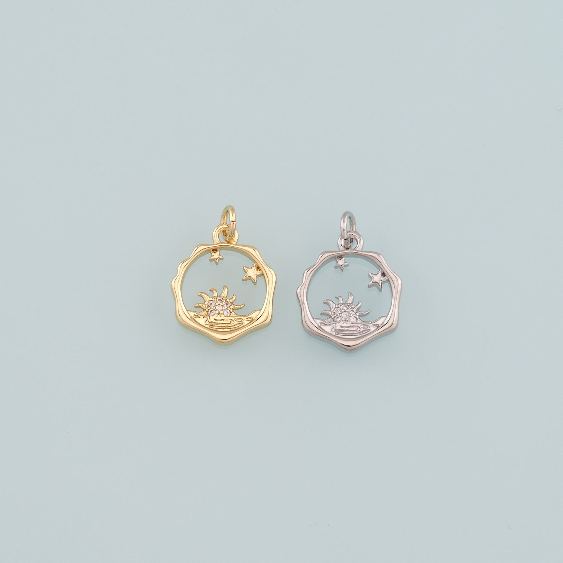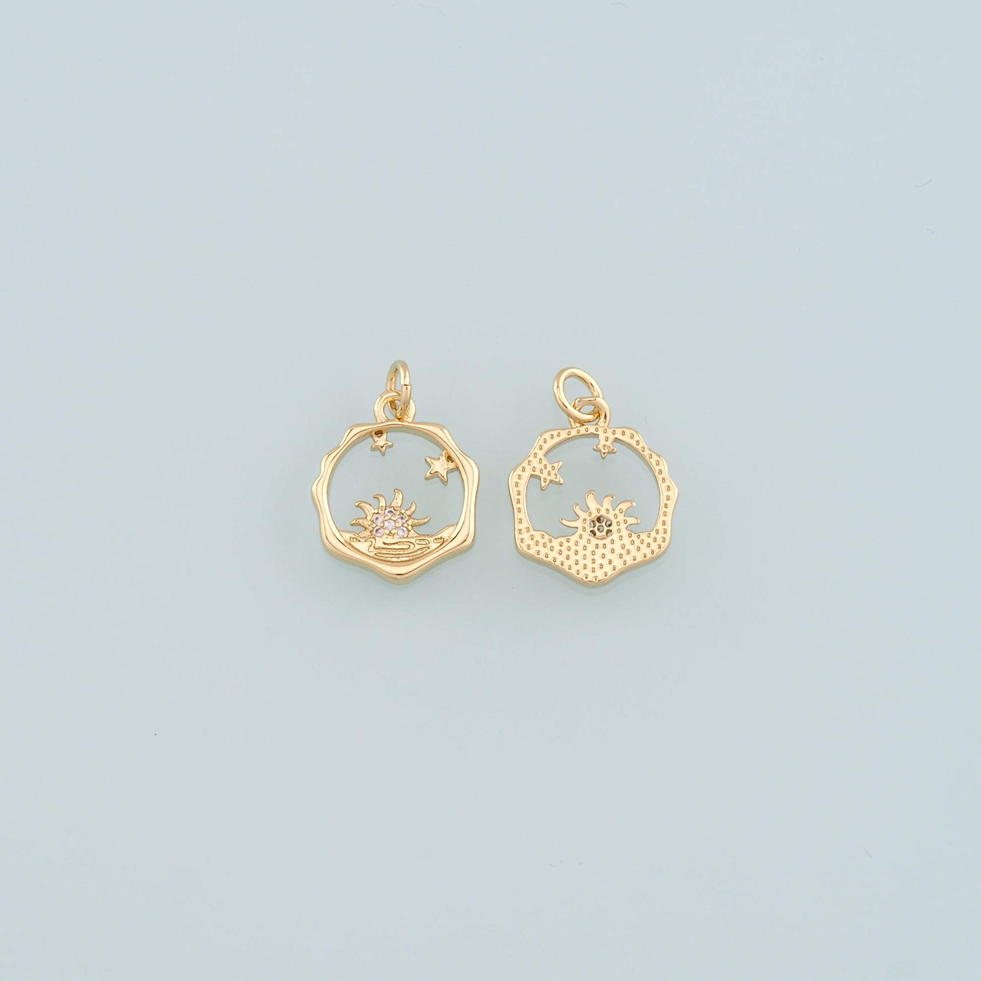 Gold Sun Charms,18K Gold Filled Sun Pendant,CZ Micro Pave Celestial Charm Bracelet Necklace for DIY Jewelry Making Supply