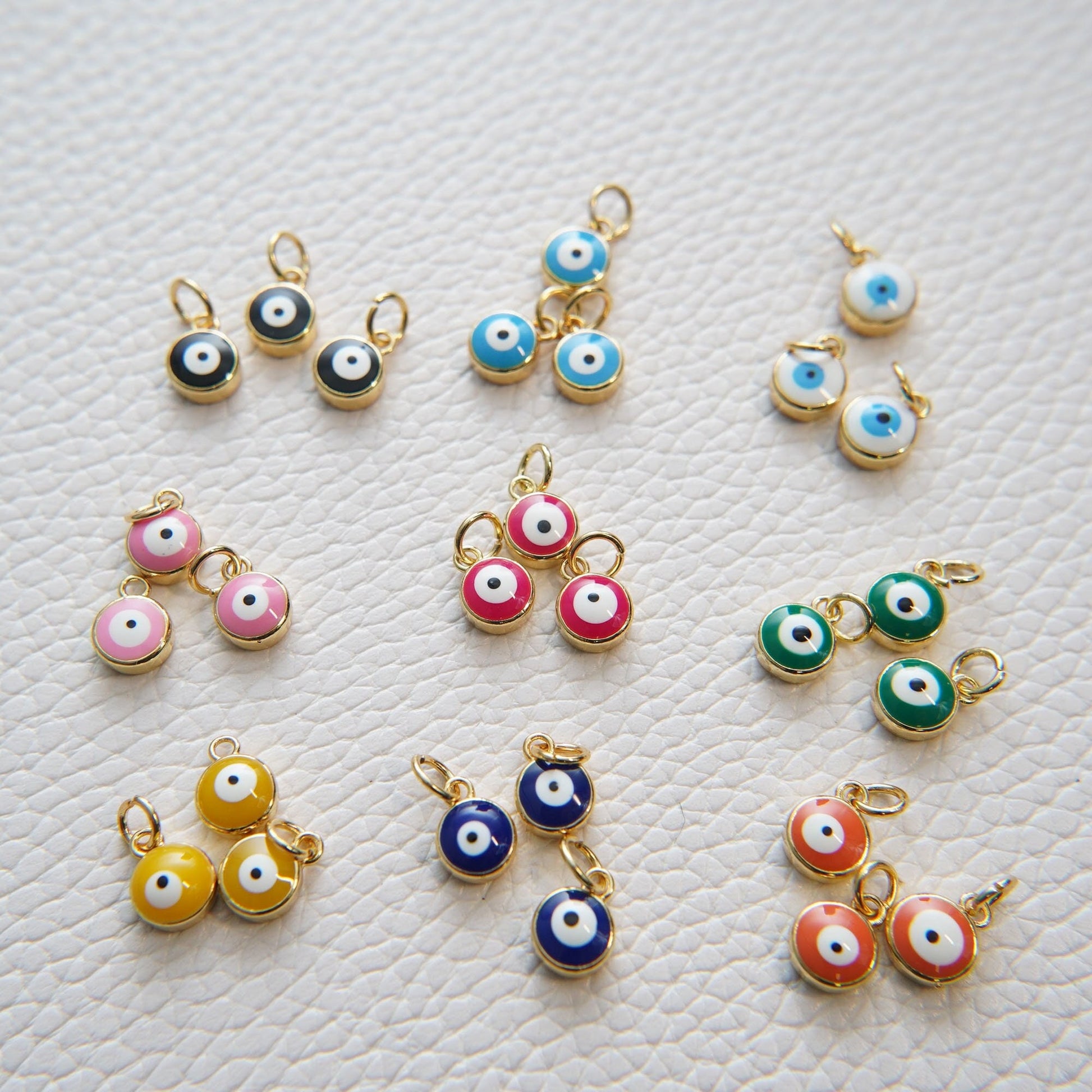 Gold Tiny Blue Evil Eye Charms,18K Gold Filled Evil Eye Pendant,Evil Eye Protect Charm Bracelet Necklace for DIY Jewelry Making Supply 7mm