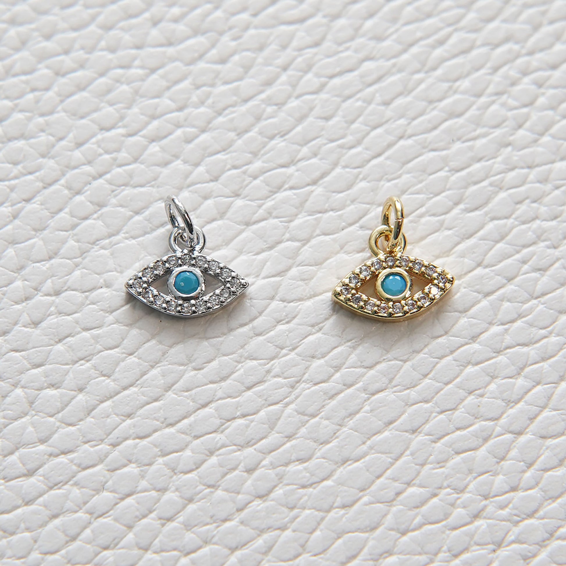 Gold Tiny Evil Eye Charms,18K Gold Filled Evil Eye Pendant,Silver Evil eye Charm Bracelet Necklace for DIY Jewelry Making Supply