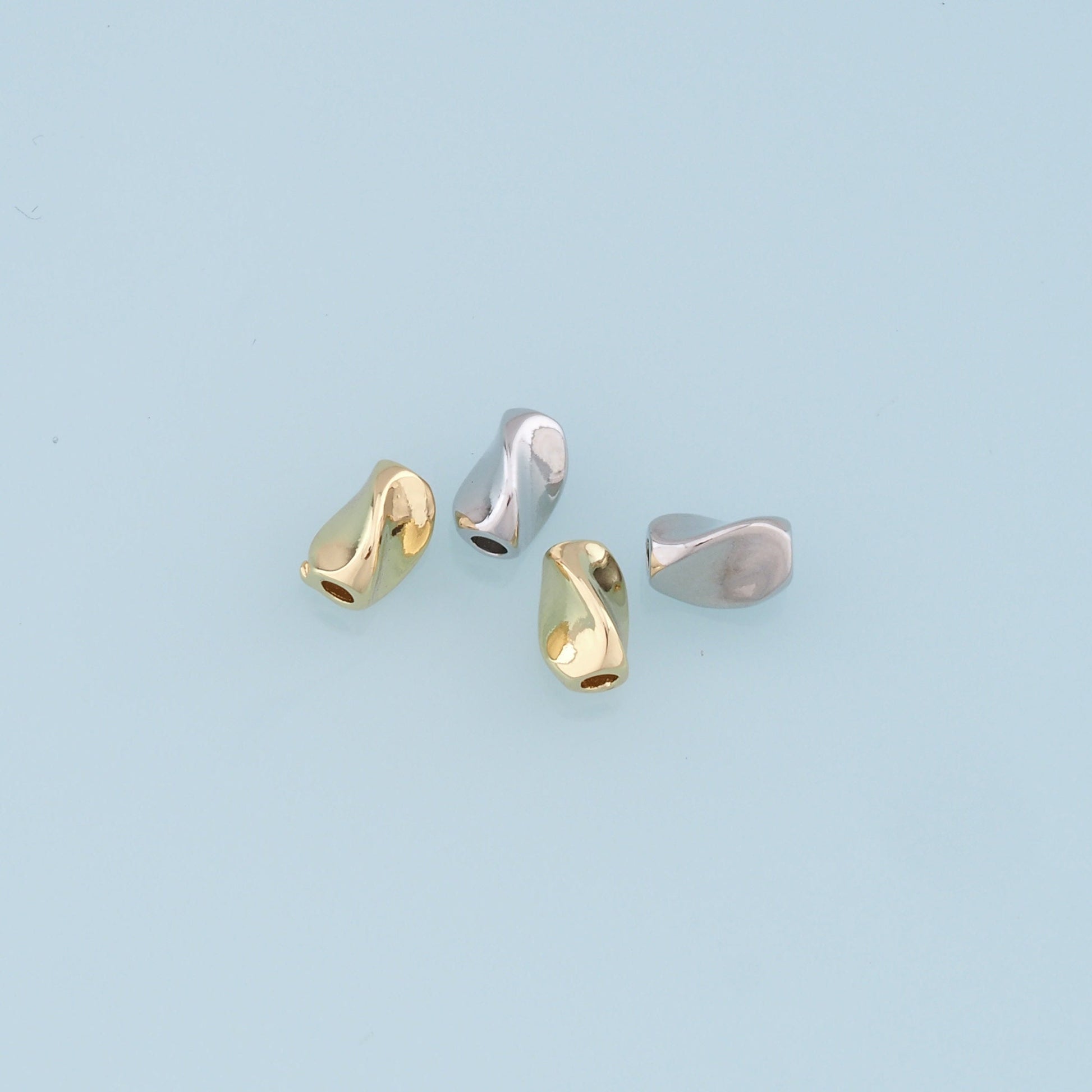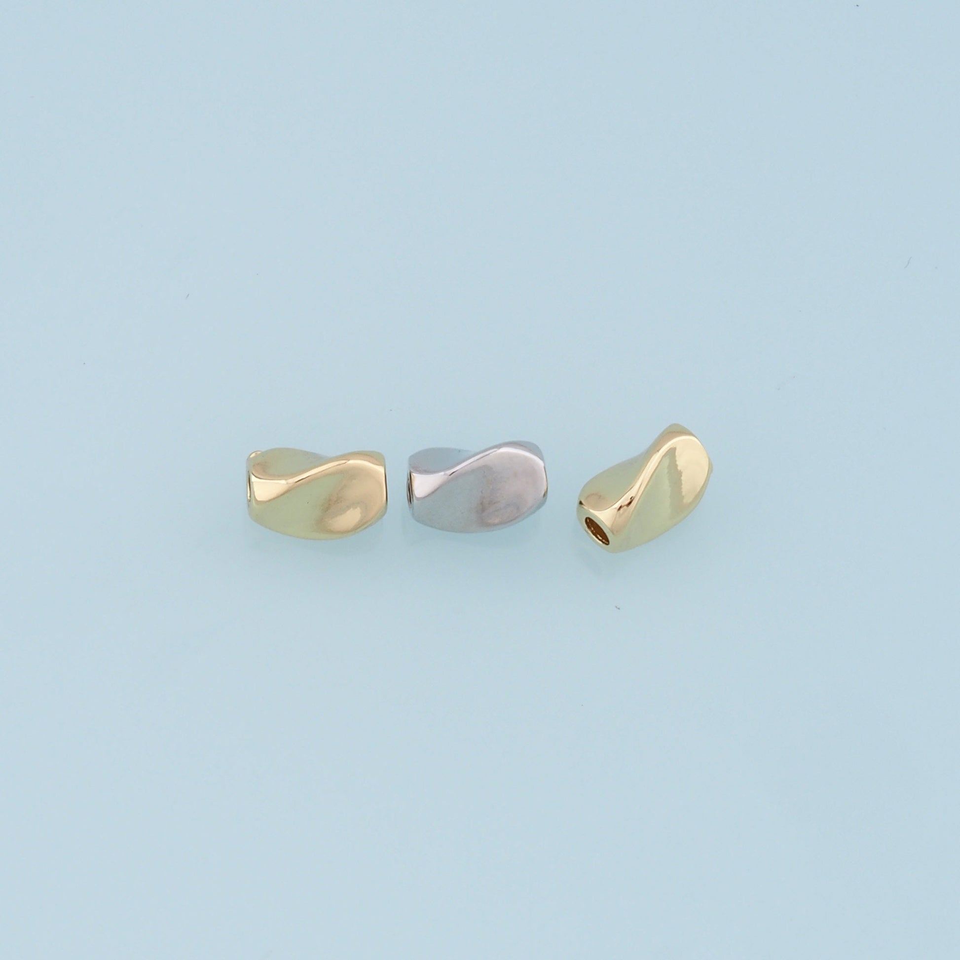 Gold twist wavy Beads Charms,18K Gold Filled Twist Bracelet Necklace for DIY Jewelry Making Supply hole 2mm