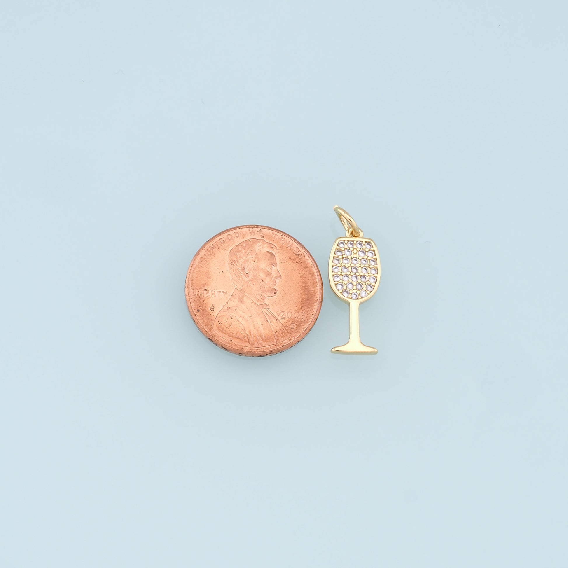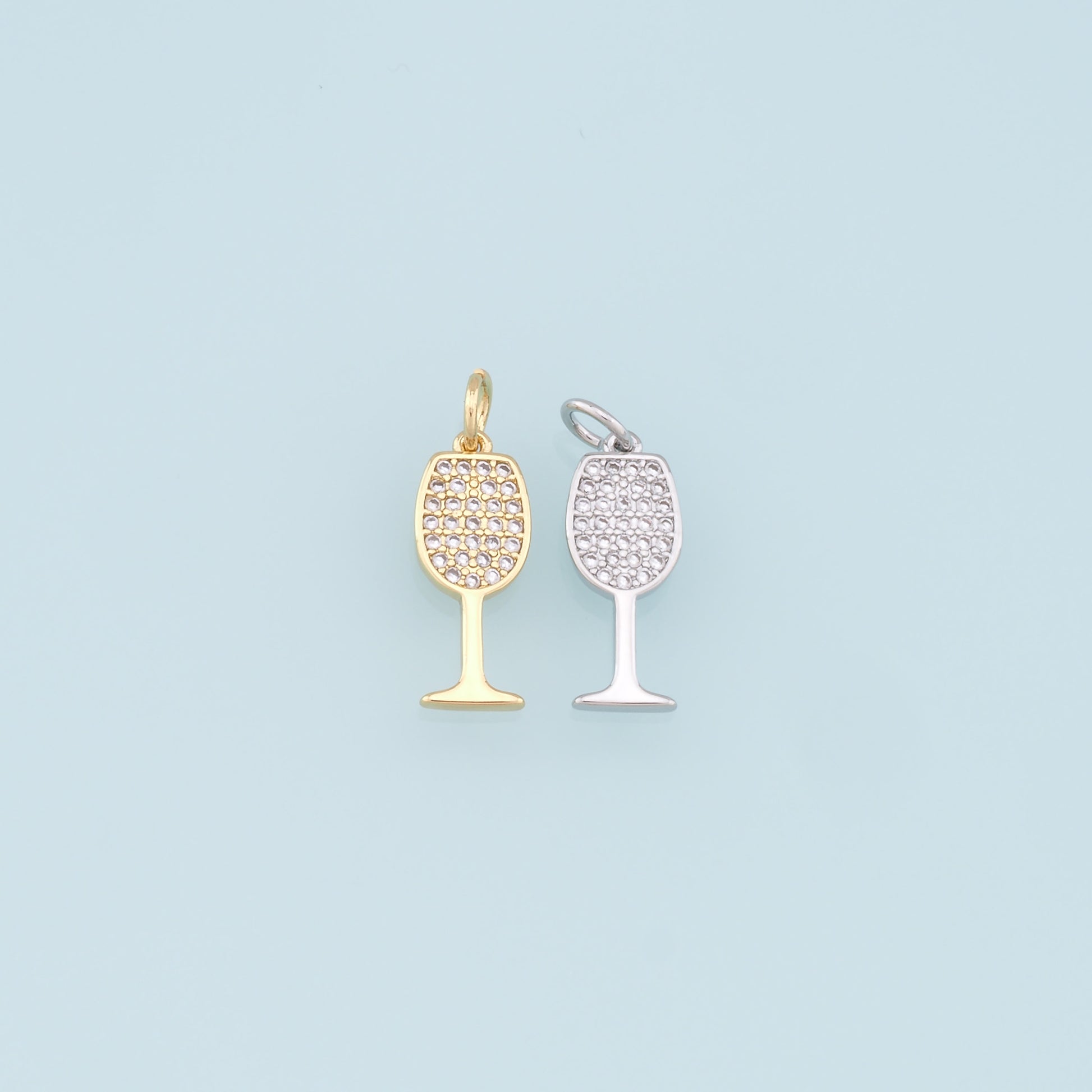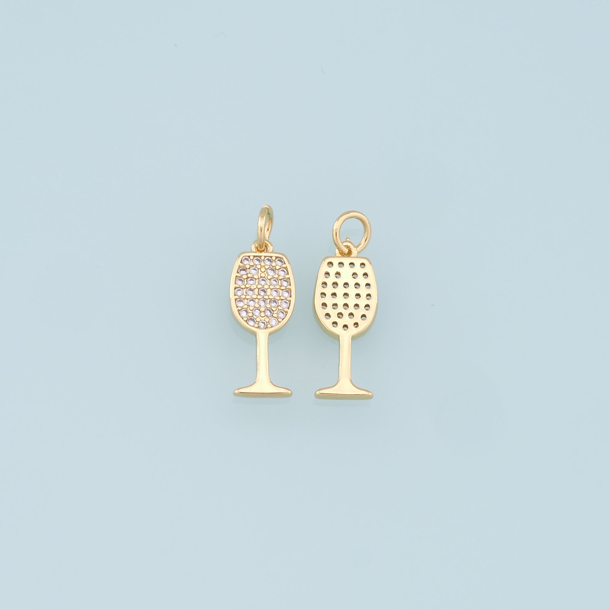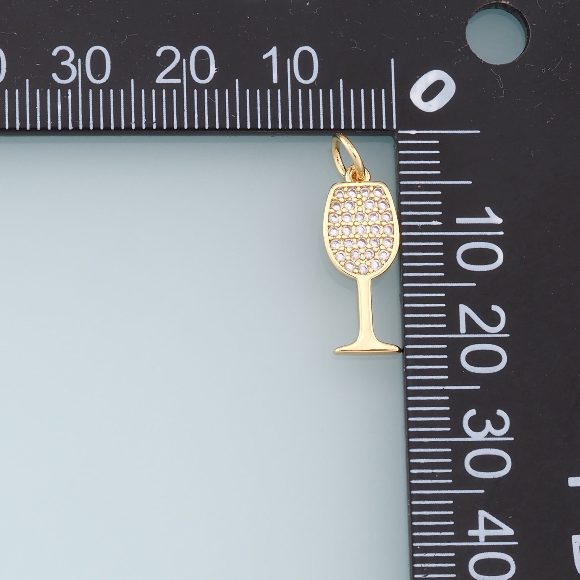 Gold Wine Glass Charms,18K Gold Filled CZ Wine Glass Pendant,Wine Glass Charm Bracelet Necklace for DIY Jewelry Making Supply