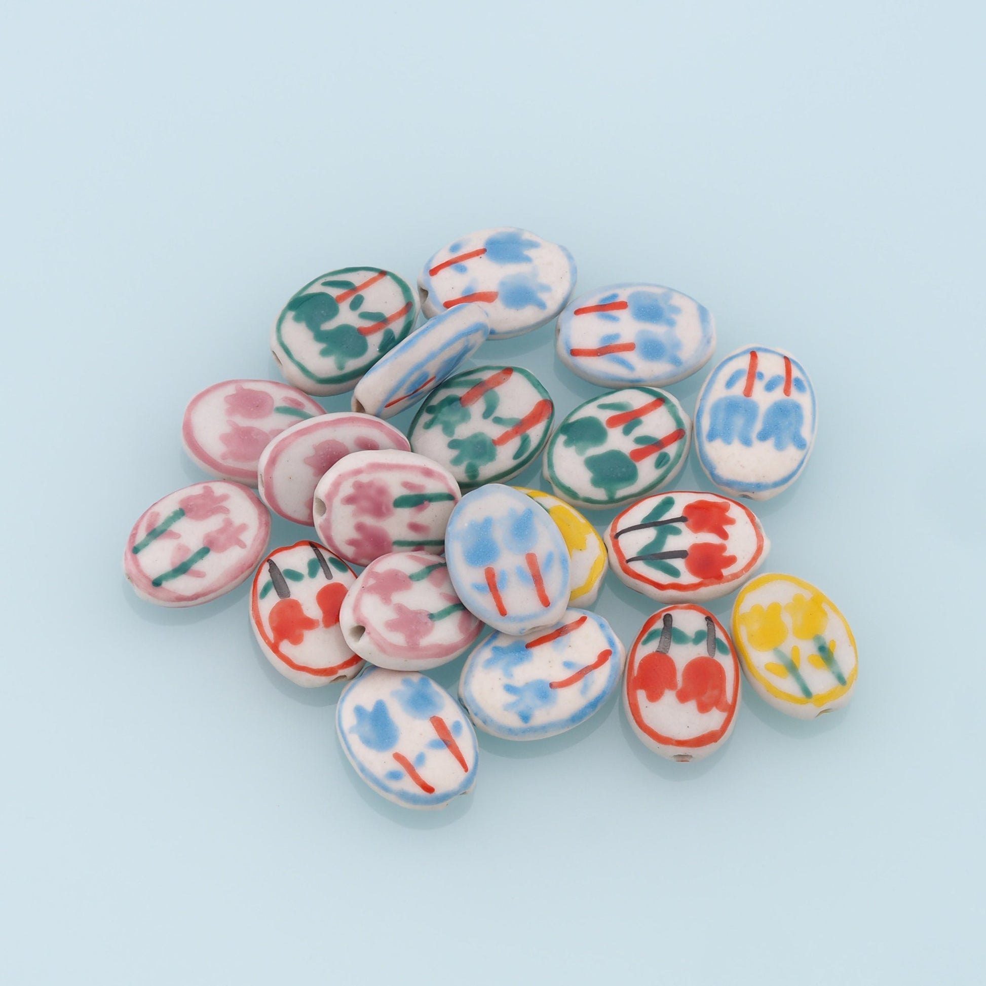 Mixed 20pcs Ceramic Flowers Beads,Flowers Bead,Colorful Flowers Beads for DIY Jewelry Making Supply,Random Colors